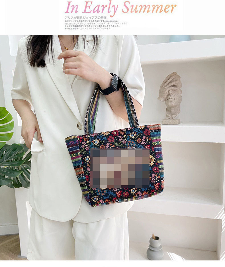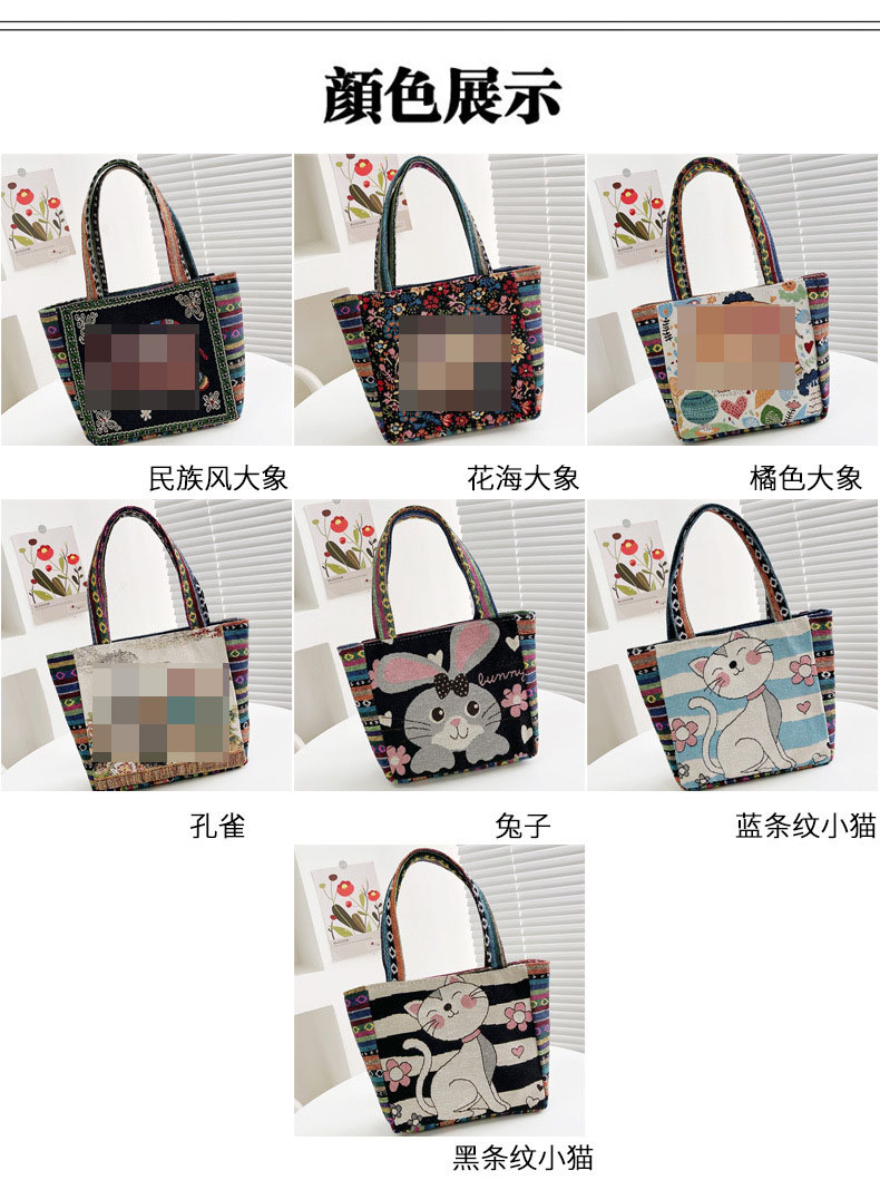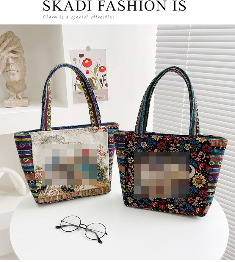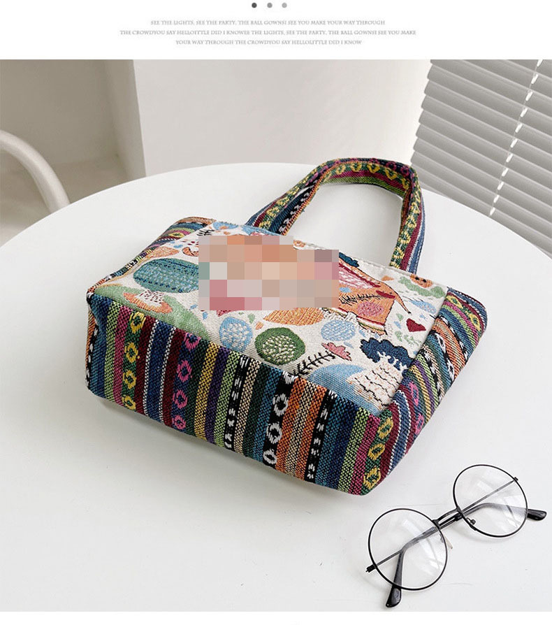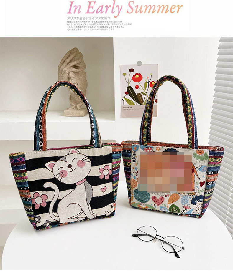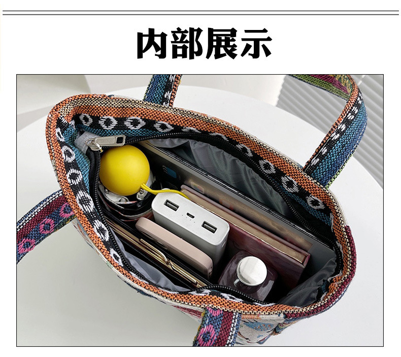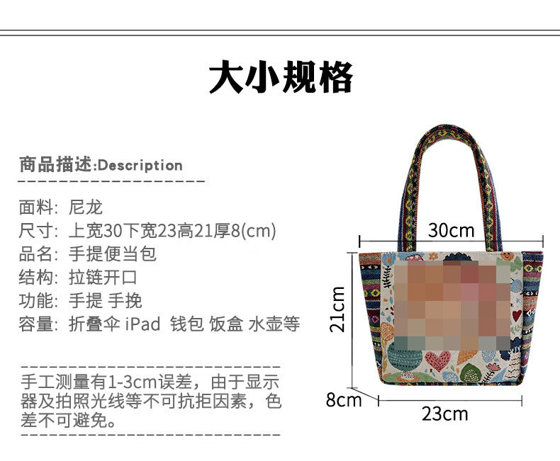 新款休閒外出上班通勤手提包拉鍊款學生便當包可攜式緬甸風帆布包包