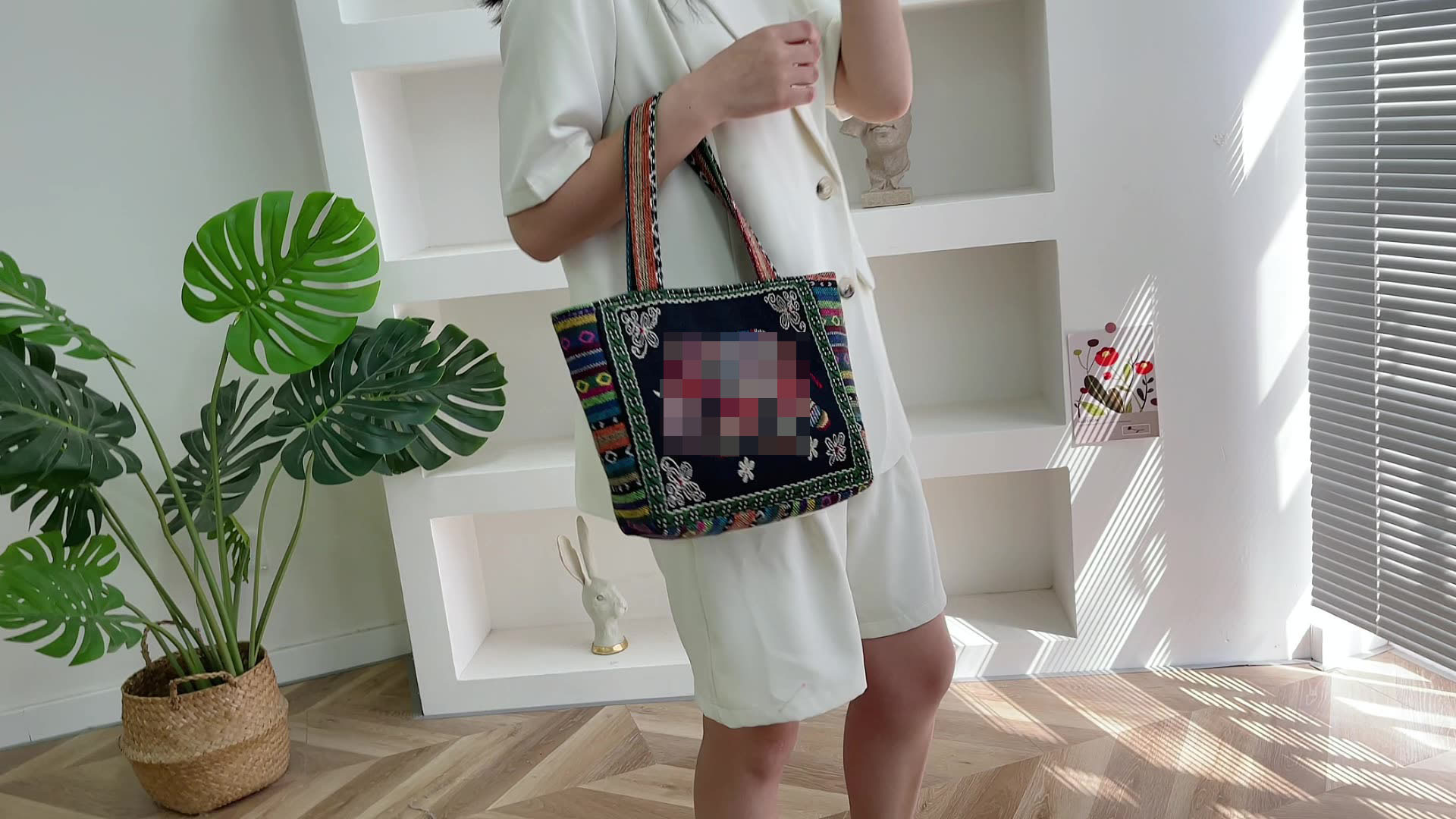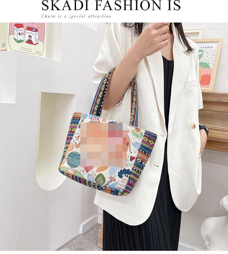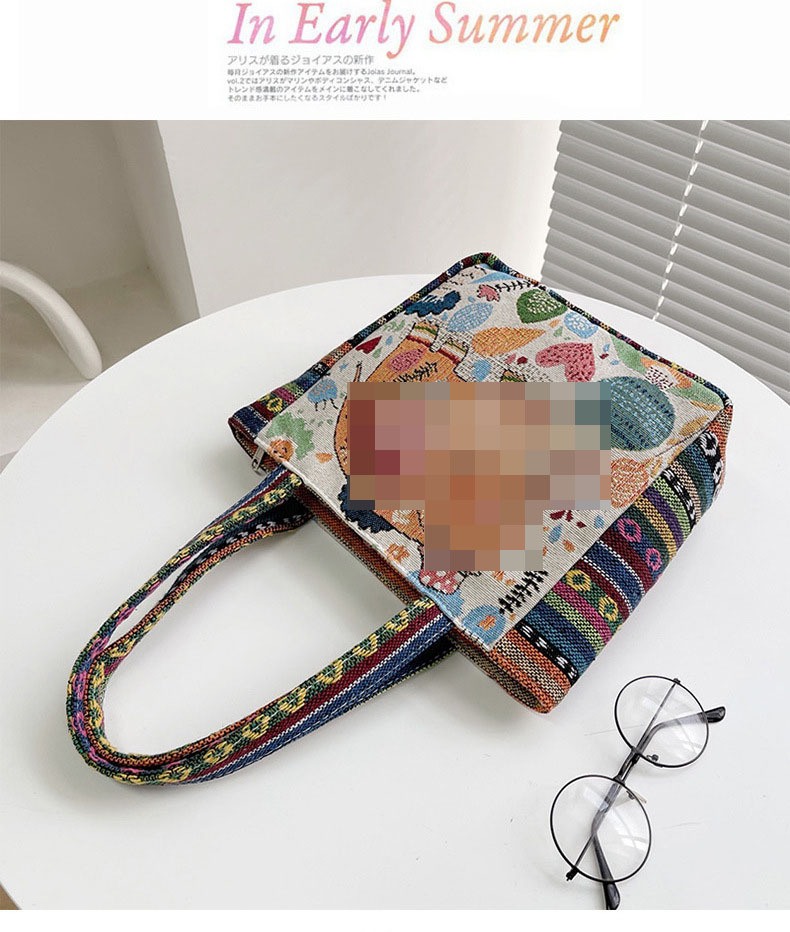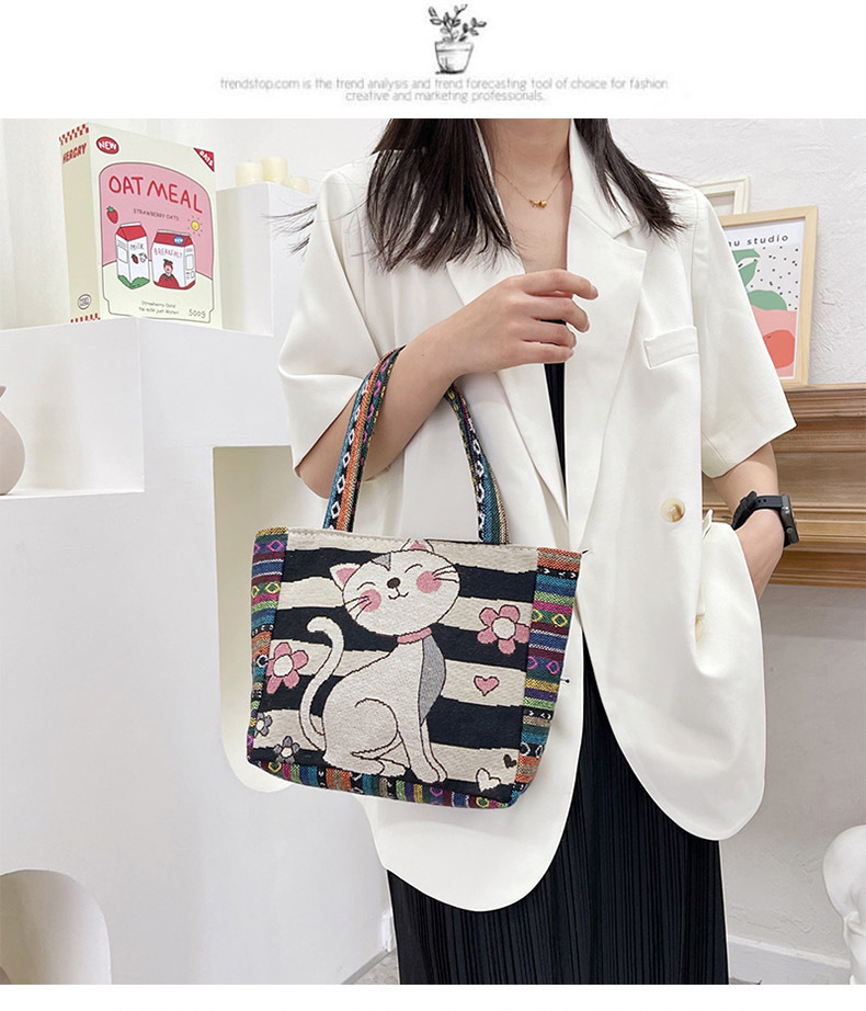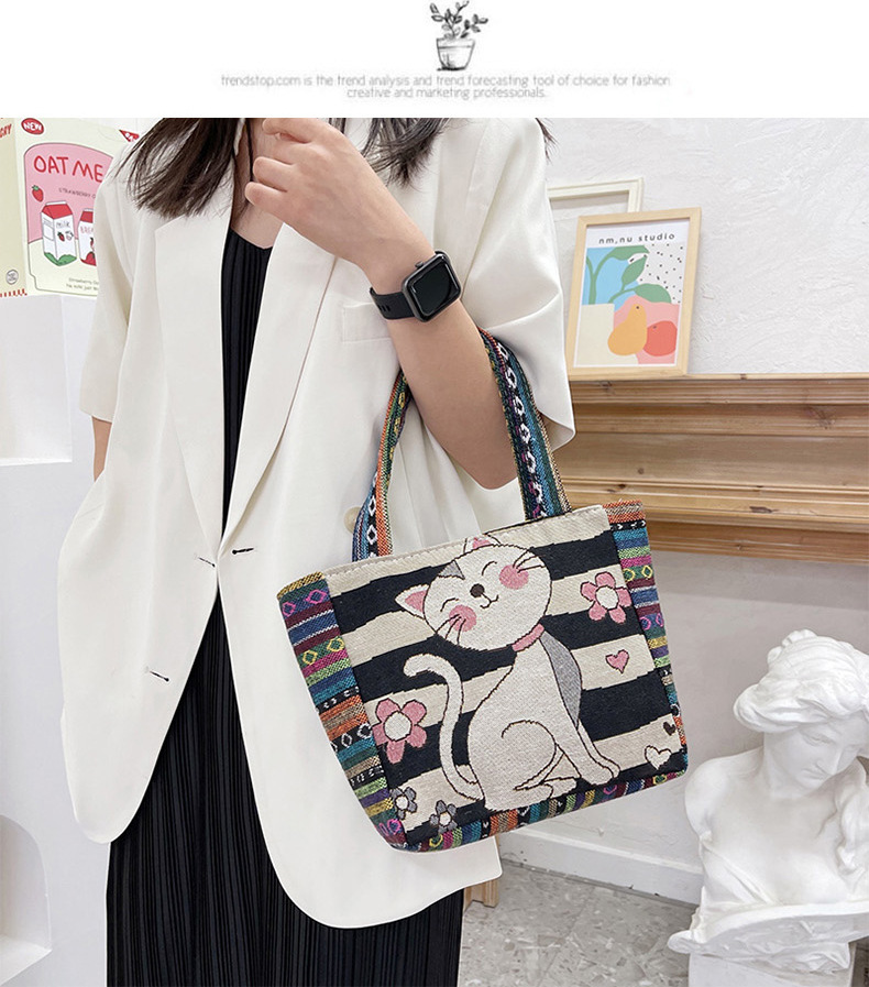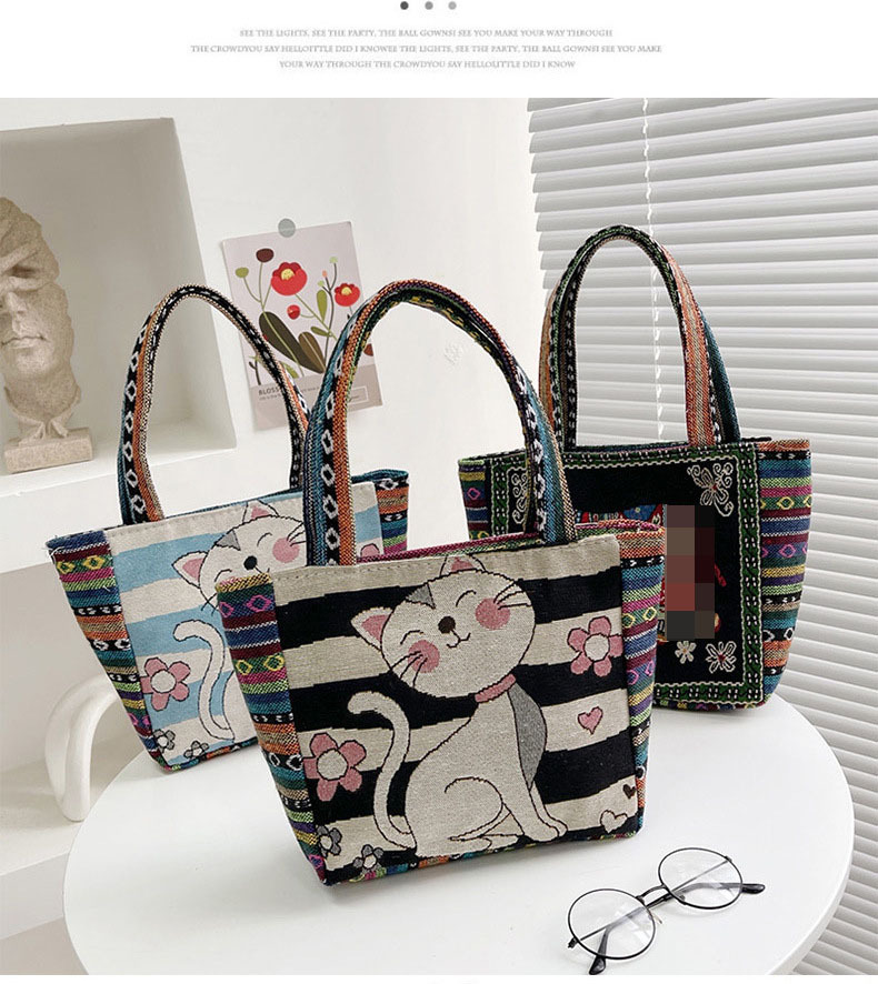 新款休閒外出上班通勤手提包拉鍊款學生便當包可攜式緬甸風帆布包包