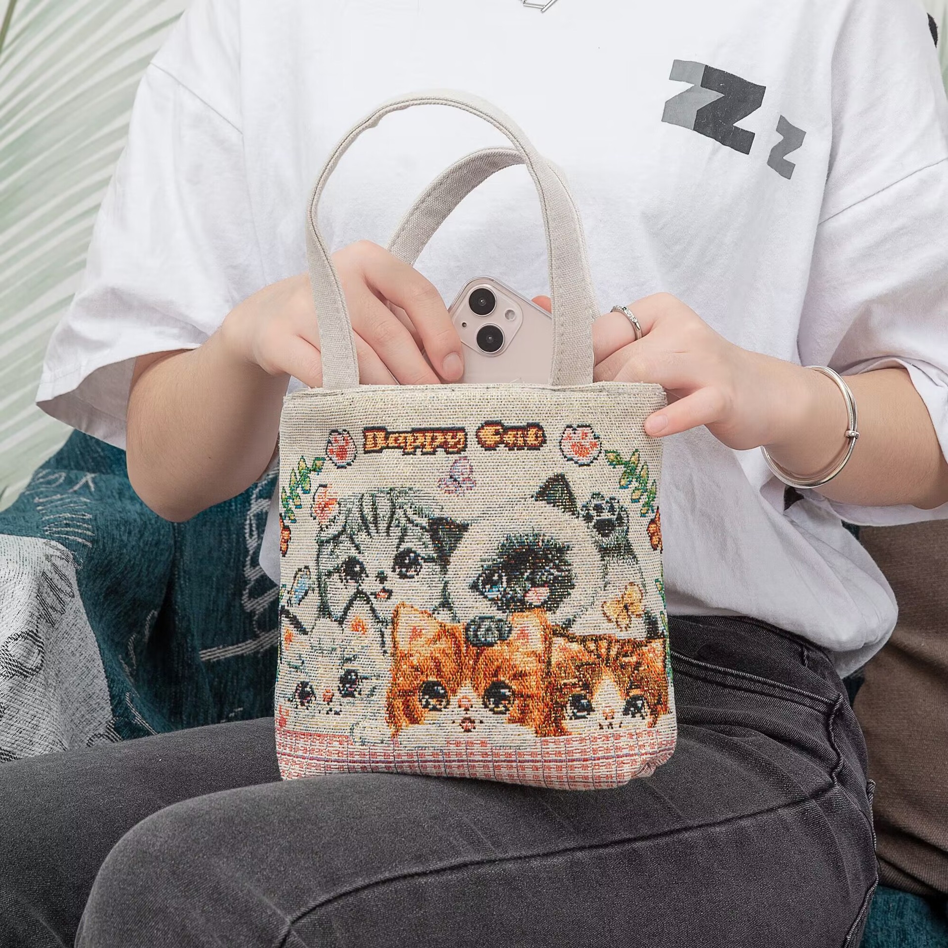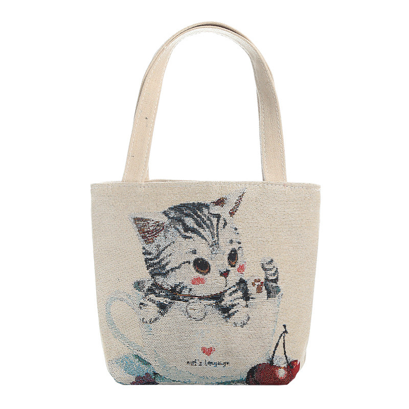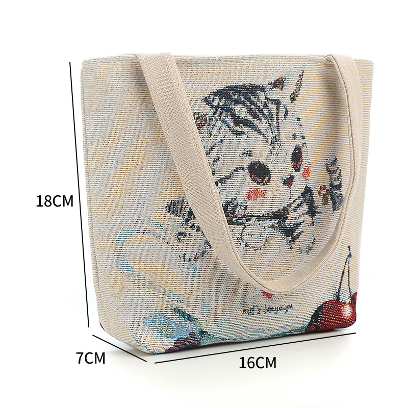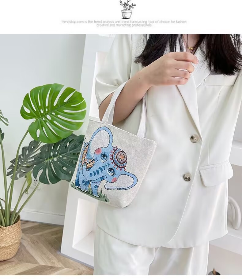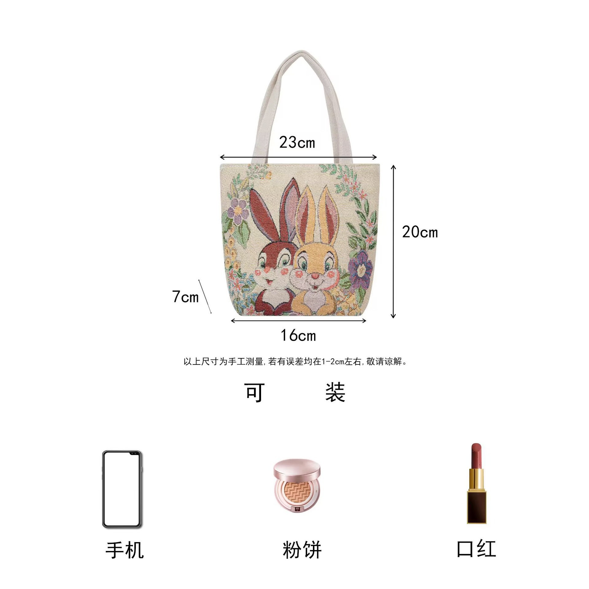 2024卡通提花刺綉時尚文藝帆布包ins單肩百搭上班通勤手提購物包