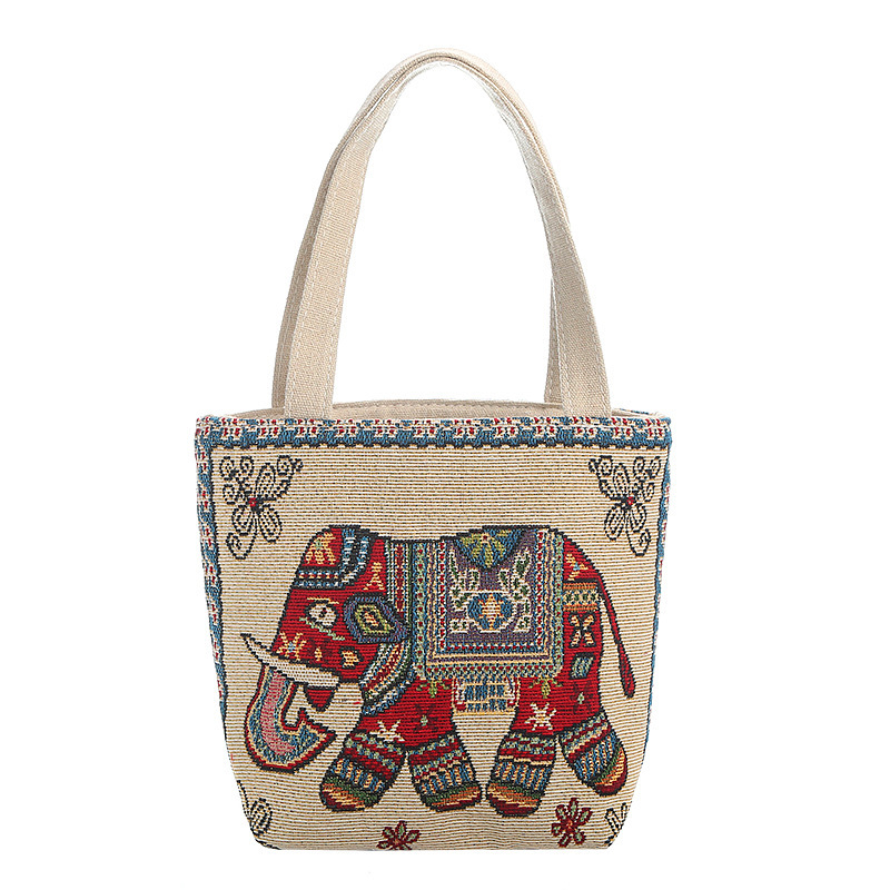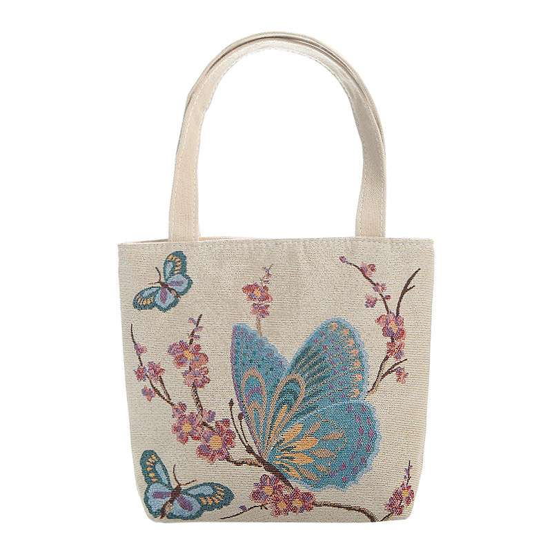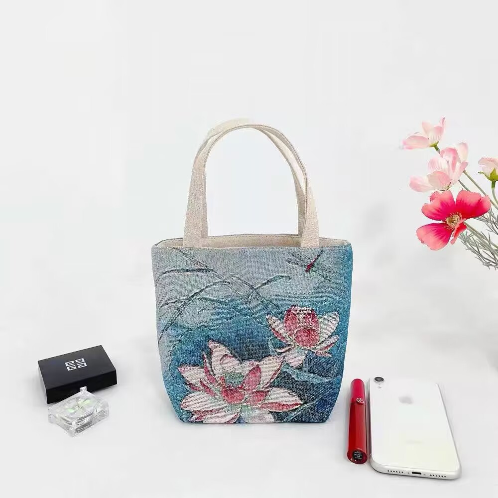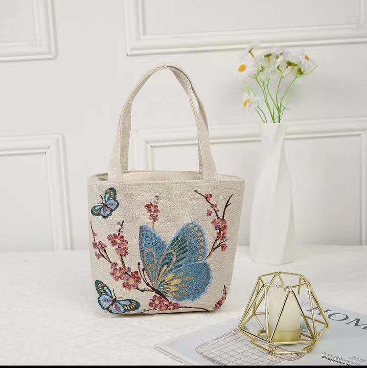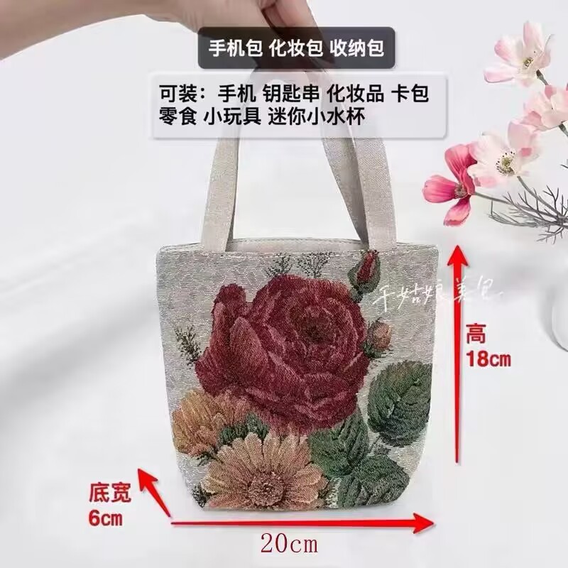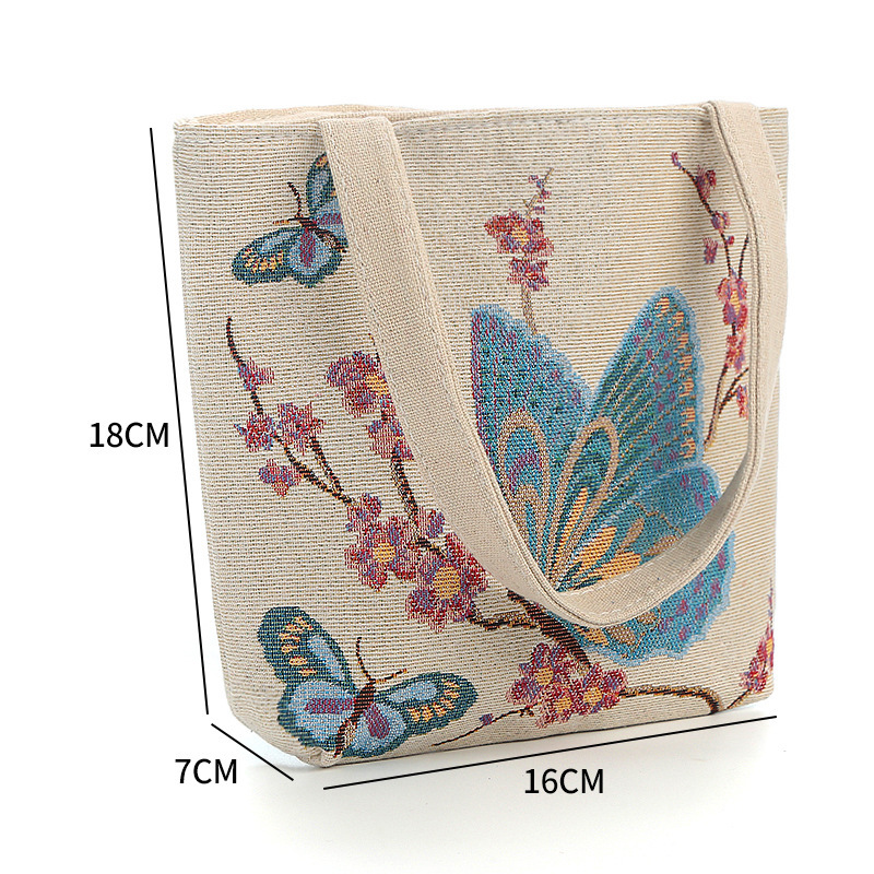 2024卡通提花刺綉時尚文藝帆布包ins單肩百搭上班通勤手提購物包