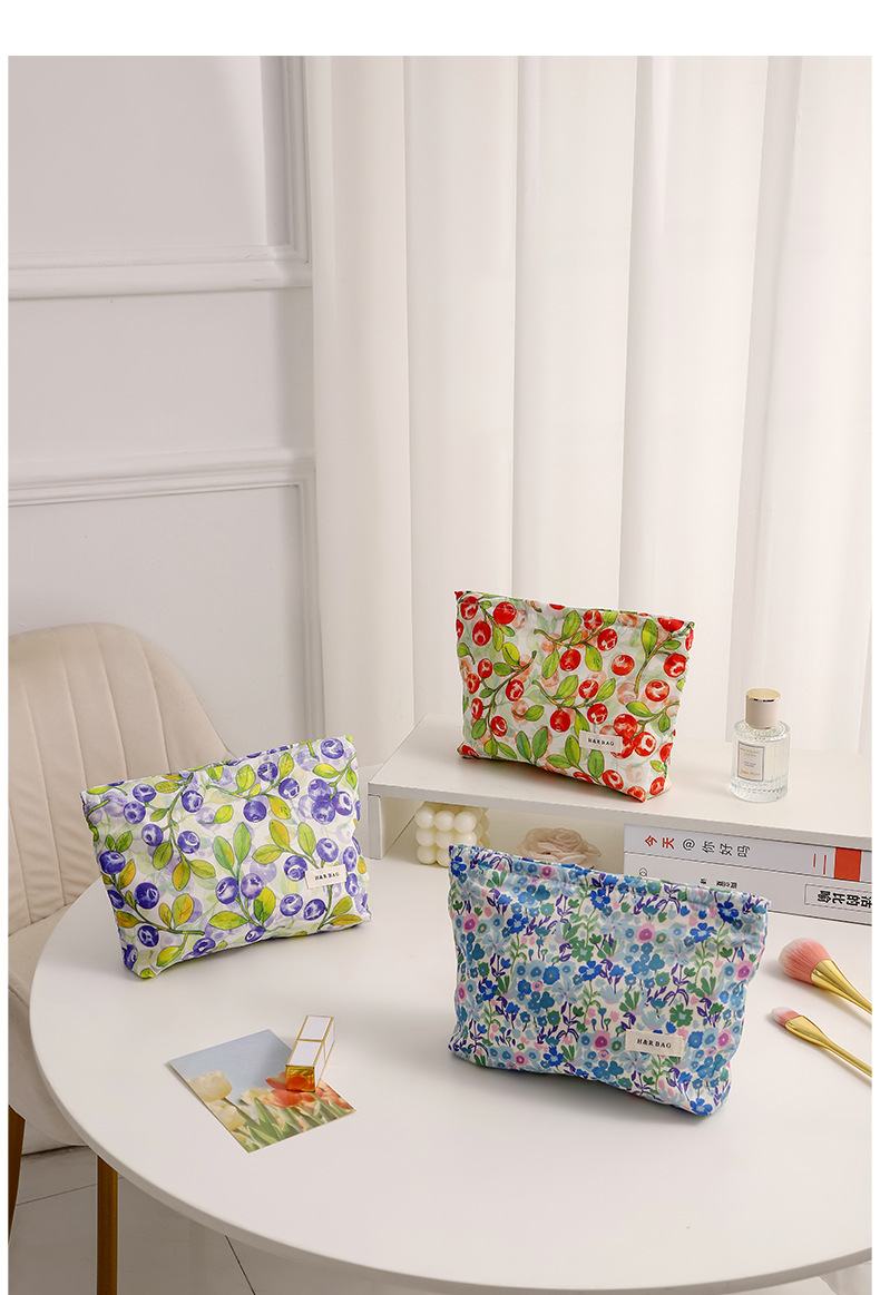 小清新甜美卡通碎花化妝包女可愛女生隨身可攜式收納包內膽包