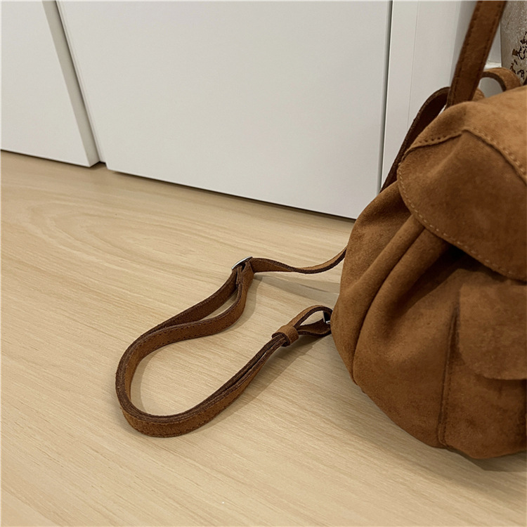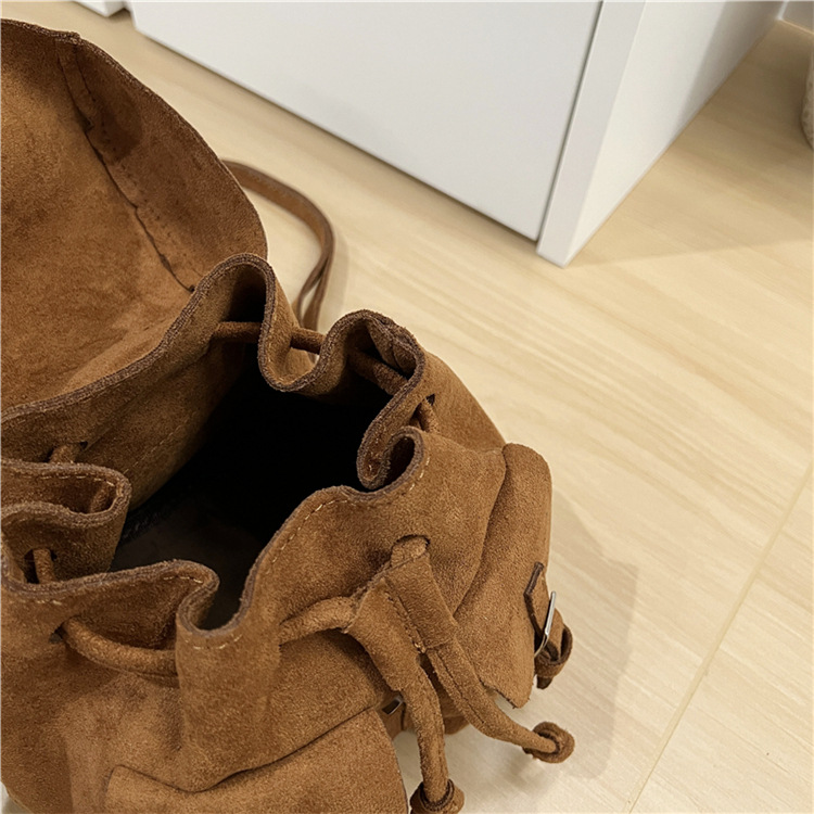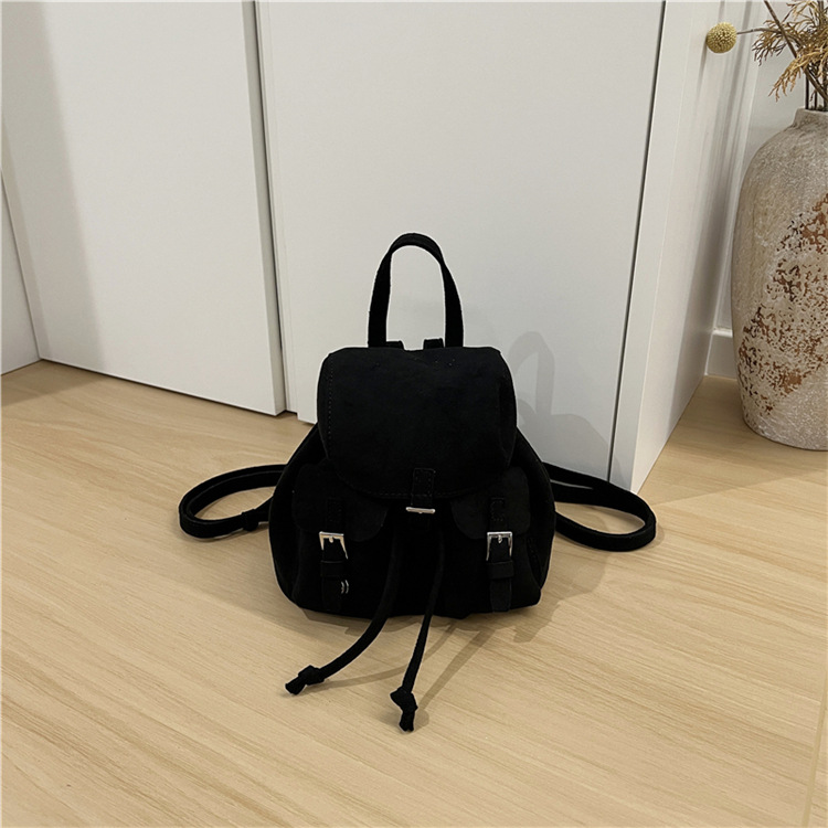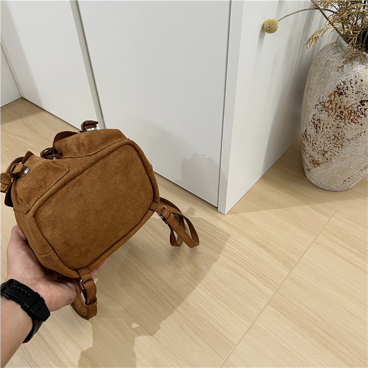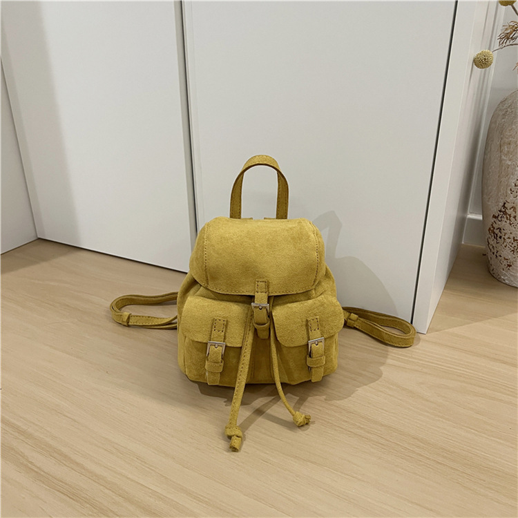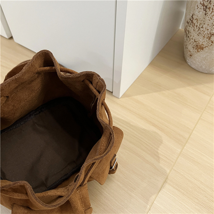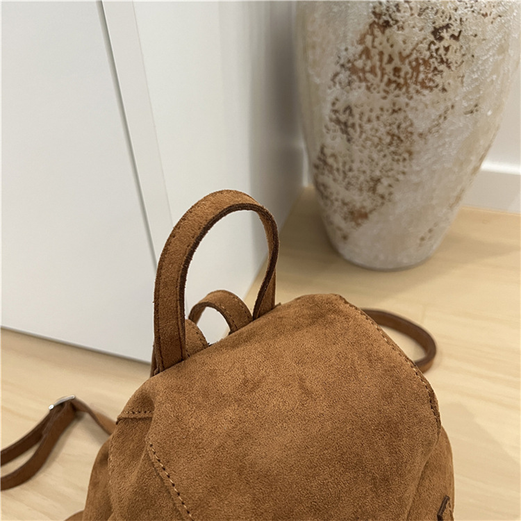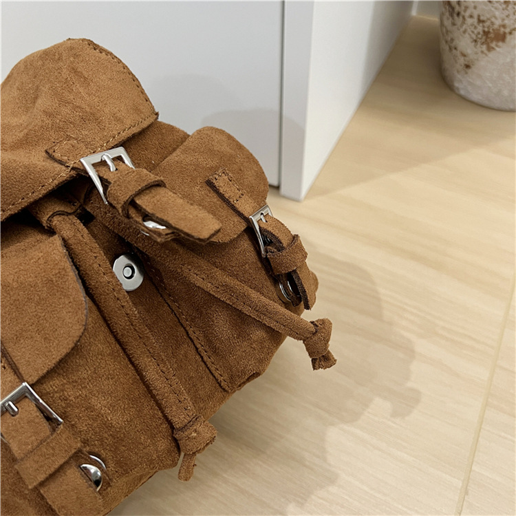 本季 磨砂迷你雙肩包女韓系絨面復古多口袋設計翻蓋抽繩小後背包