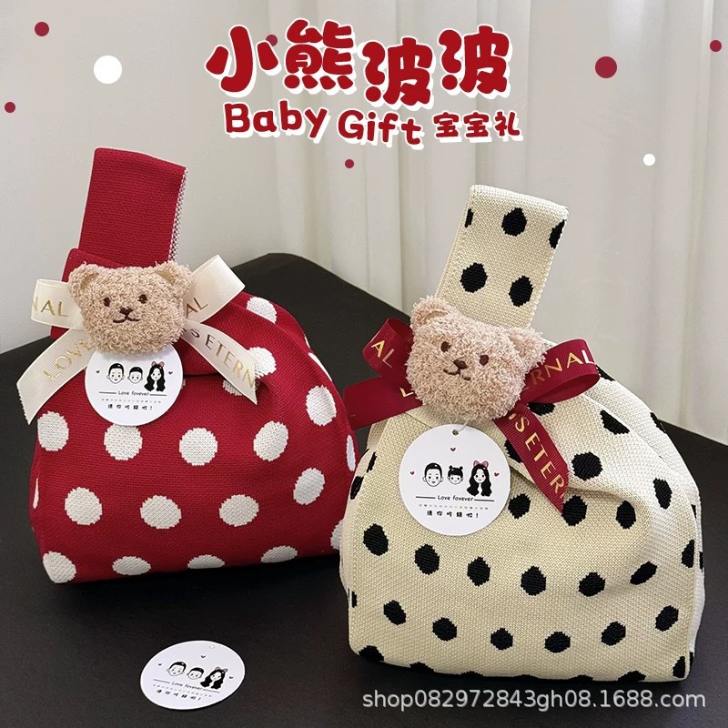 寶寶滿月伴手禮袋精緻針織生日伴手禮包包百日宴周嵗伴手禮手提袋