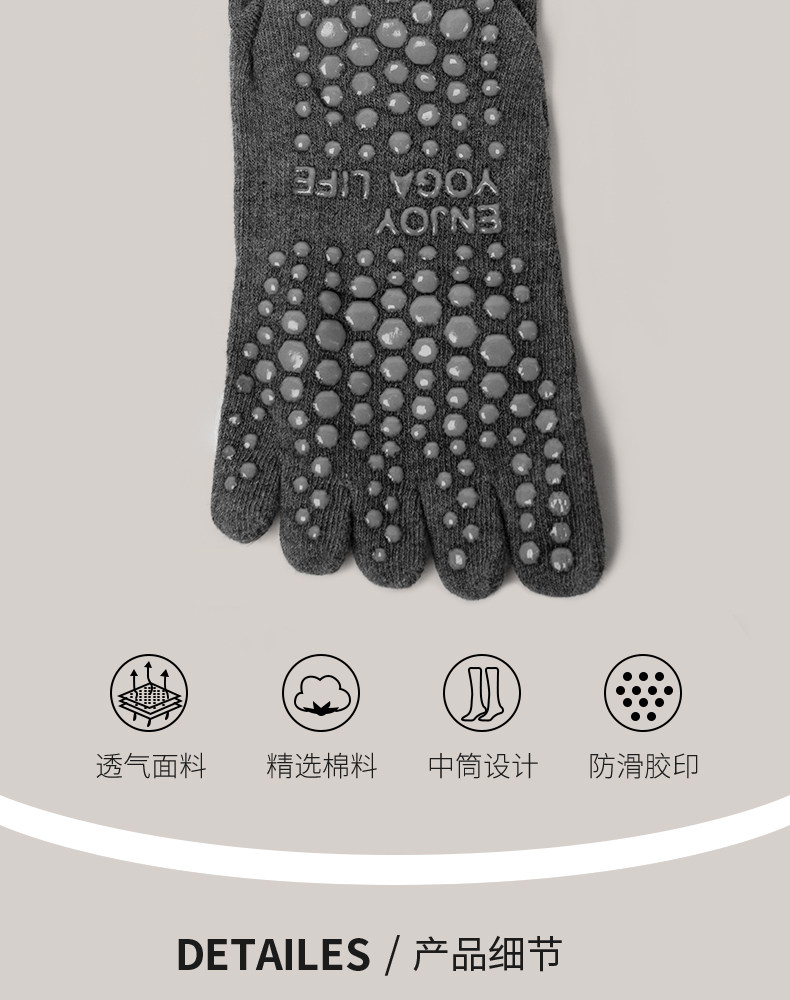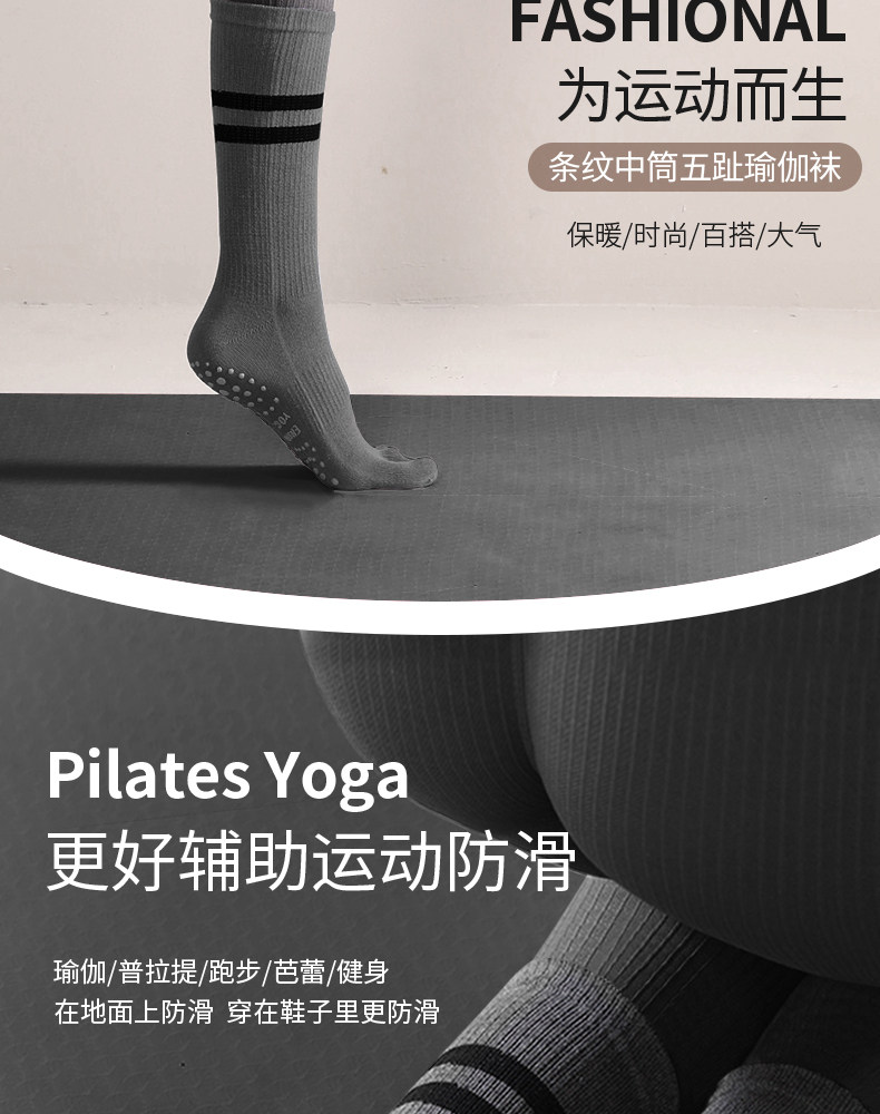 瑜珈襪子防滑專業女中筒五指襪普拉提襪運動防滑專用健身瑜珈室內