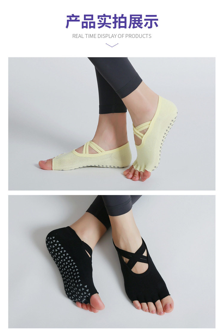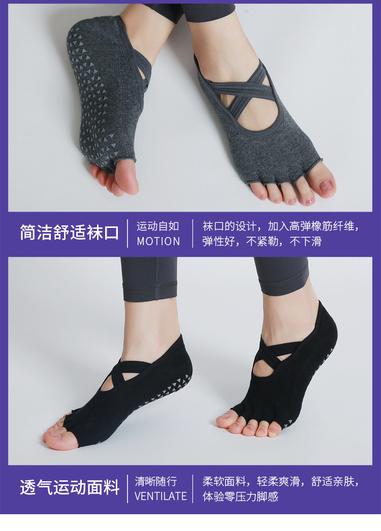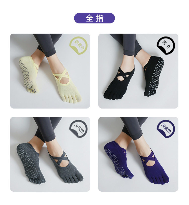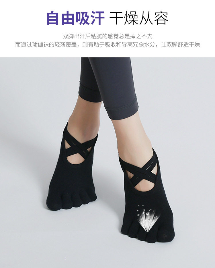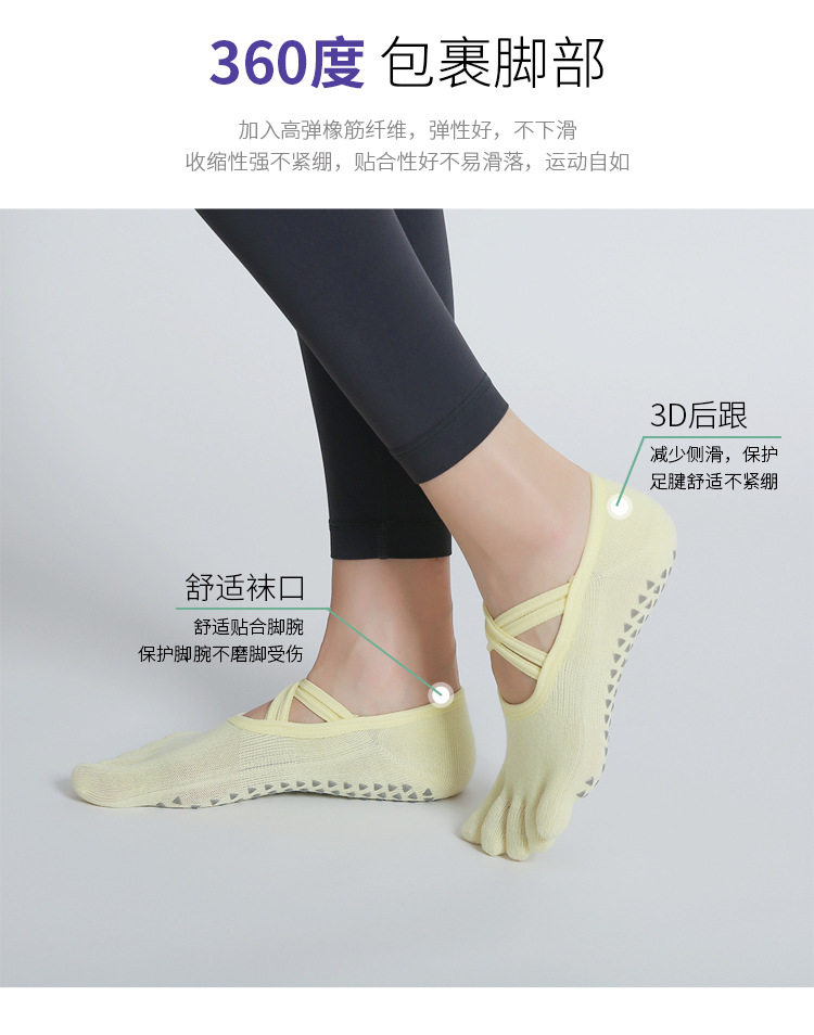 交叉系帶瑜珈襪子防滑專業女五指襪純棉防滑襪普拉提健身訓練襪