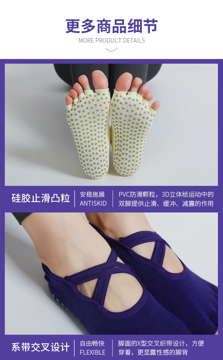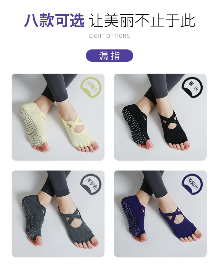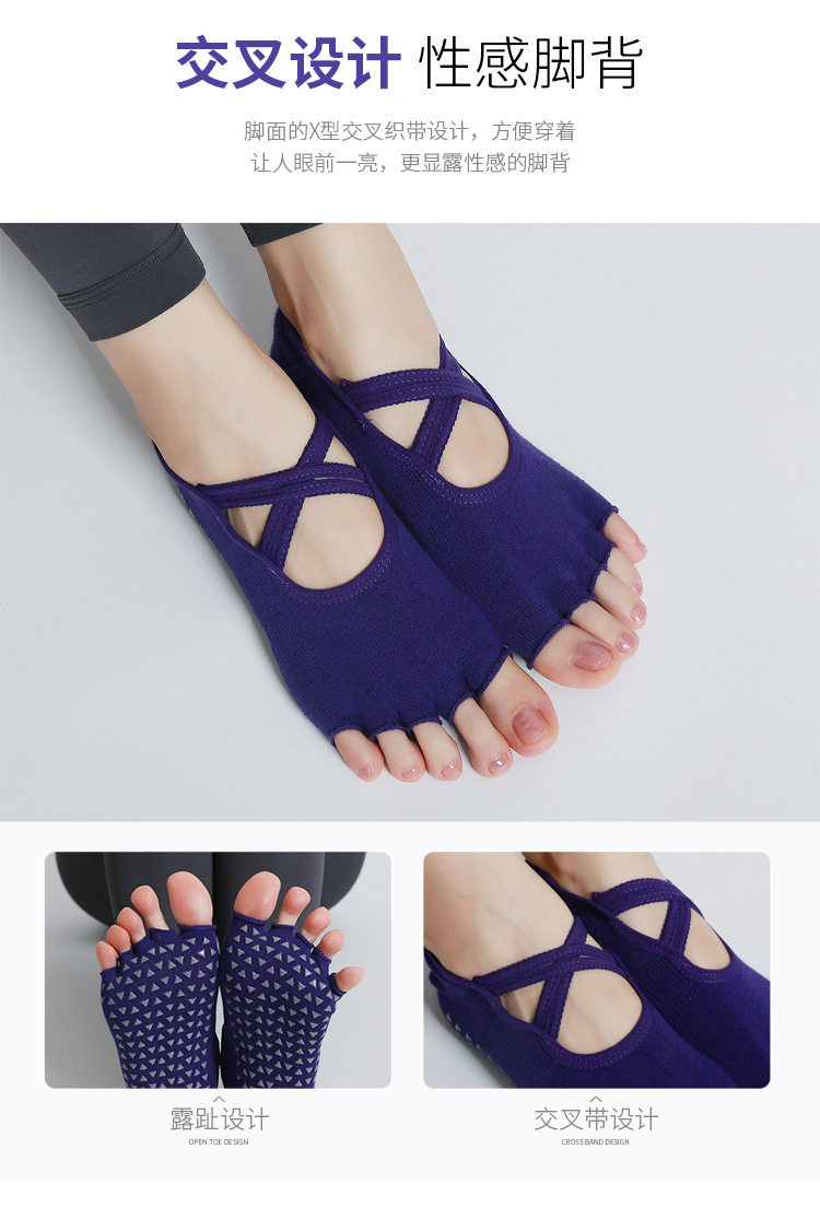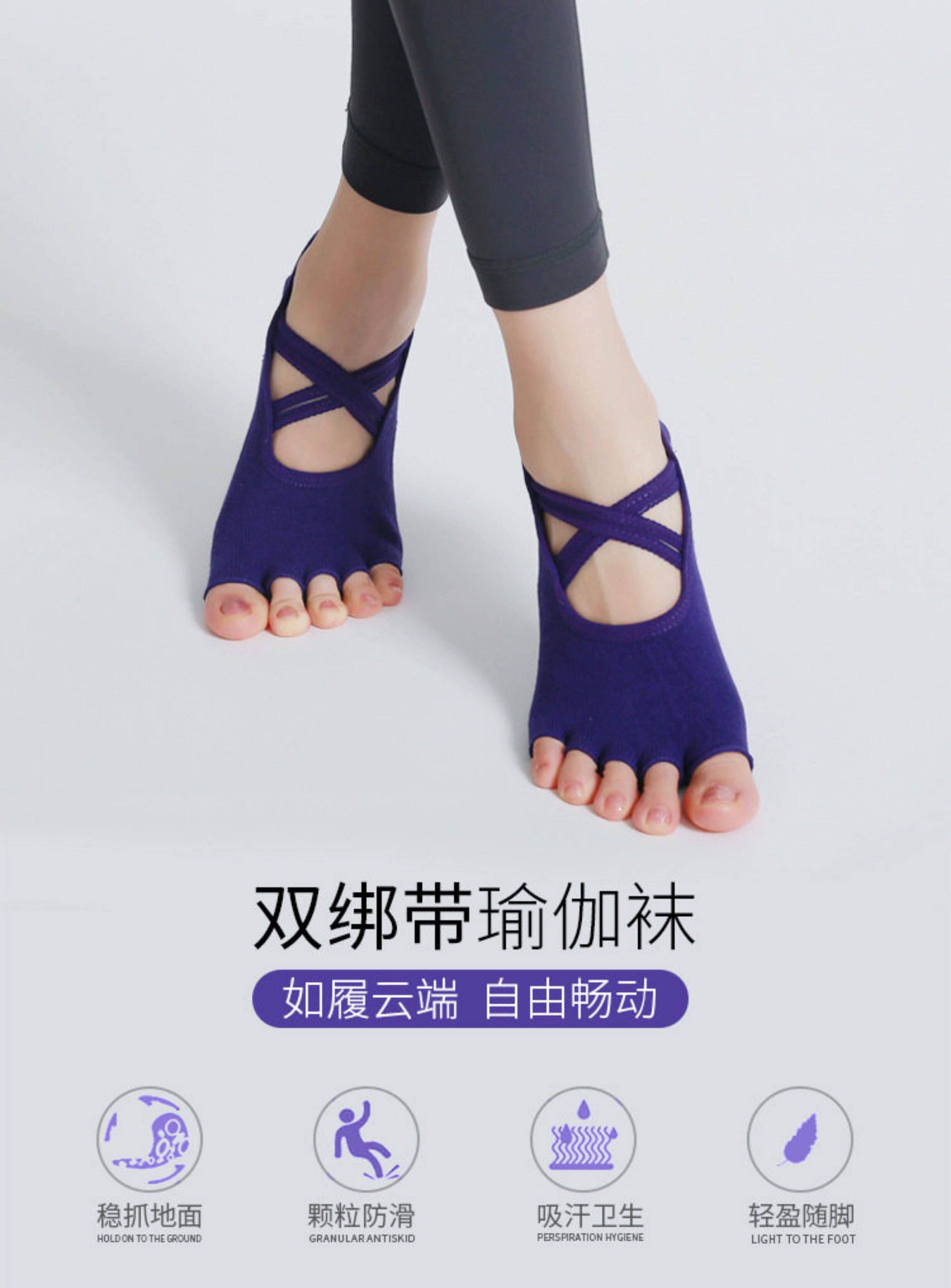 交叉系帶瑜珈襪子防滑專業女五指襪純棉防滑襪普拉提健身訓練襪