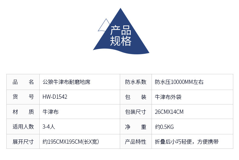公狼戶外210D牛津布方形防潮地墊四角帳篷防摩擦耐磨帳篷地墊