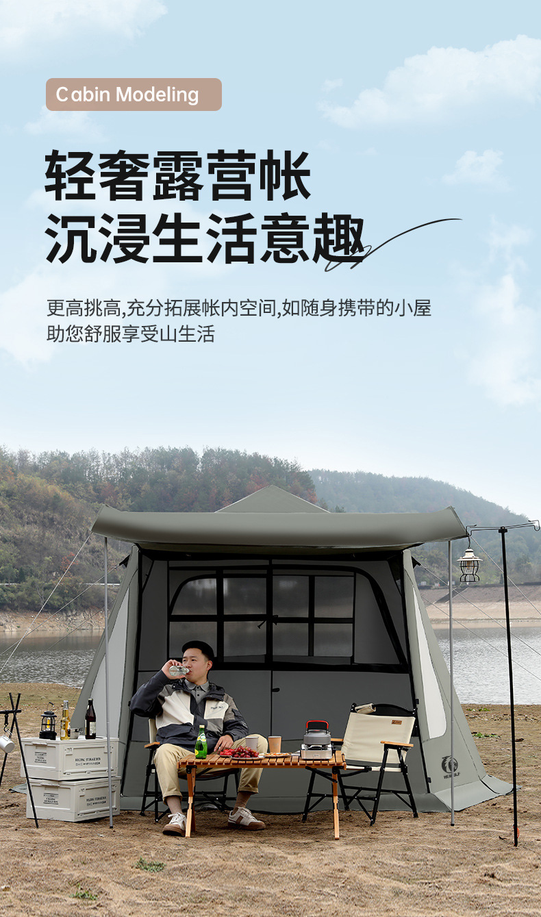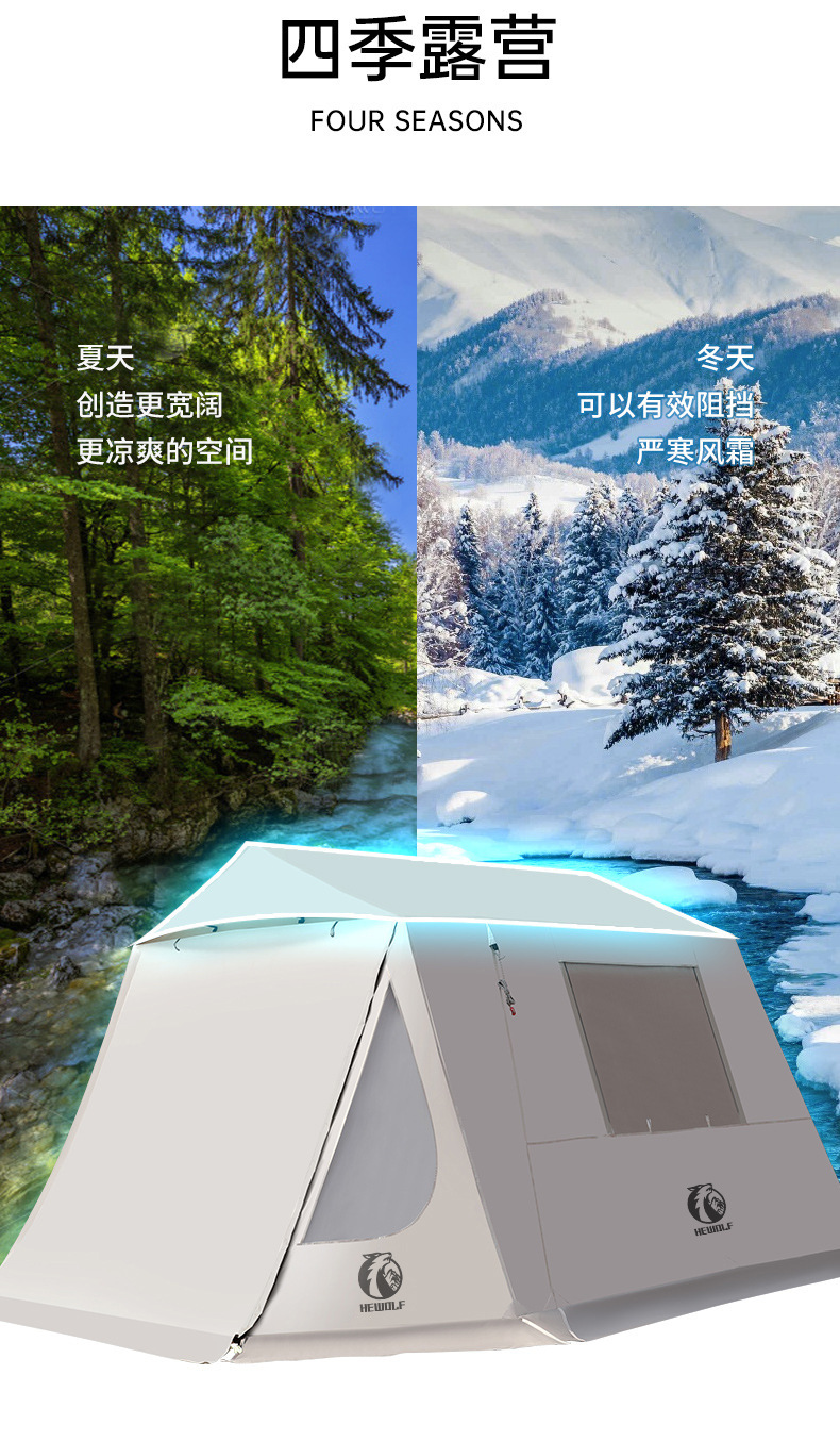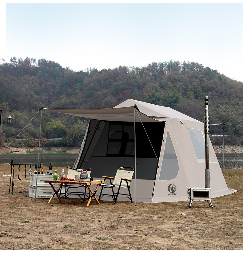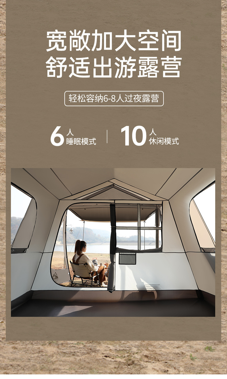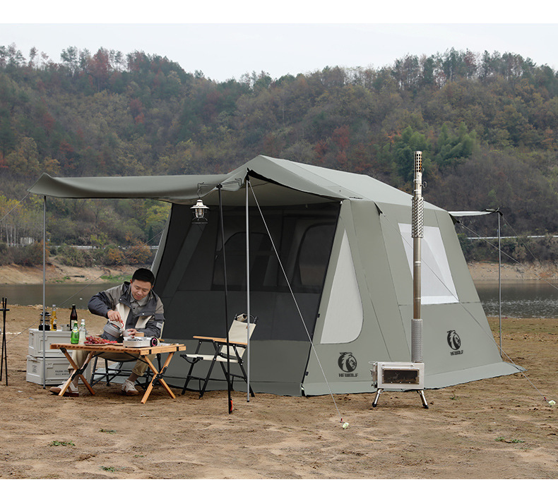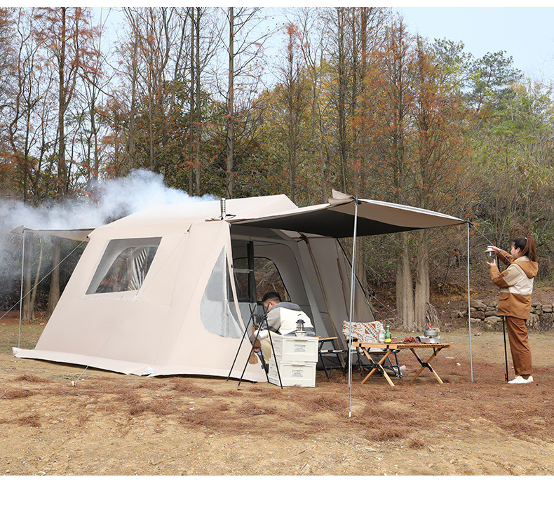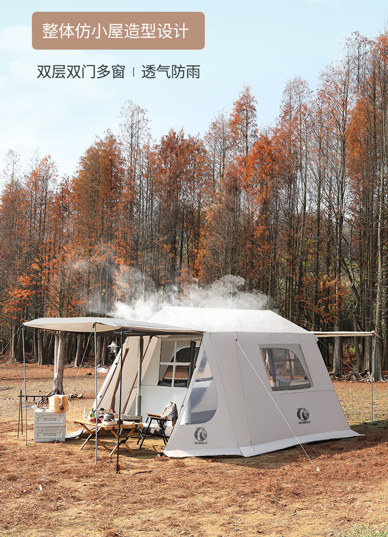 戶外大型露營帳篷天幕二合一野營過夜防暴雨防曬帳篷豪華營地小屋