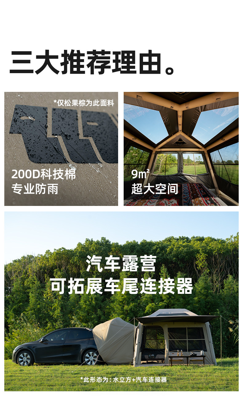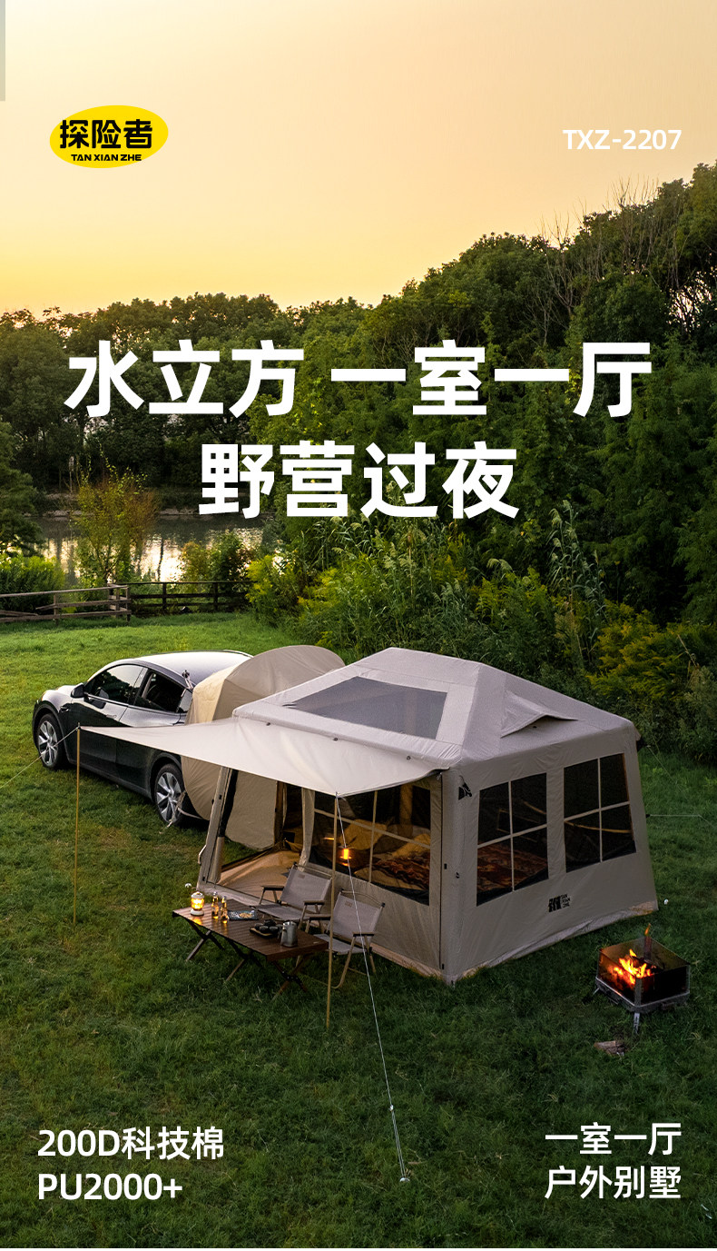 探險者水立方充氣帳篷全自動戶外野營過夜防暴雨露營裝備車尾一體