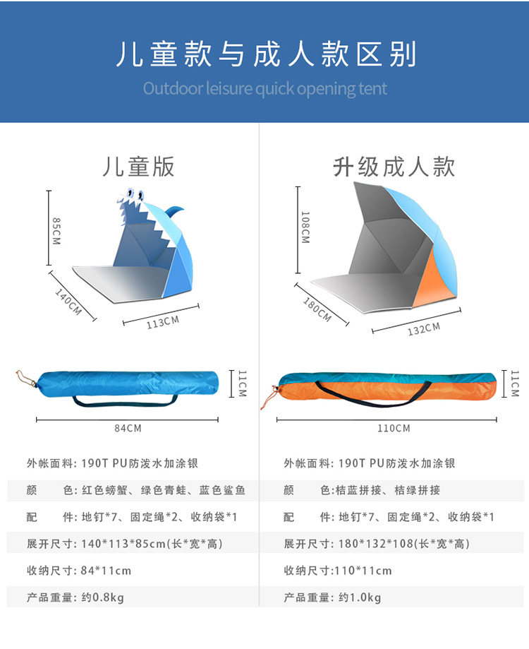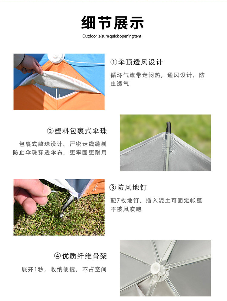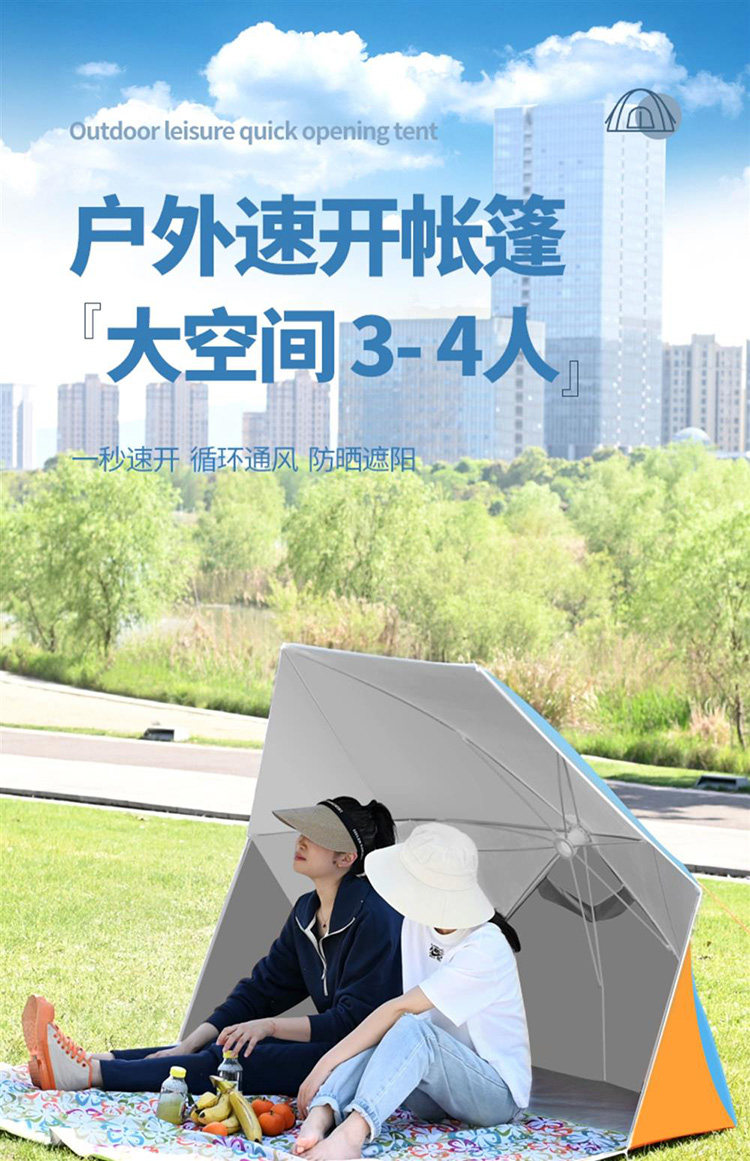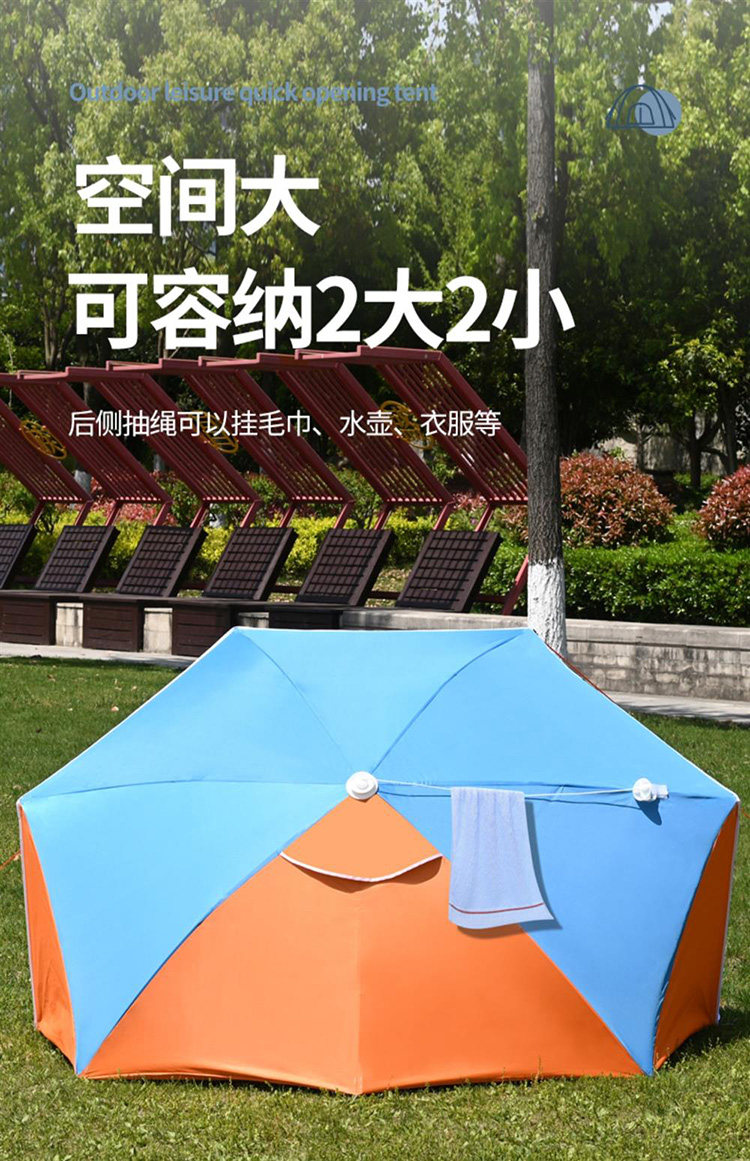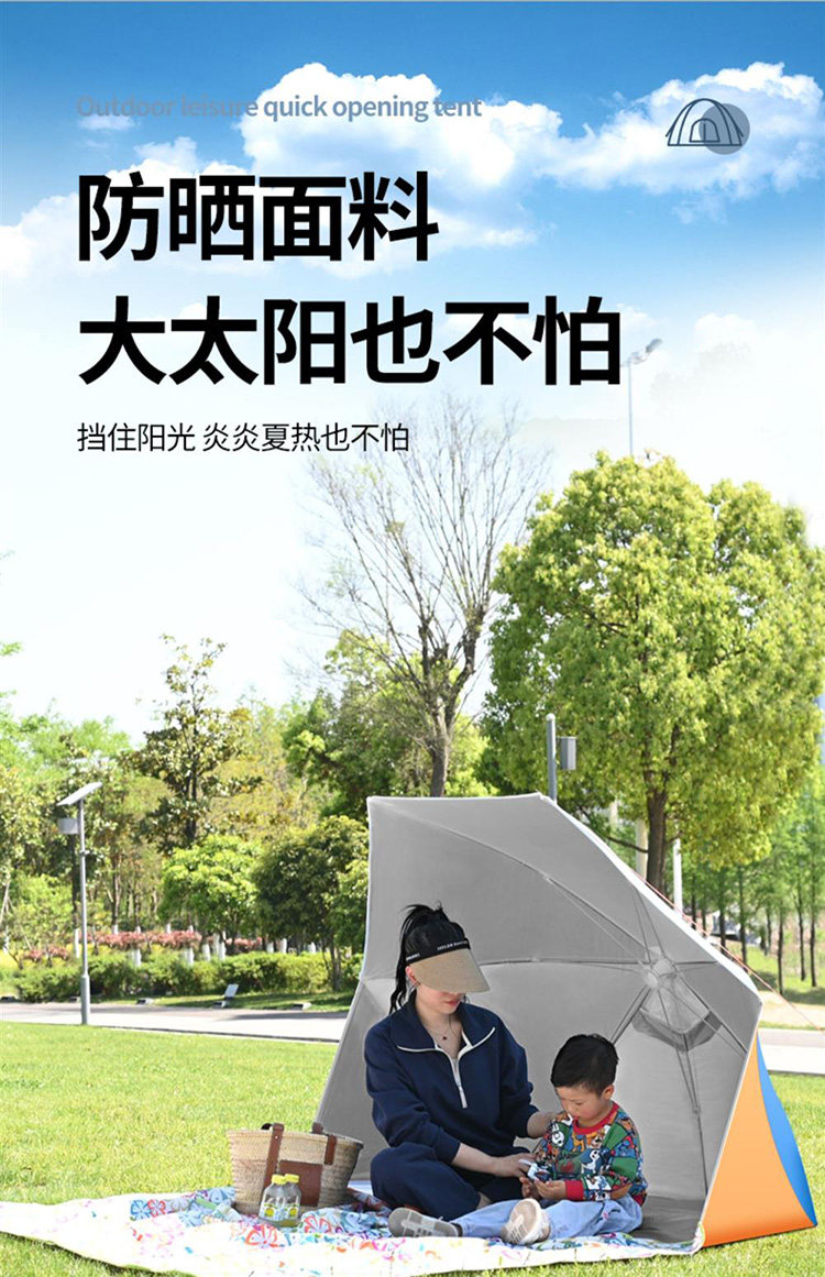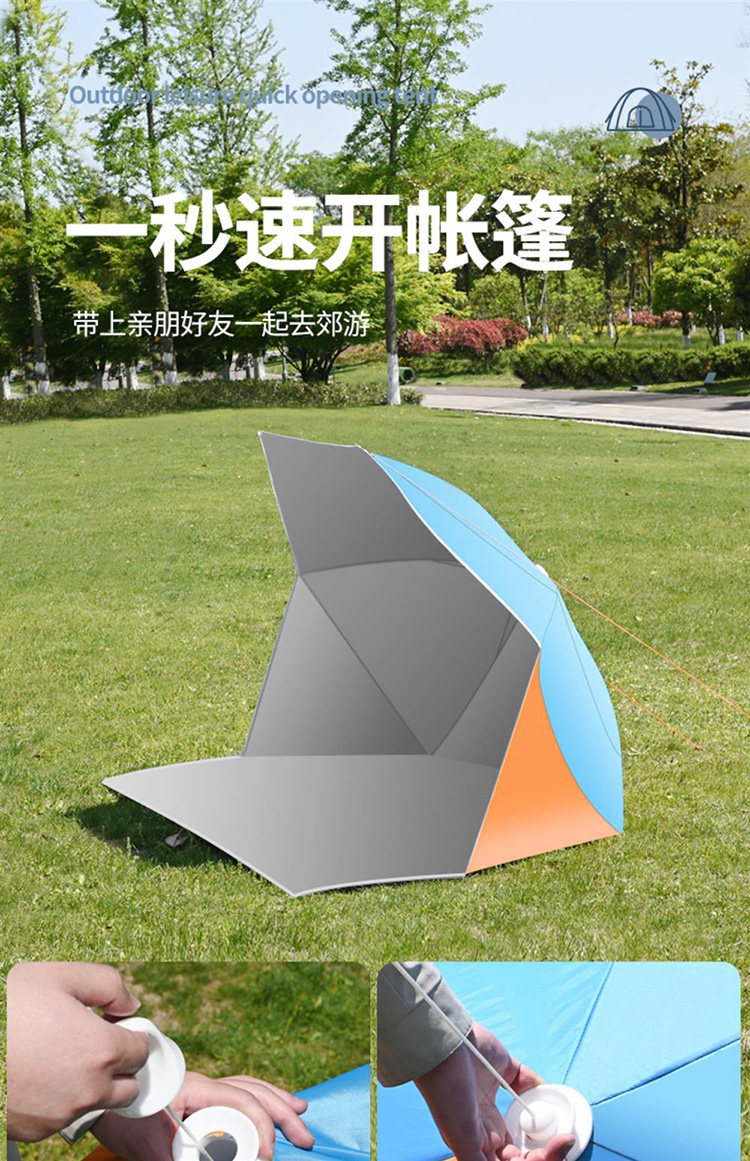 戶外可攜式沙灘遮陽傘抽繩折曡傘露營休閒帳篷傘防曬速開兒童野餐