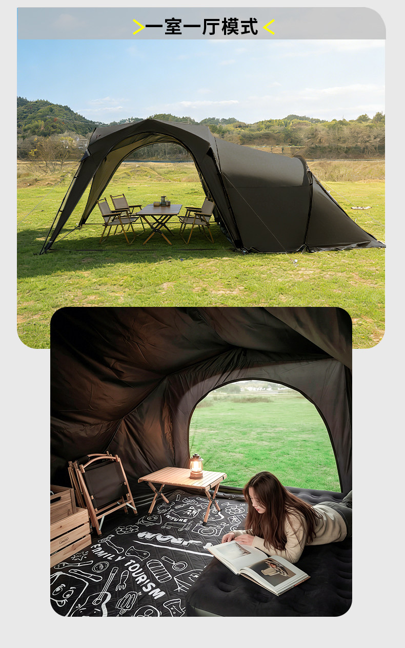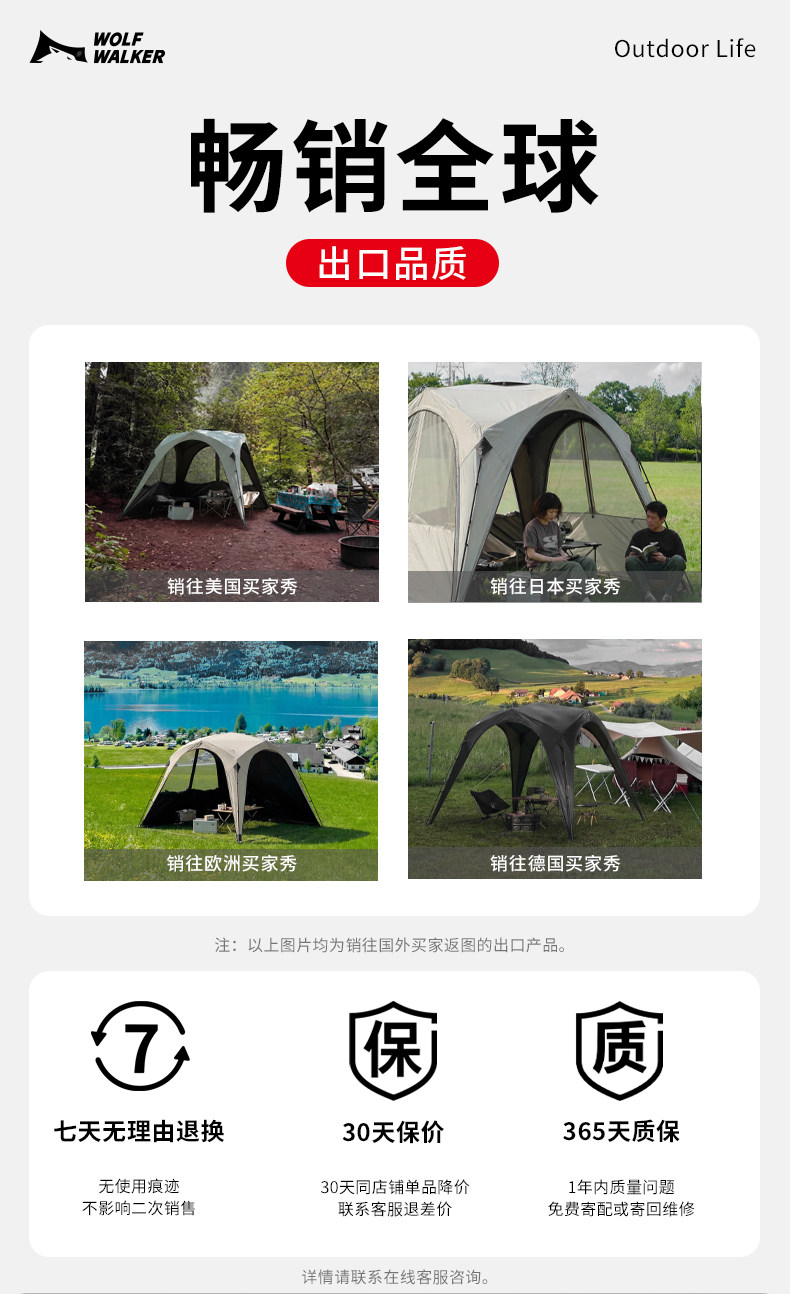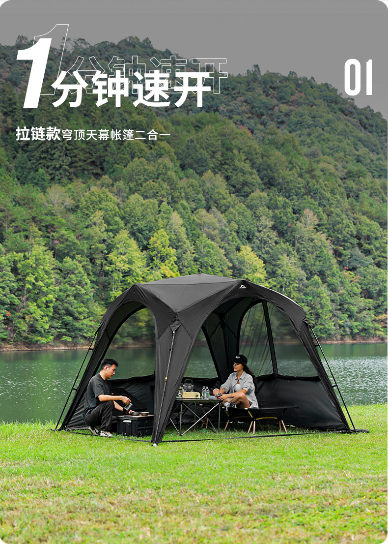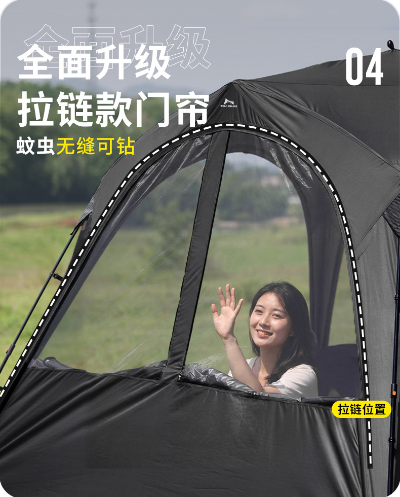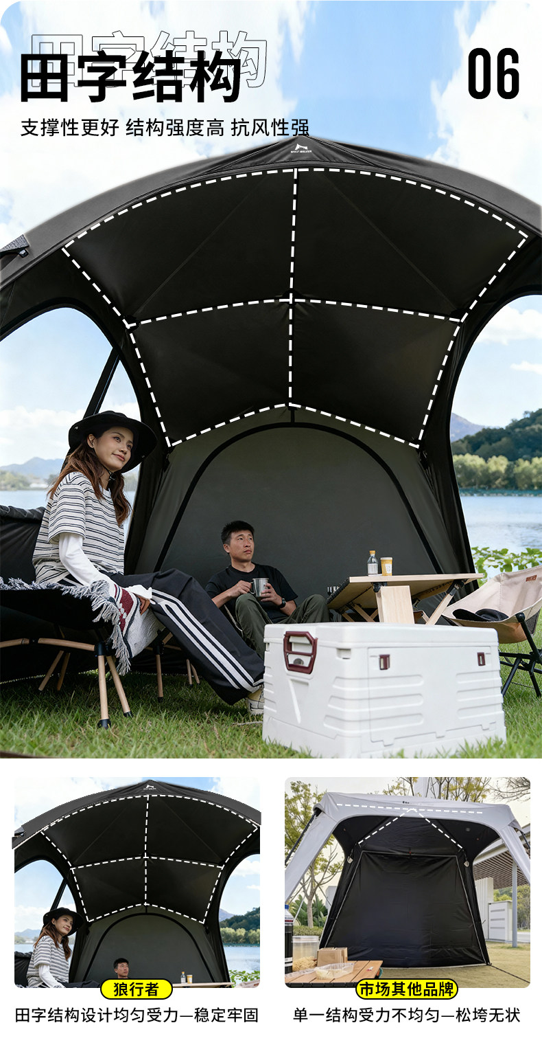 狼行者自動穹頂天幕速開一體式帳篷戶外露營鈦黑膠遮陽棚防曬防雨