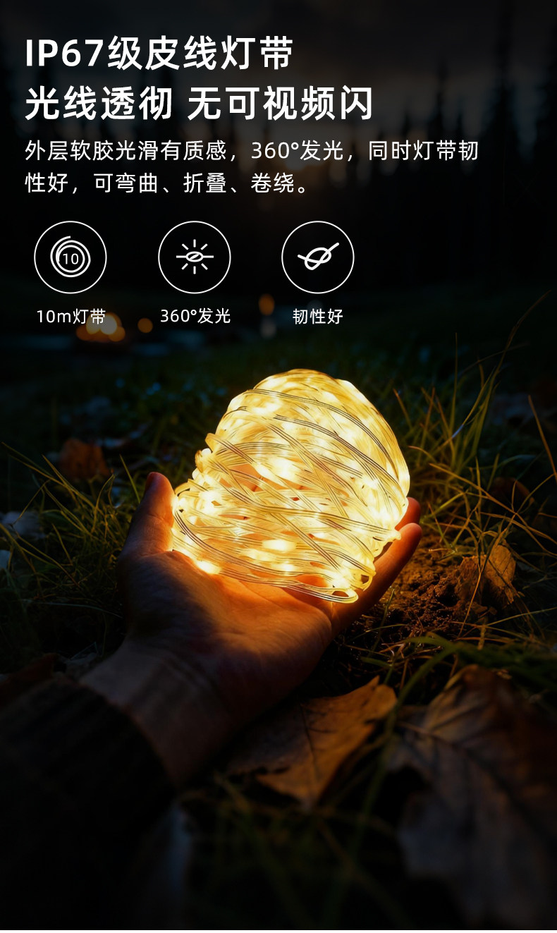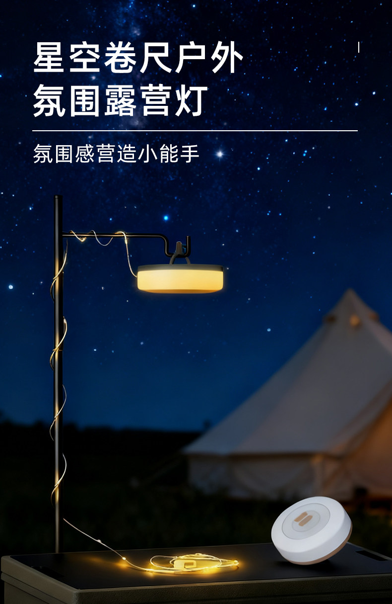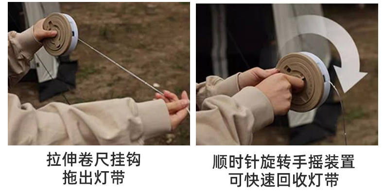 露營氛圍卷尺燈戶外照明超長續航充電可攜式收納10米串燈聖誕樹掛燈