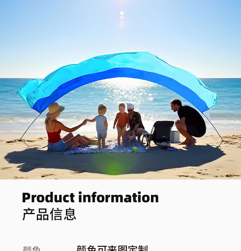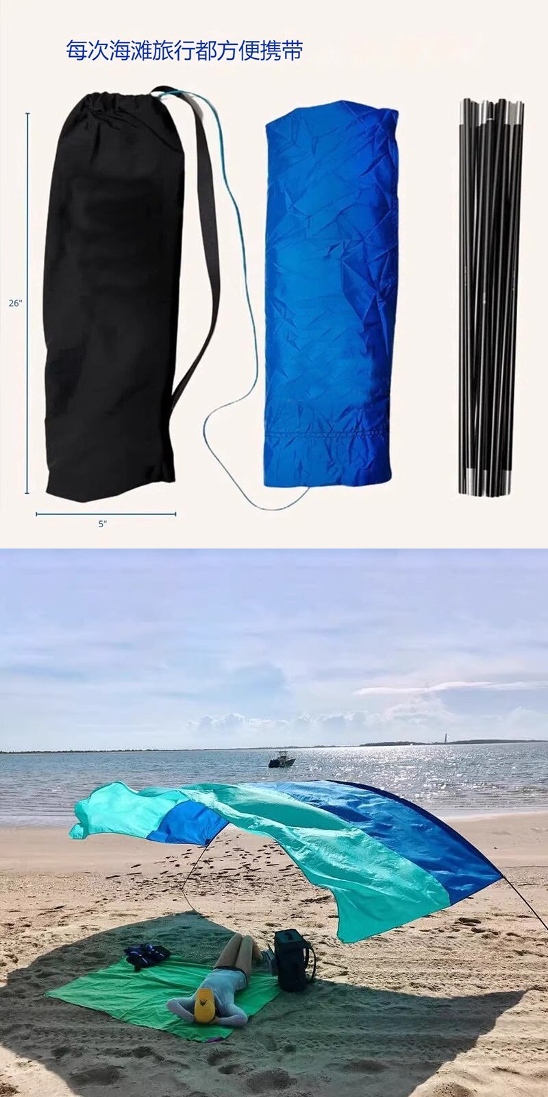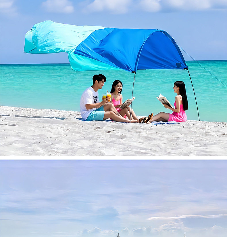 風動力遮陽天幕沙灘帆海邊度假戶外帳篷防水防曬尼龍輕薄遮陽篷單