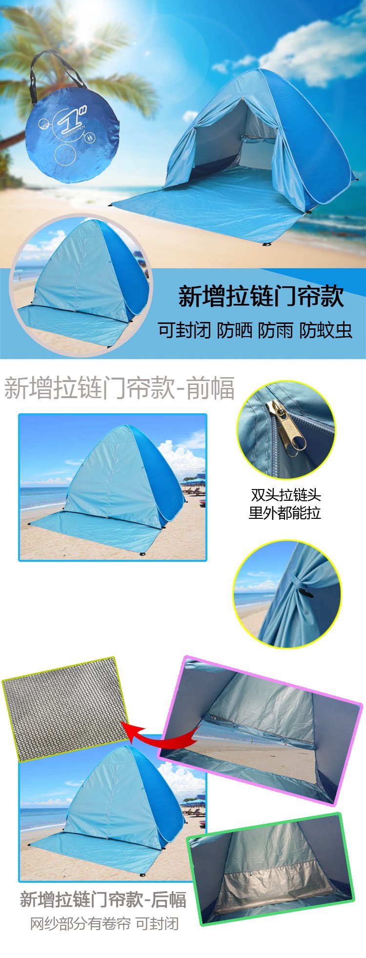 沙灘帳篷可攜式速開海邊遮陽神器防紫外線防曬帳幕沙灘必備用品非