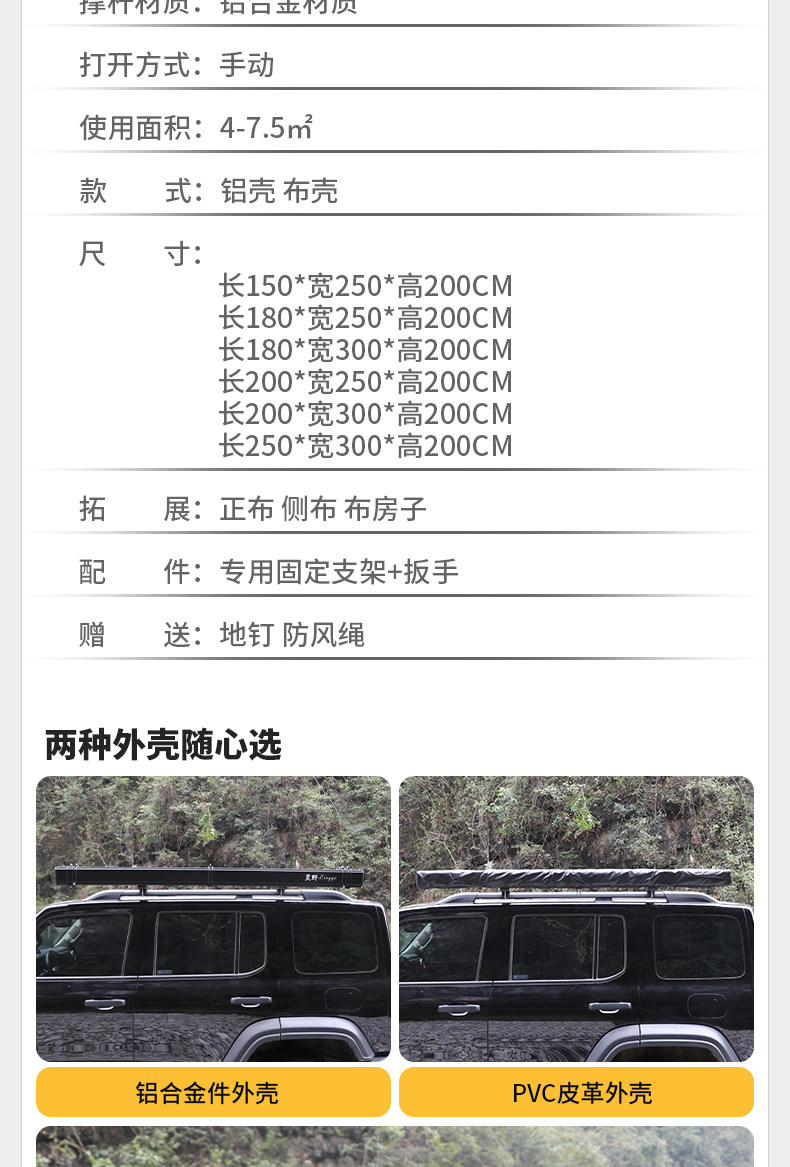 | 車頂帳篷類型 | 延伸型 |