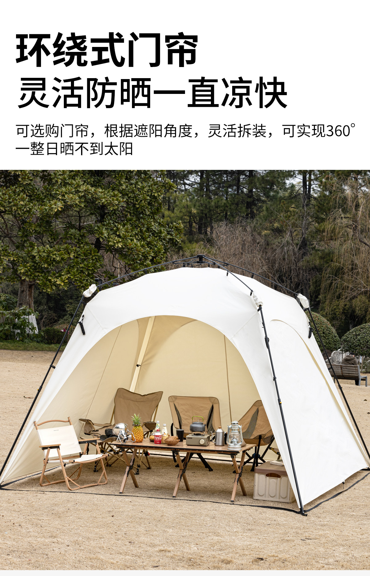 自動桿速開戶外穹頂天幕帳篷黑膠防曬露營遮陽棚可攜式防風防雨