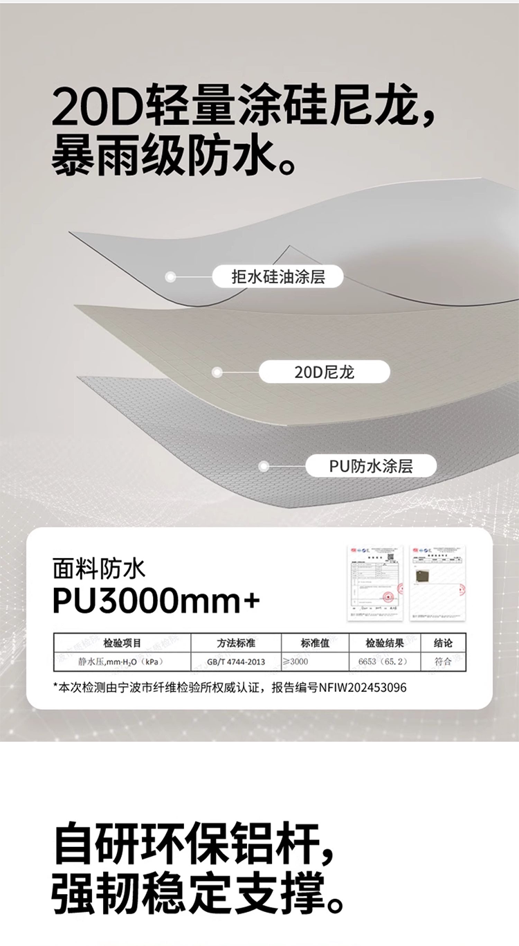 | 外帳防水指數 | 2000mm(含)-3000mm(含) |
