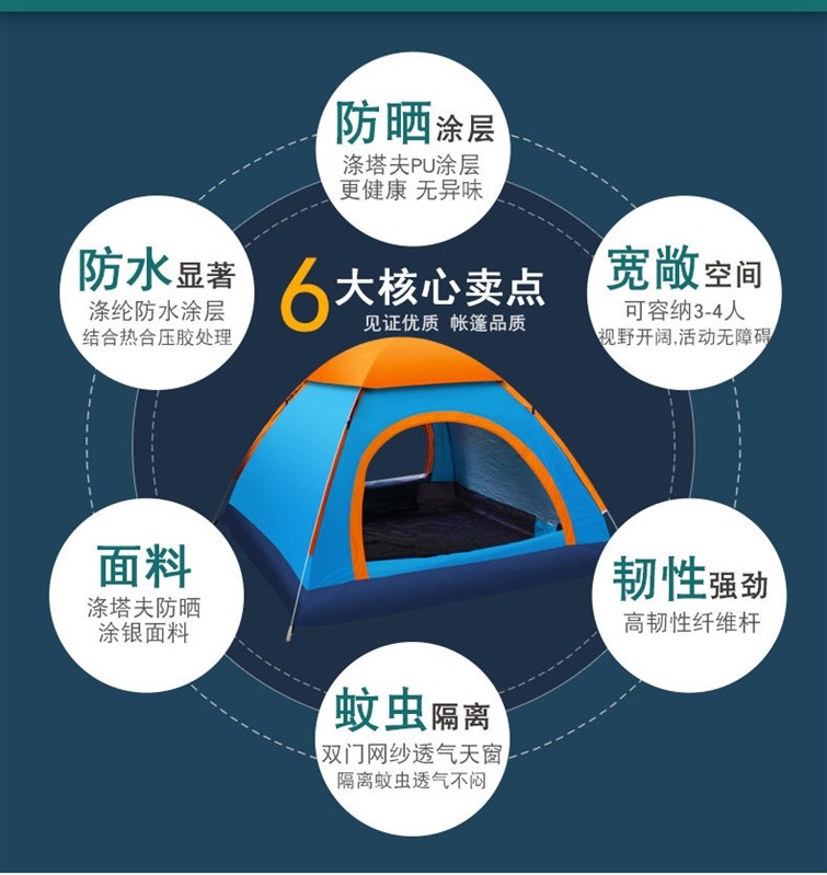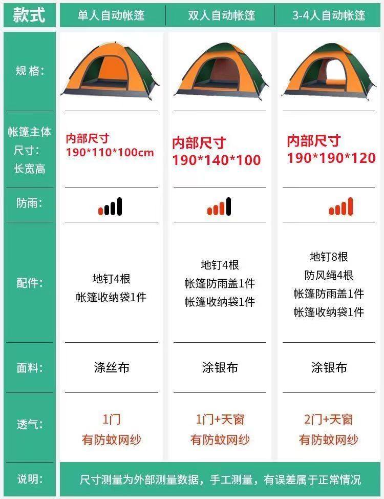 露營帳篷單人帳篷戶外防曬加厚防雨3-4人速開自動雙人2人野外露營