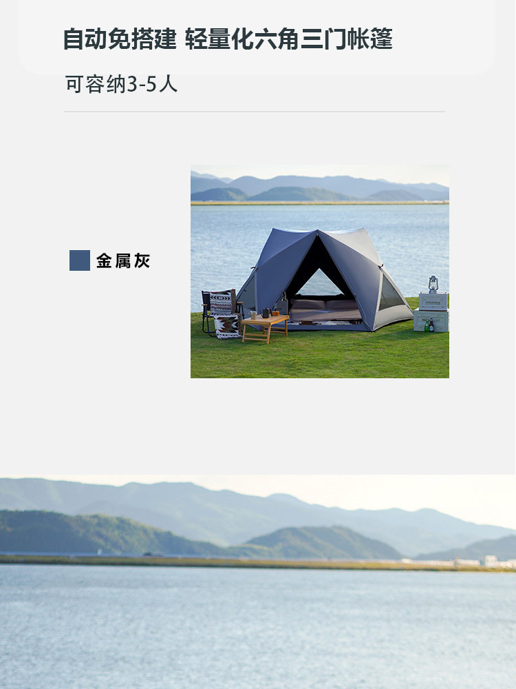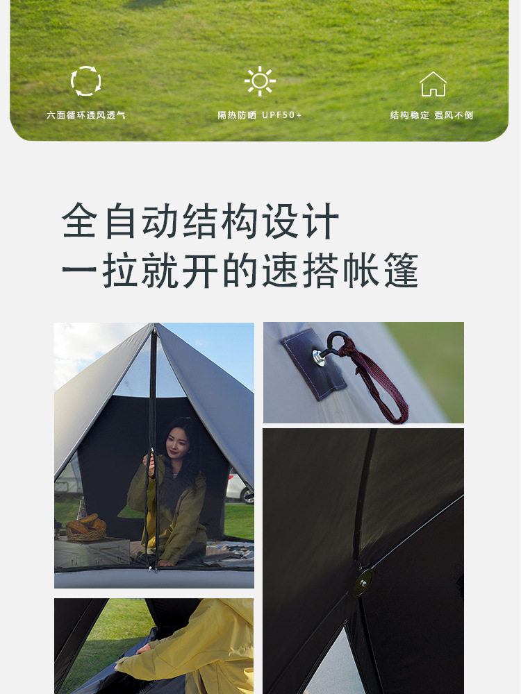 戶外可攜式六角速搭球狀帳篷自動速開帳露營公園沙灘遮陽室內野餐帳