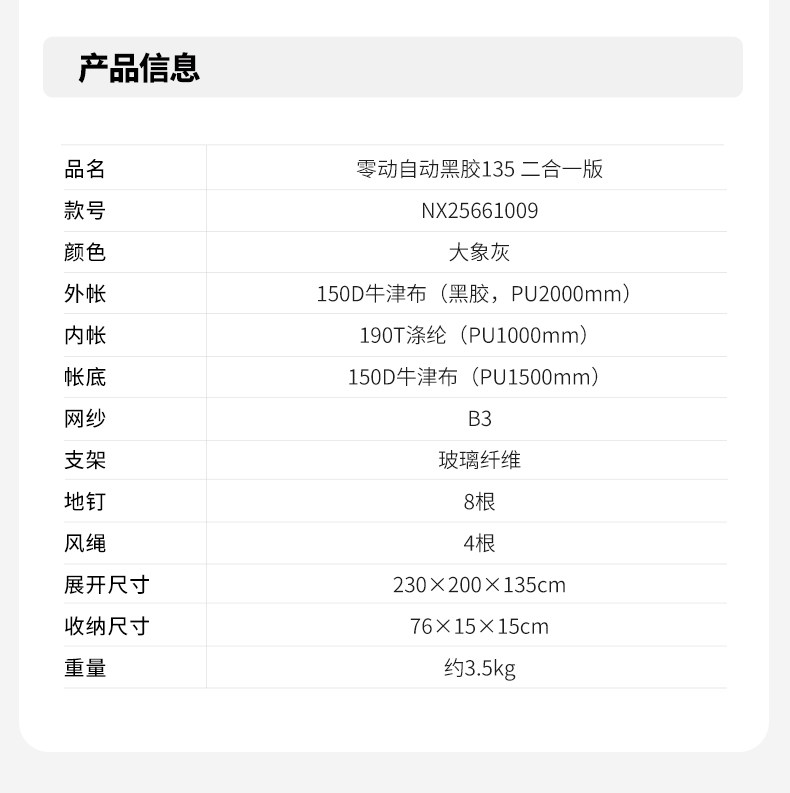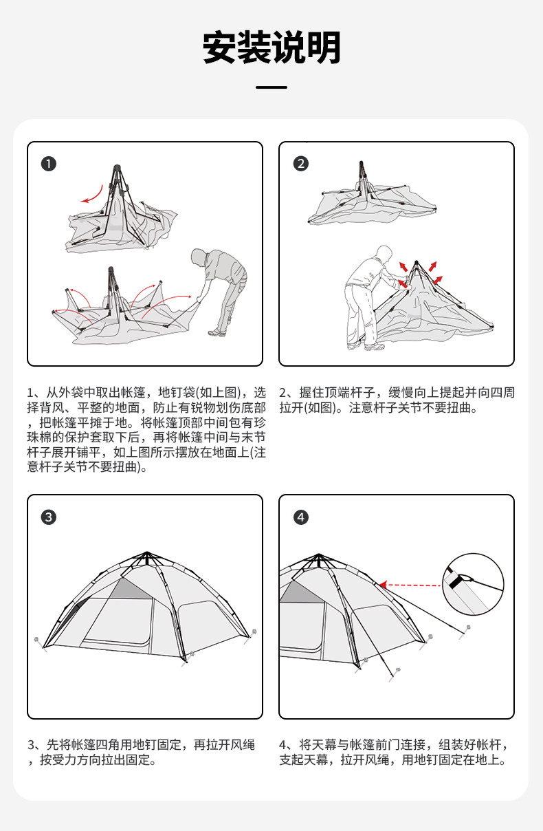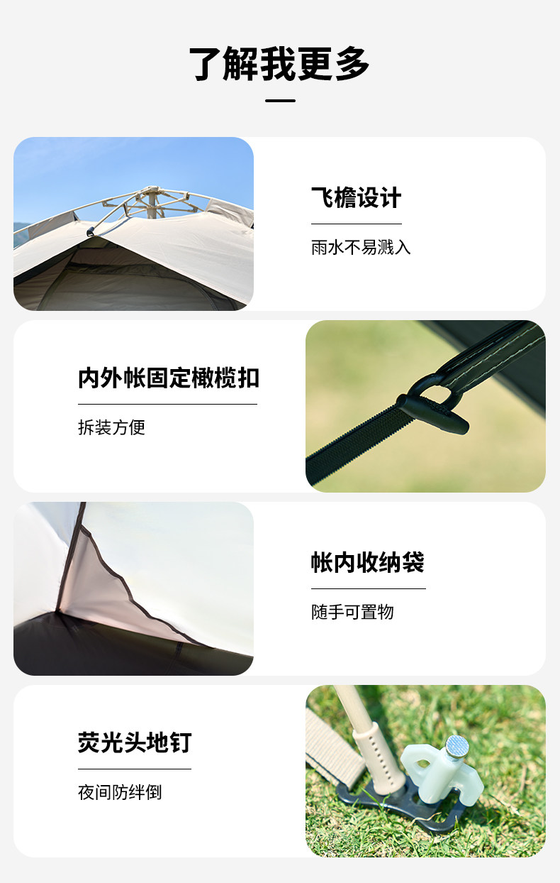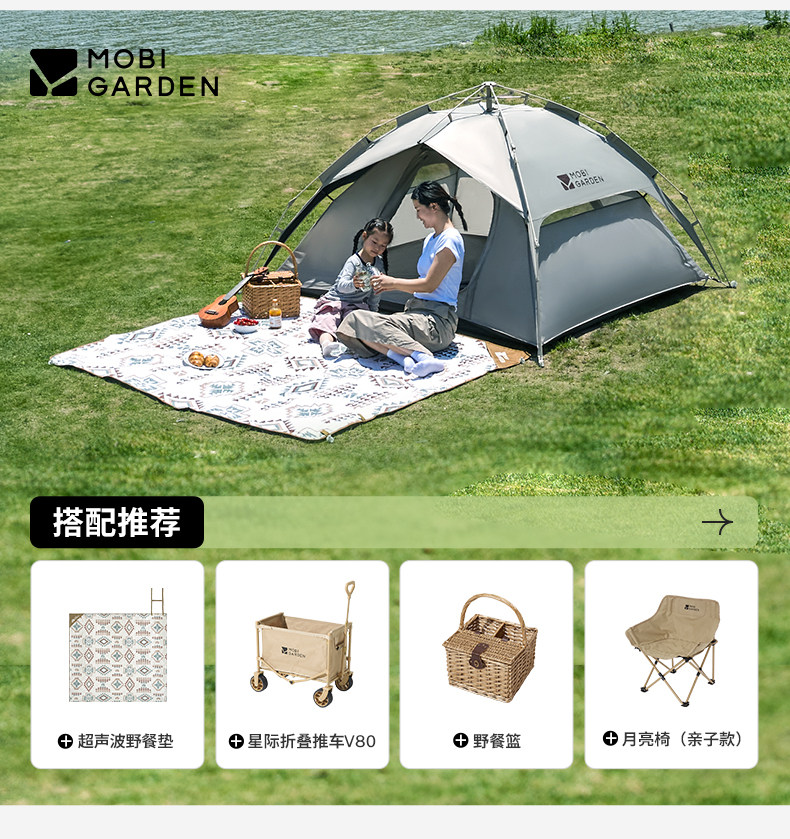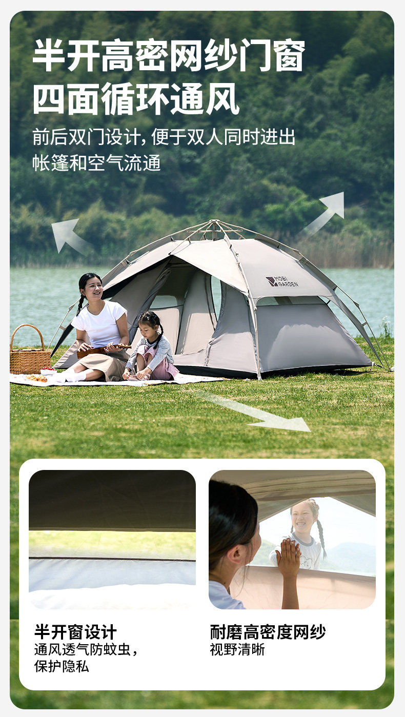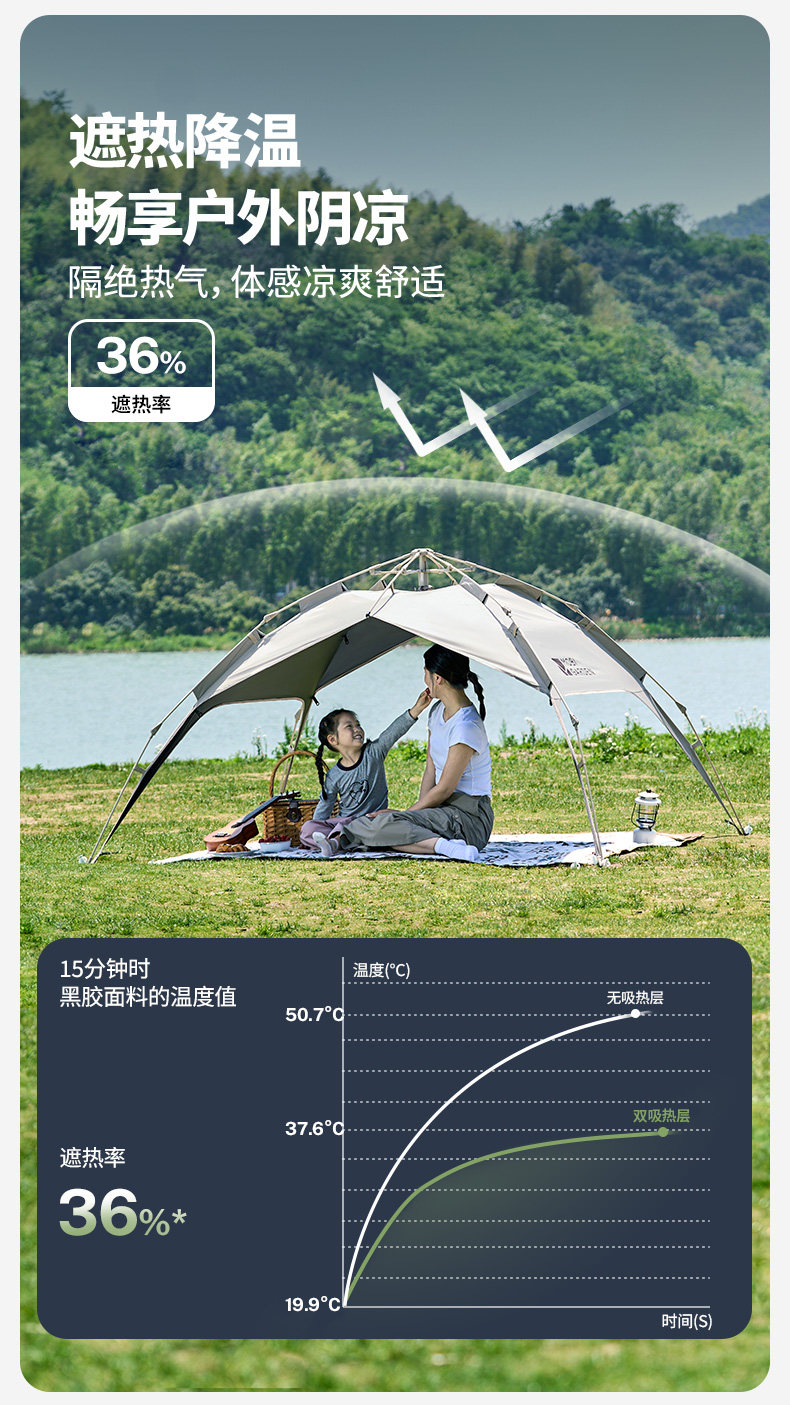 牧高笛自動帳篷戶外露營防曬免搭建速開黑膠帳篷UPF50+涼亭帳篷