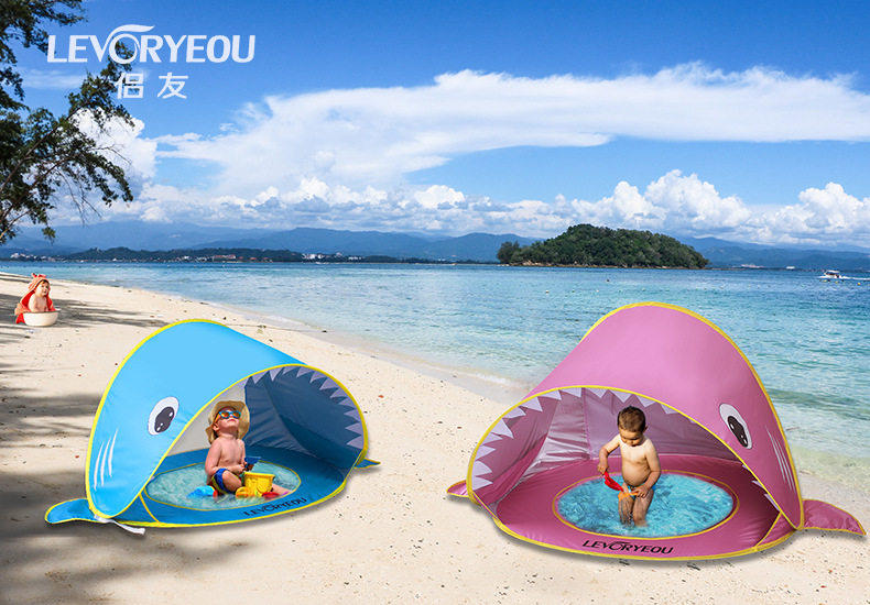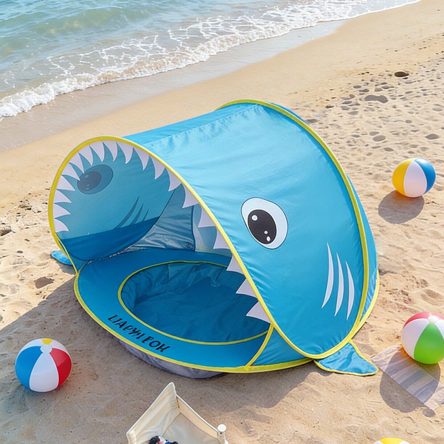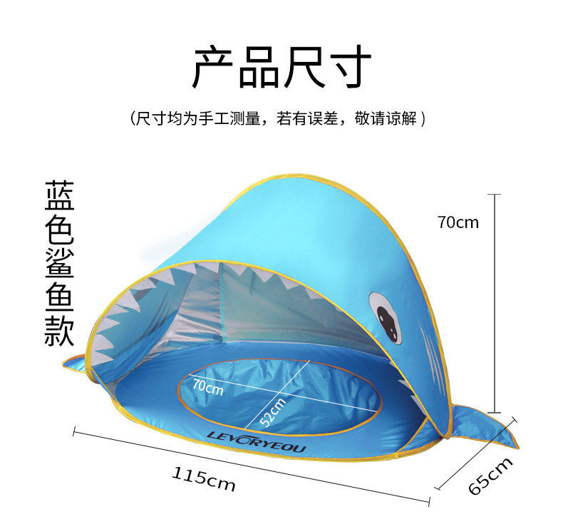 全自動速開兒童鯊魚帳篷沙灘海邊玩沙防曬遊戯屋可攜式棚防風