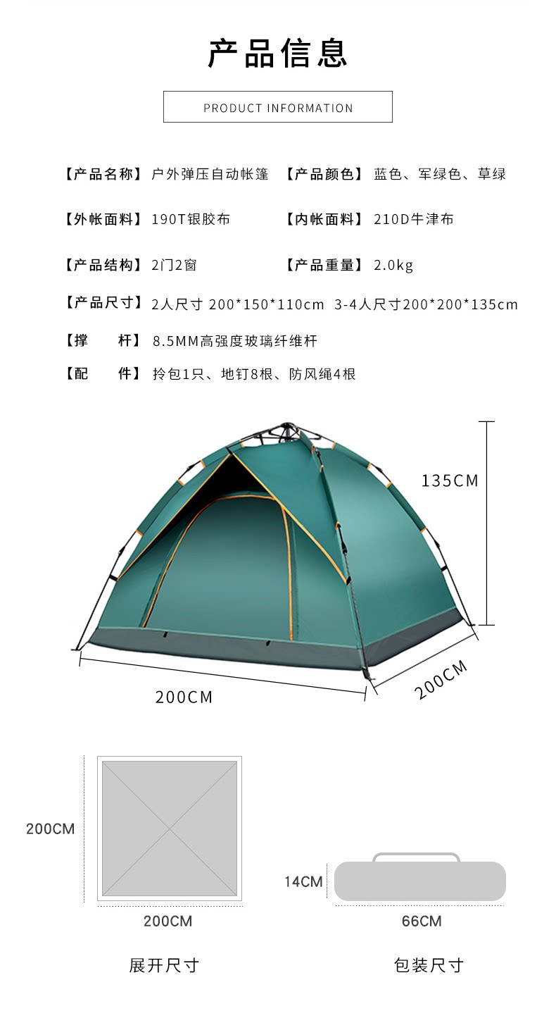 | 篷面尺寸 | 200*200*135CM |