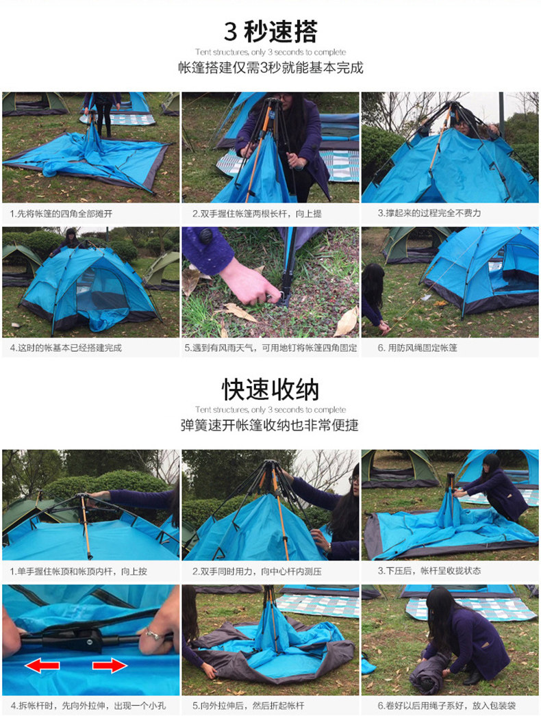 帳篷3-4人戶外 傘形彈壓速開野營加厚大型遮陽防曬可攜式露營裝備