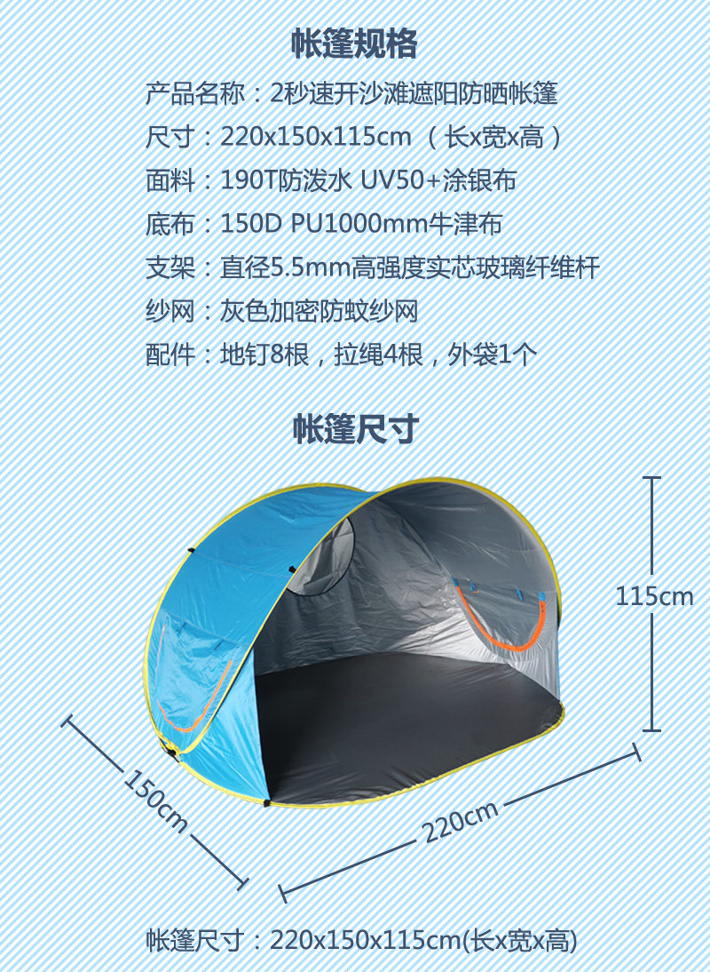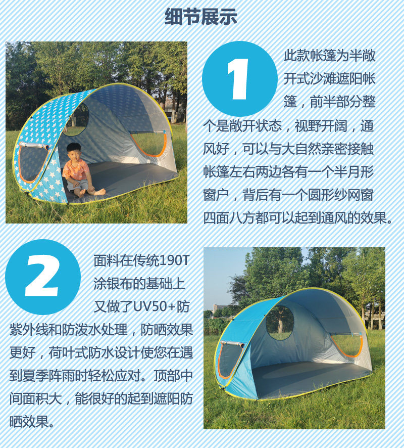1秒速開沙灘戶外2-4人簡易遮陽棚防曬防紫外線釣魚超輕全自動帳篷