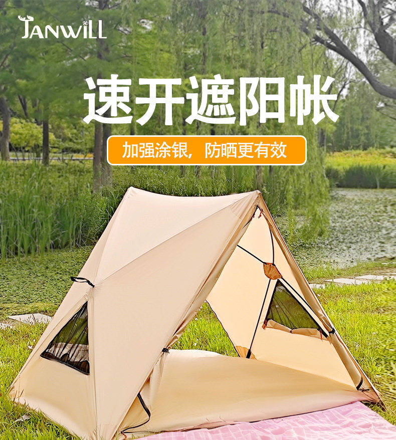 簡威帳篷戶外可攜式簡易三角帳篷折疊露營公園沙灘遮陽速開帳篷