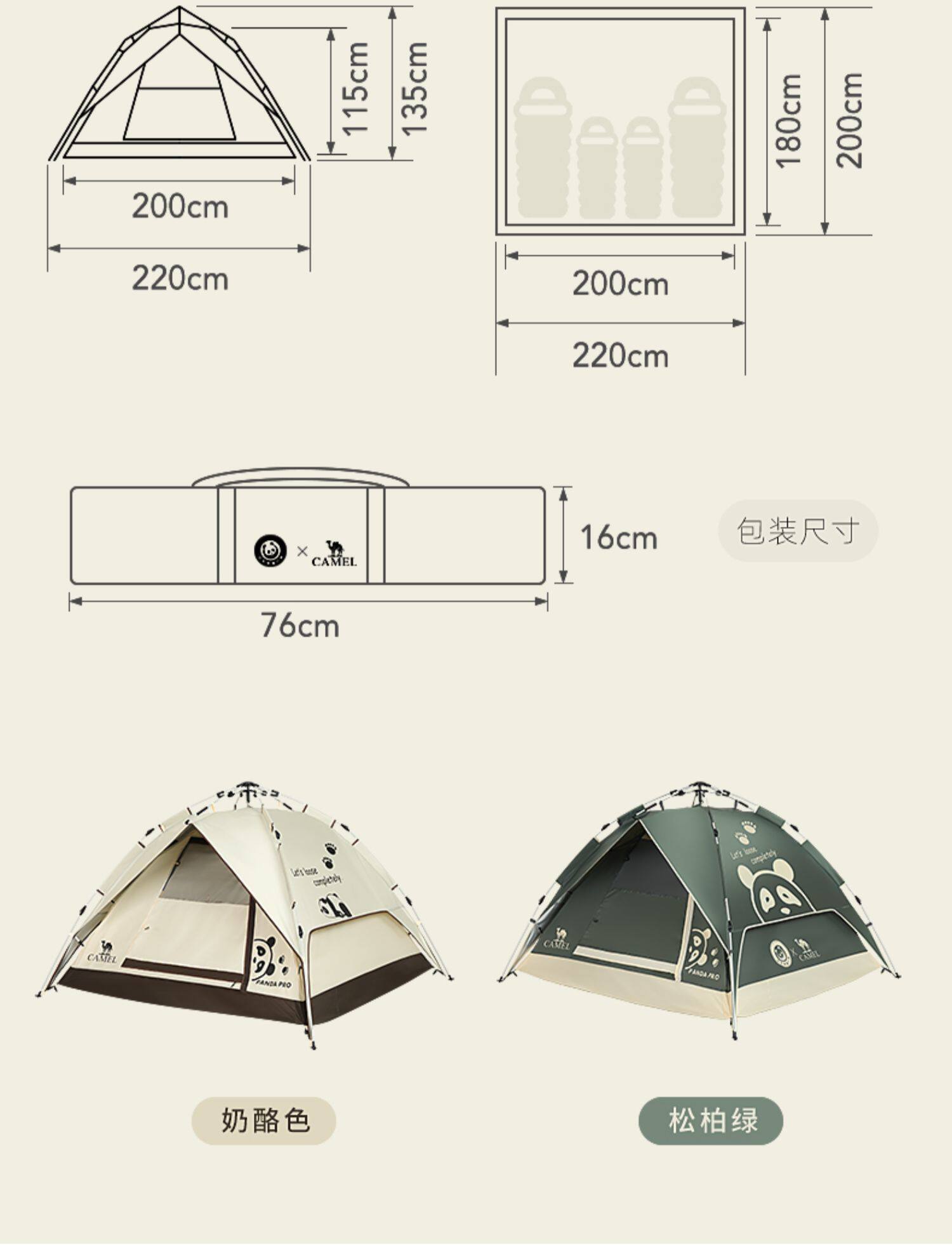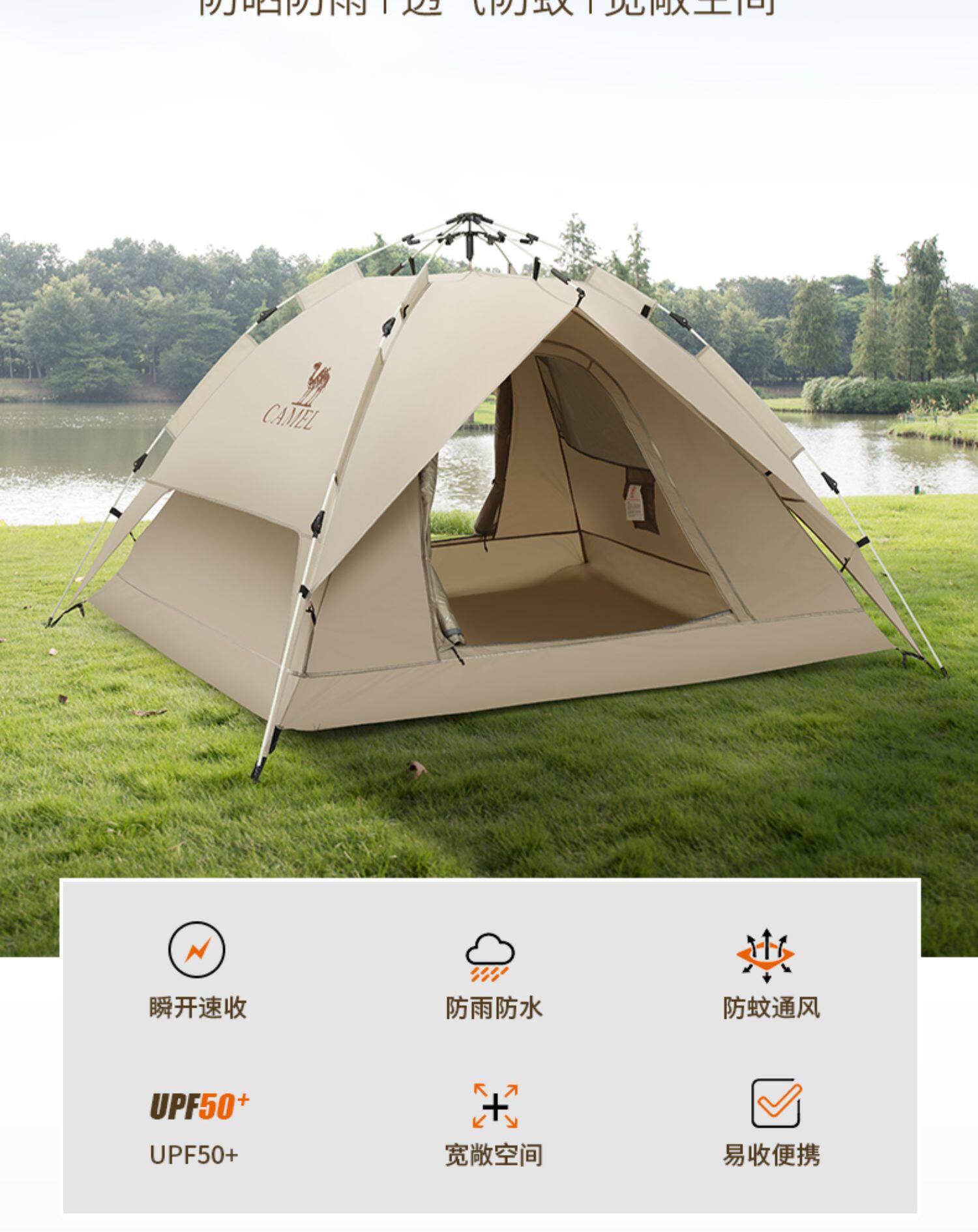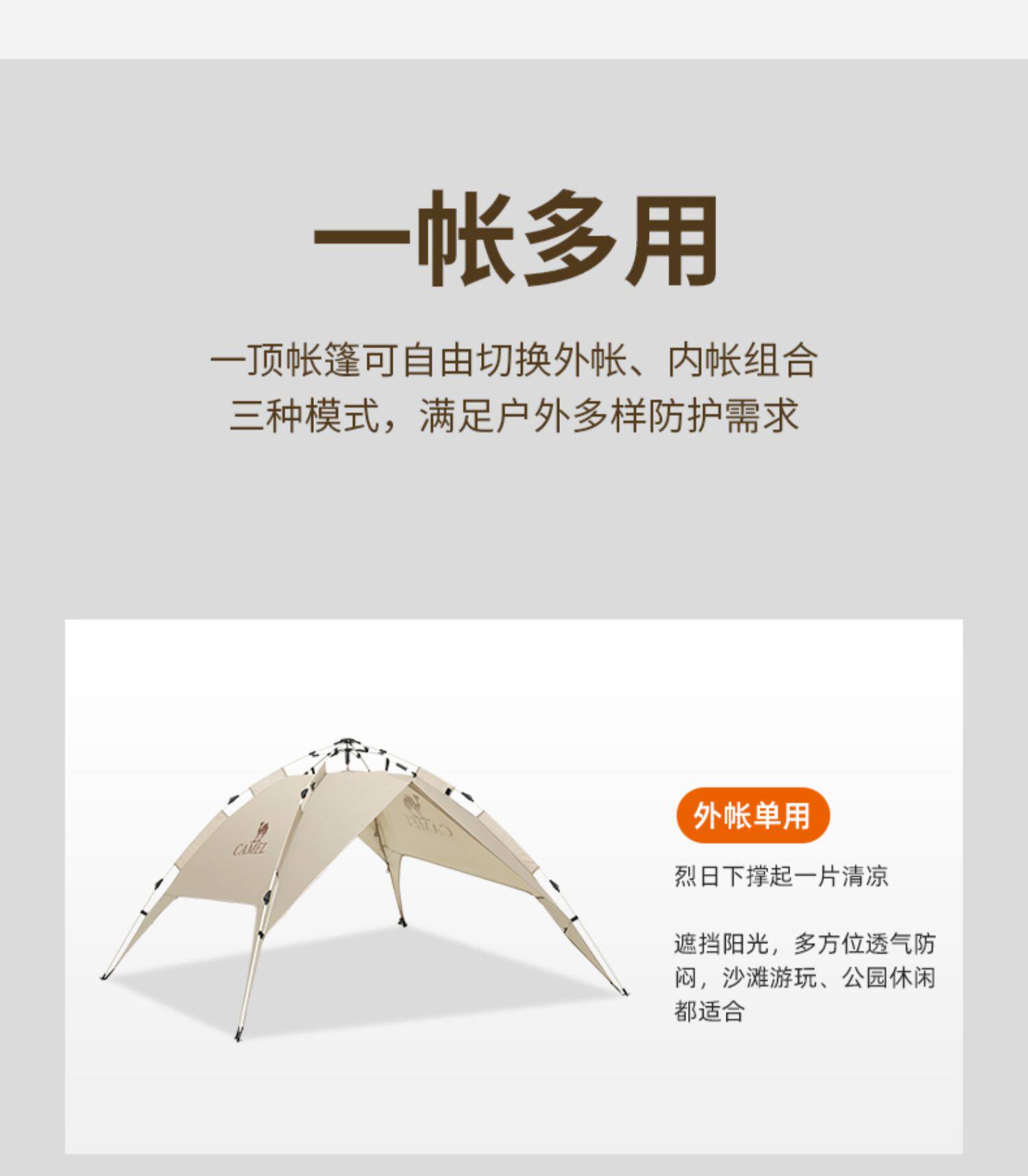 駱駝戶外帳篷防曬防雨可攜式全自動帳篷野營野餐公園露營防曬帳篷