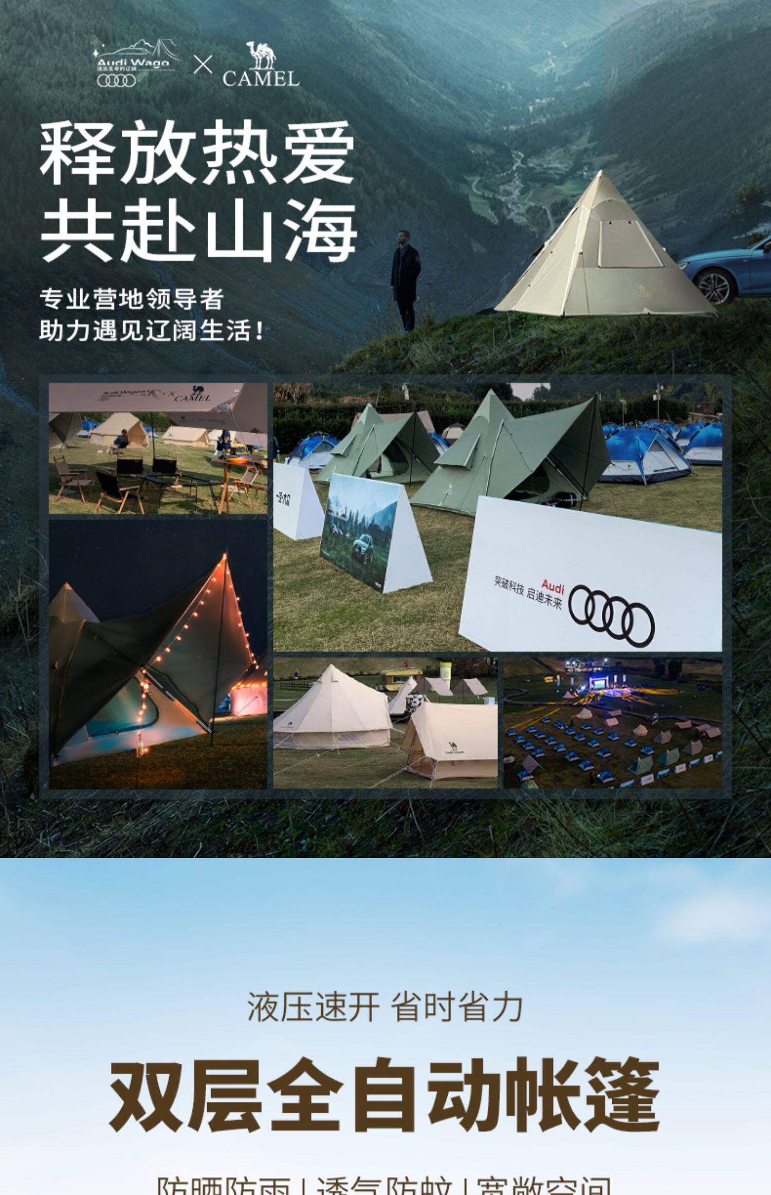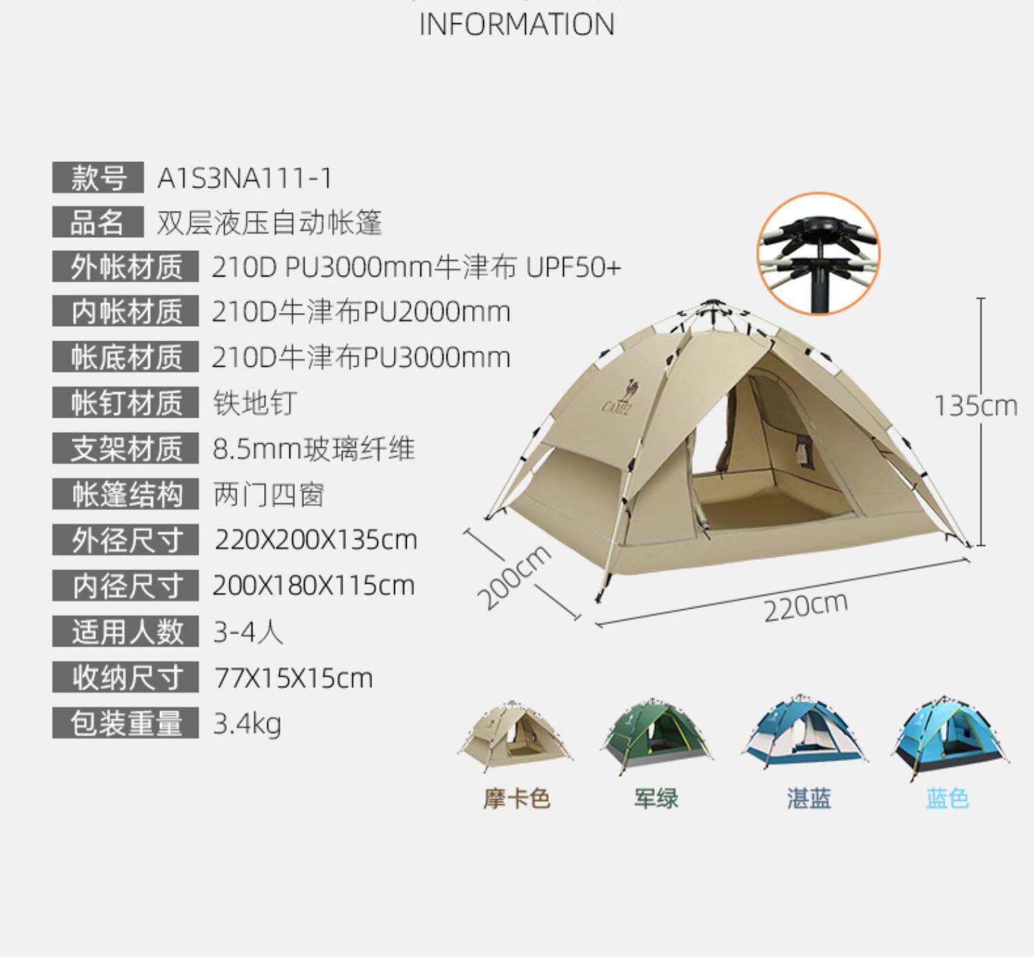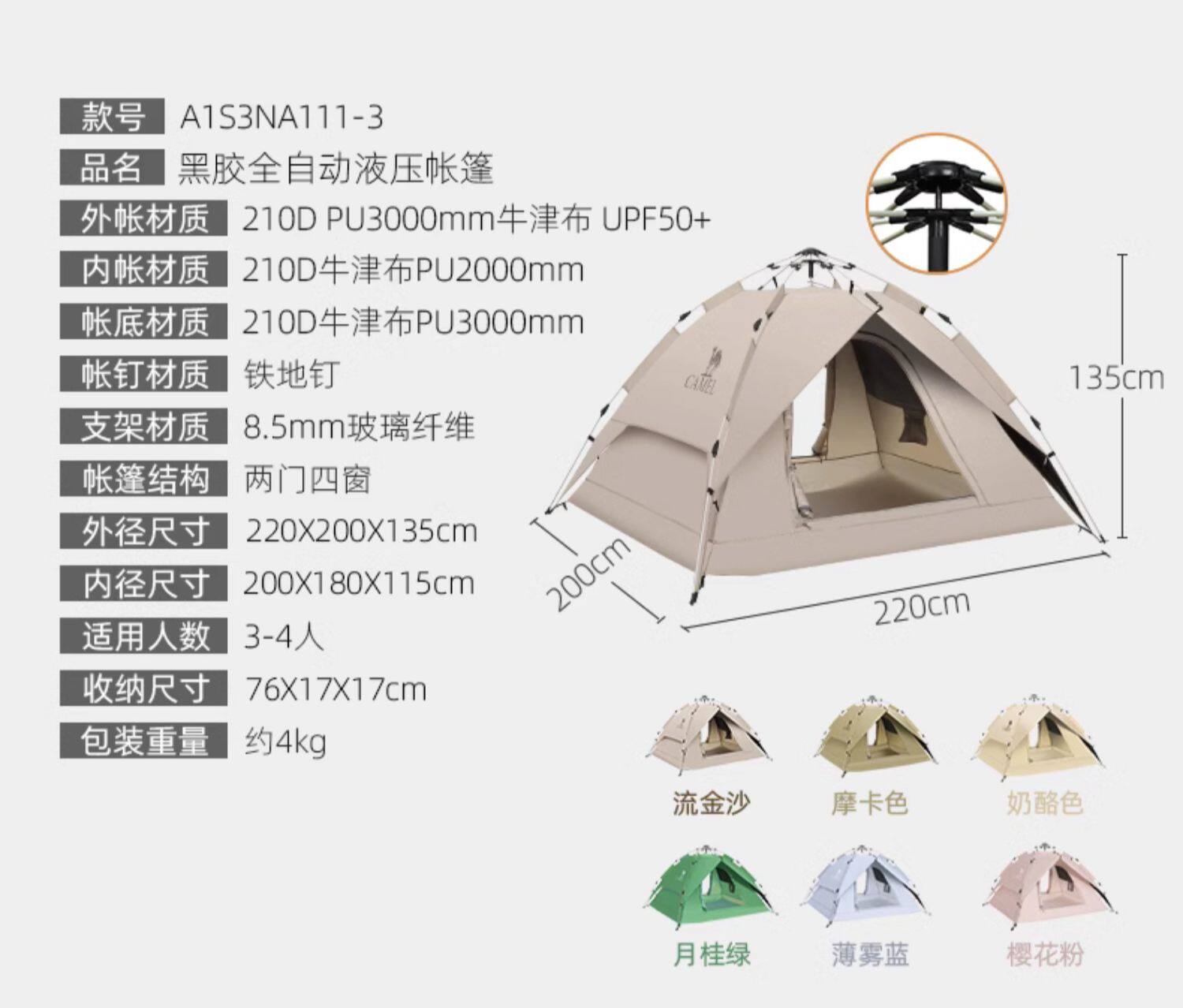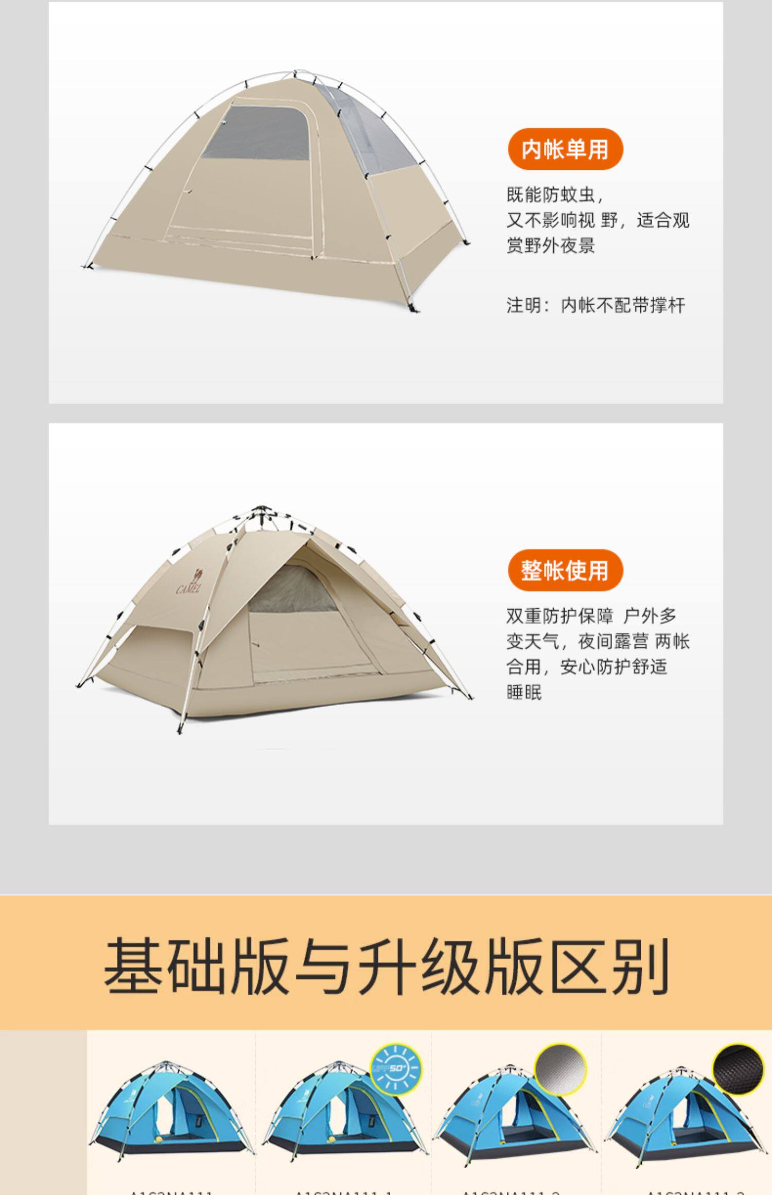 駱駝戶外帳篷防曬防雨可攜式全自動帳篷野營野餐公園露營防曬帳篷
