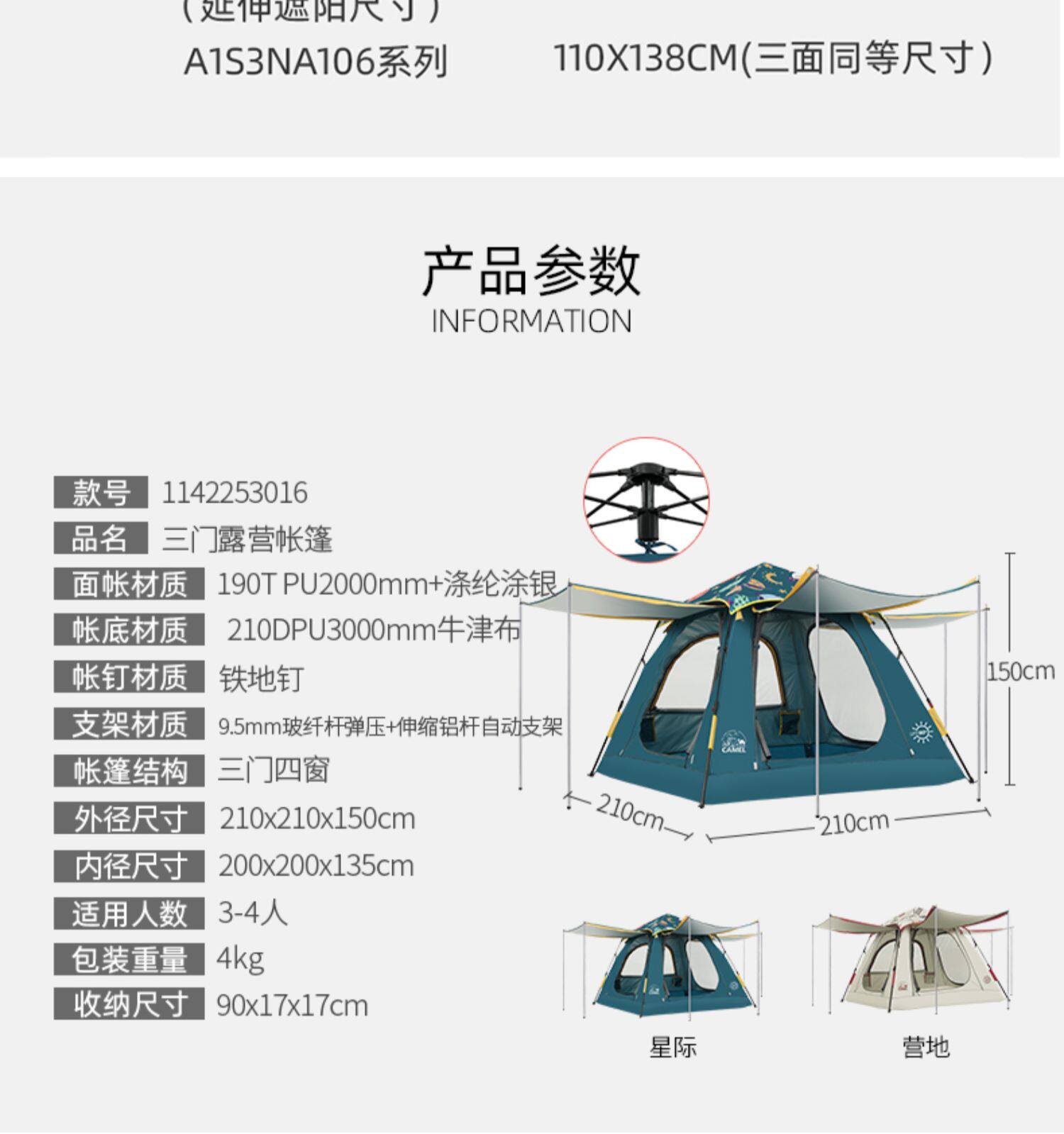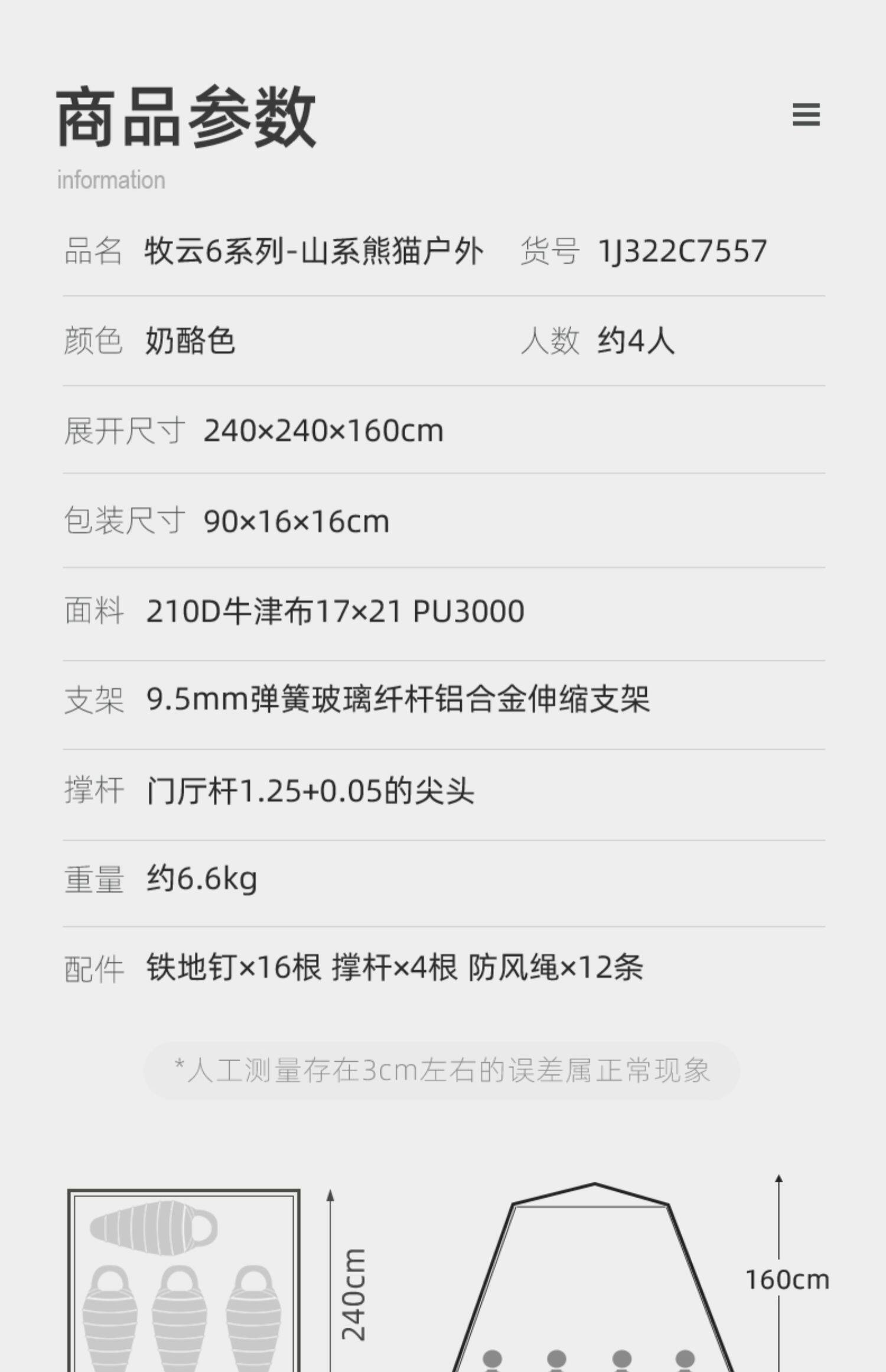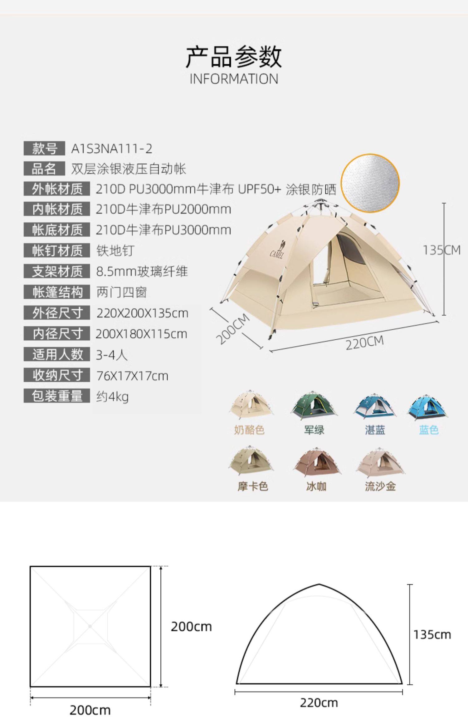 | 帳底材質 | 210D牛津布PU3000mm |