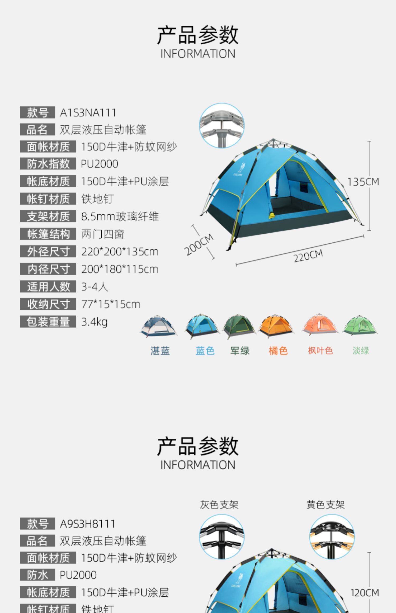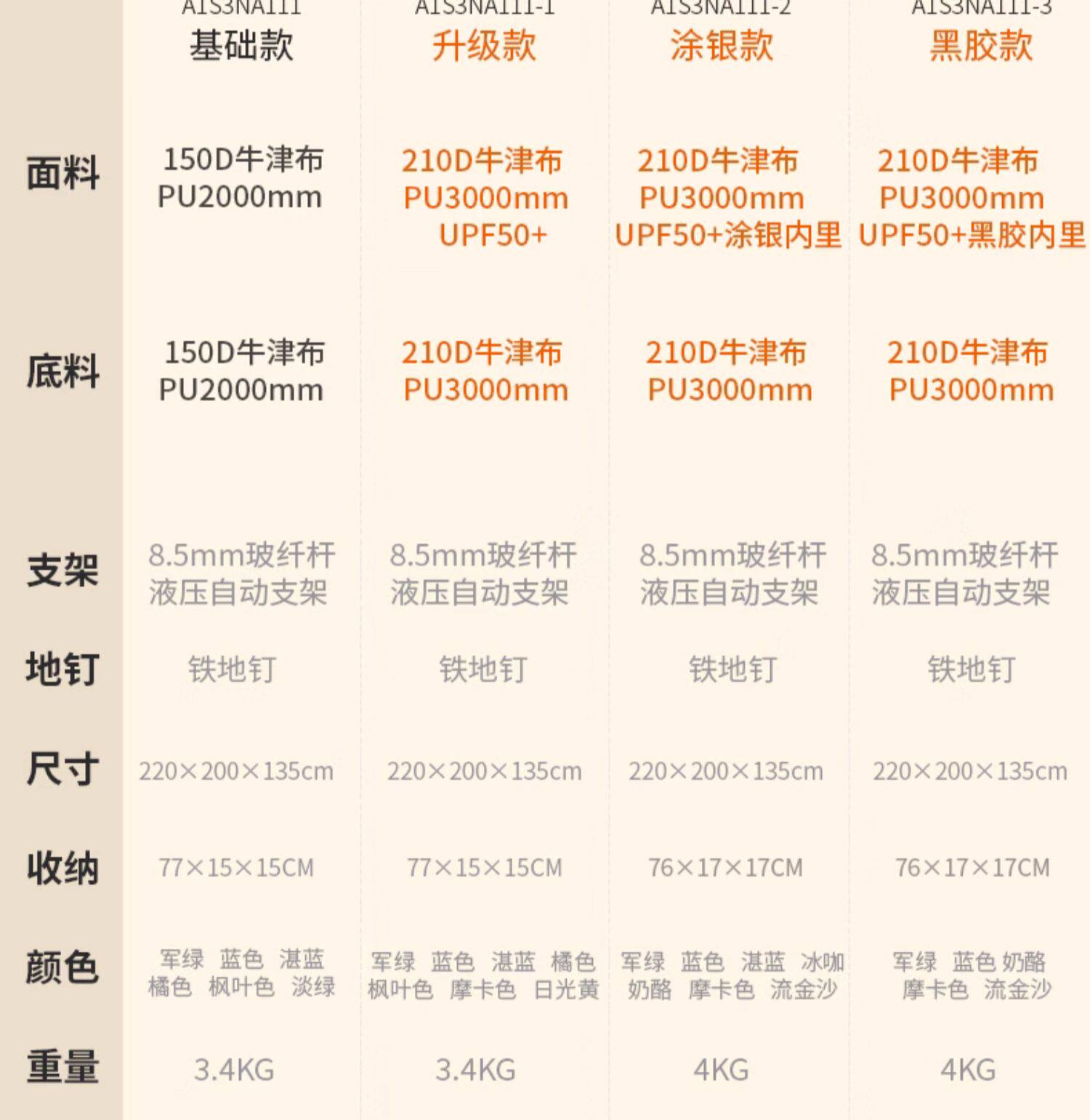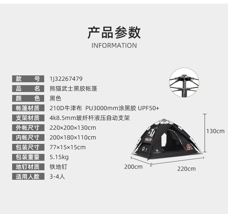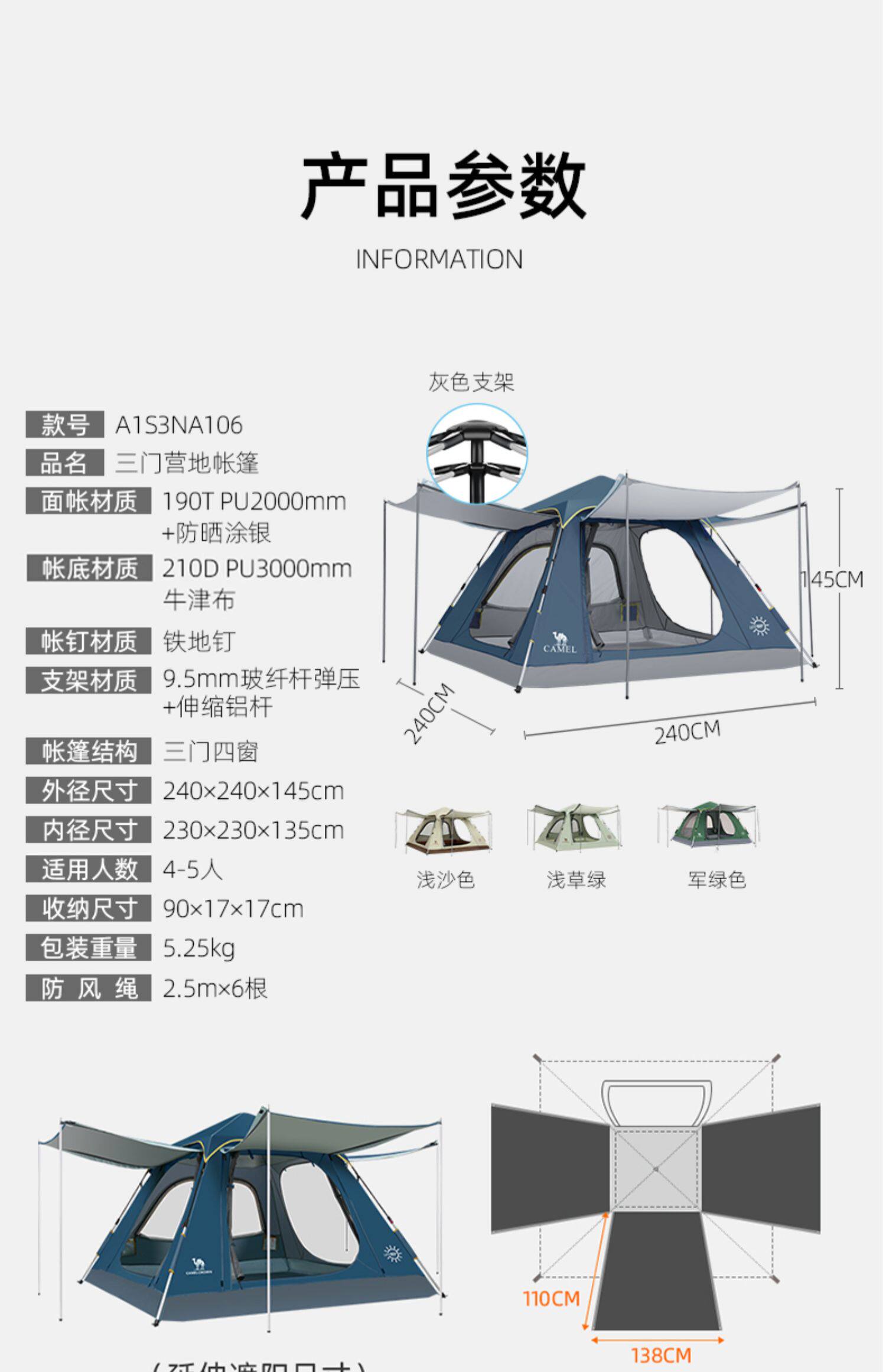 | 帳底材質 | 210D牛津布PU3000mm |