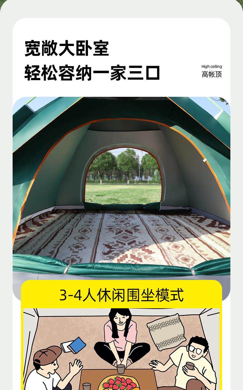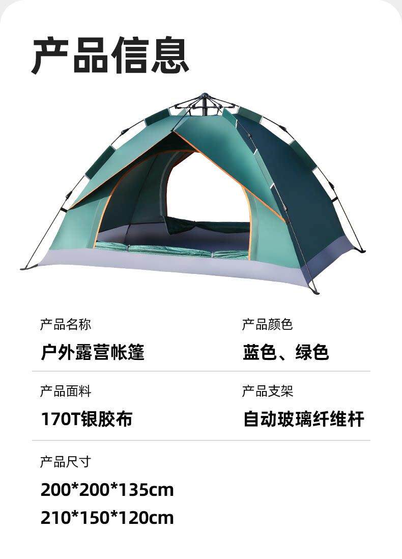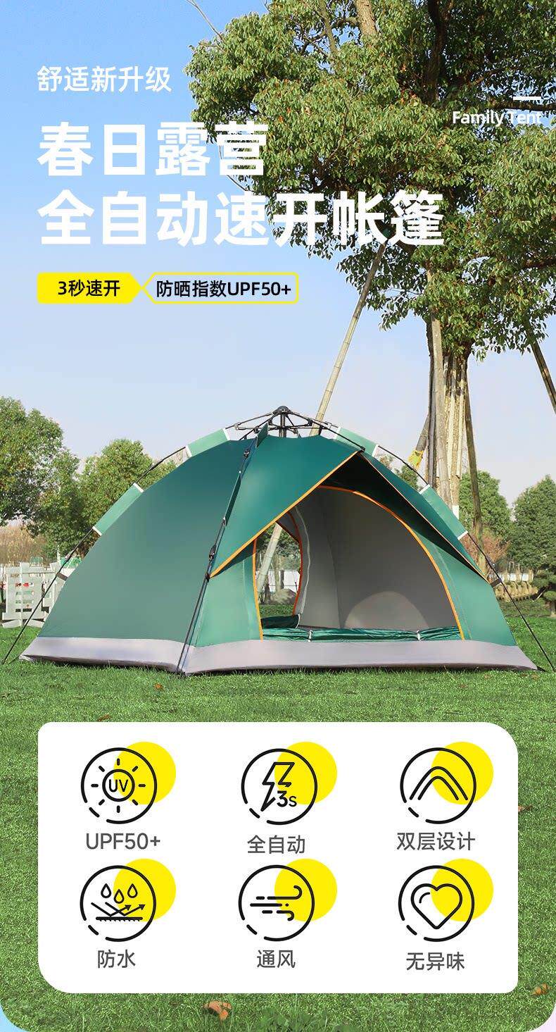 露營帳篷帳篷戶外全自動3-4人沙灘速開折疊野營雙人防雨可攜式露