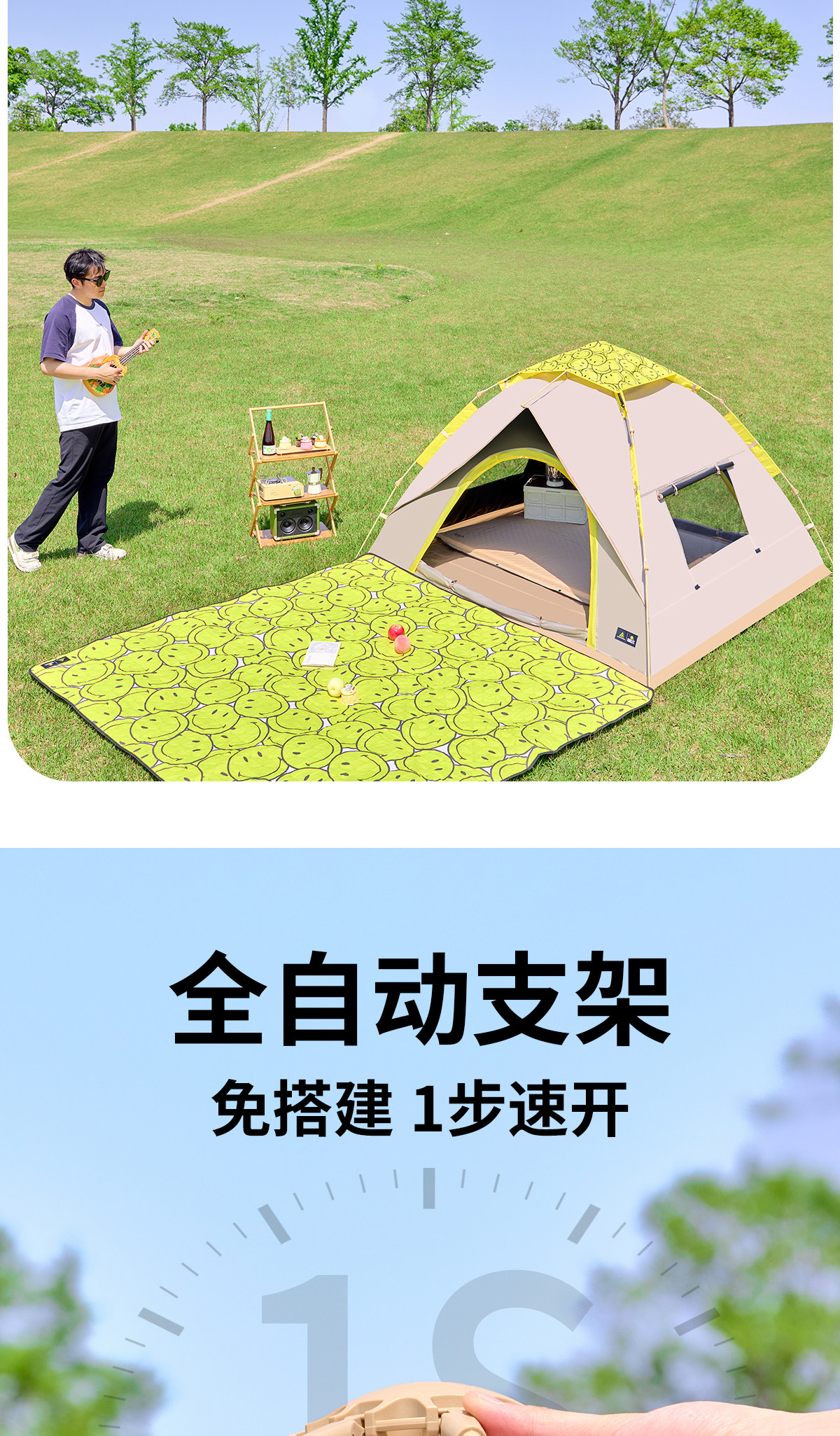 錯山笑臉聯名款帳篷戶外可攜式折疊露營裝備全套野營過夜自動速開