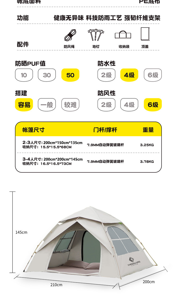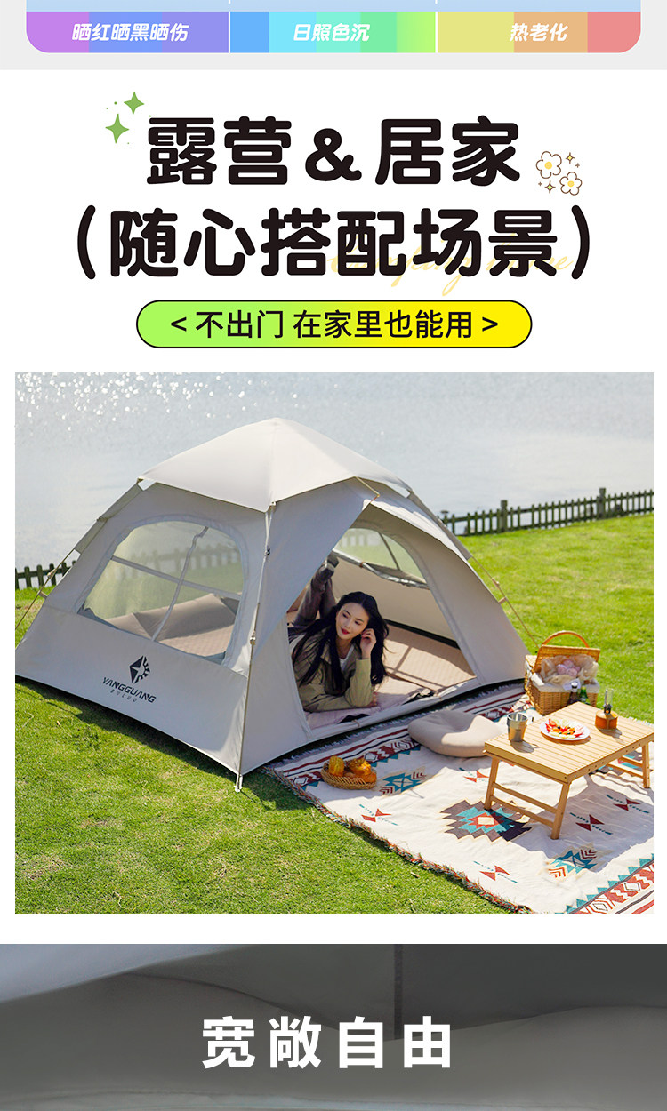 陽光部落露營帳篷戶外野營過夜可攜式折疊全自動速開防雨加厚野外