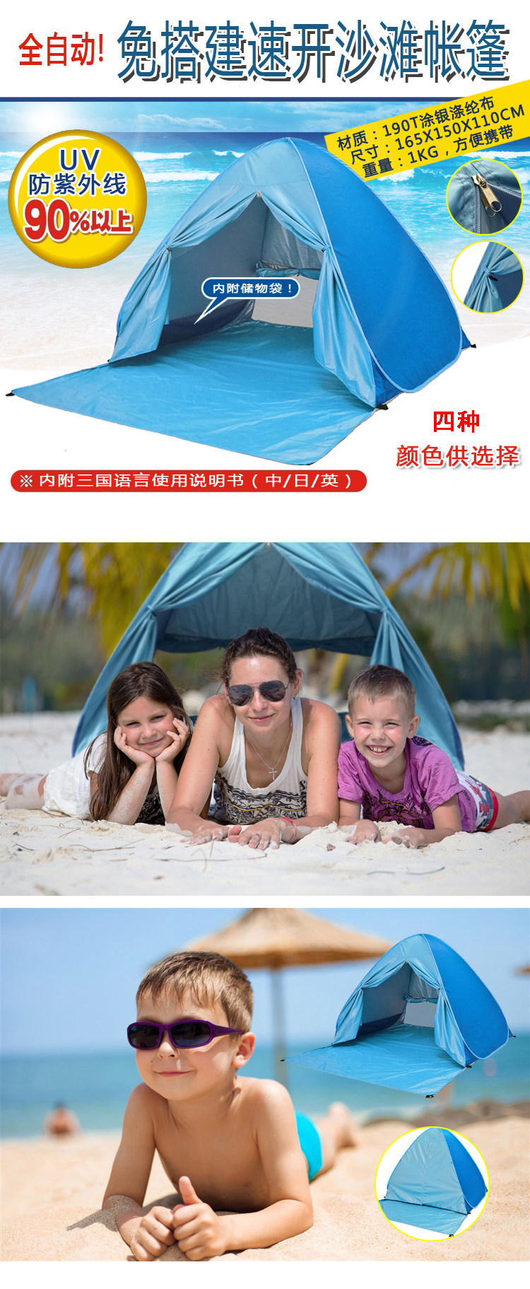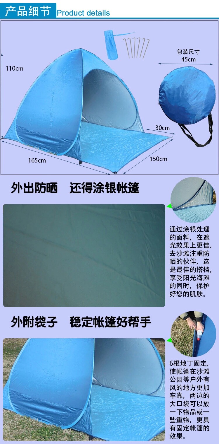 帳篷戶外海邊沙灘遮陽全自動速開兒童釣魚野營野餐露營簡易棚可攜式
