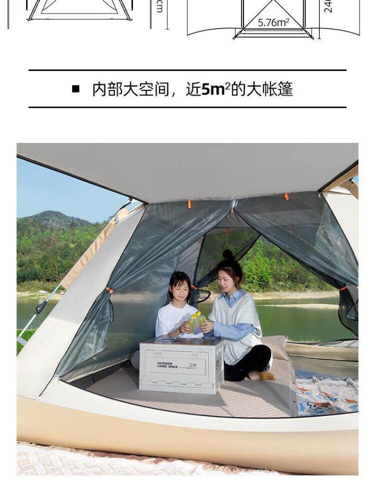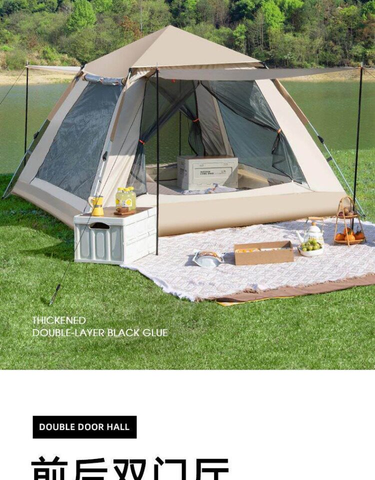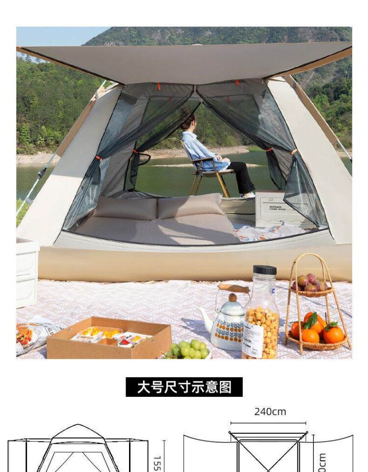 戶外露營過夜帳篷加厚防雨折疊式可攜式速開全天幕裝備野營速開帳篷