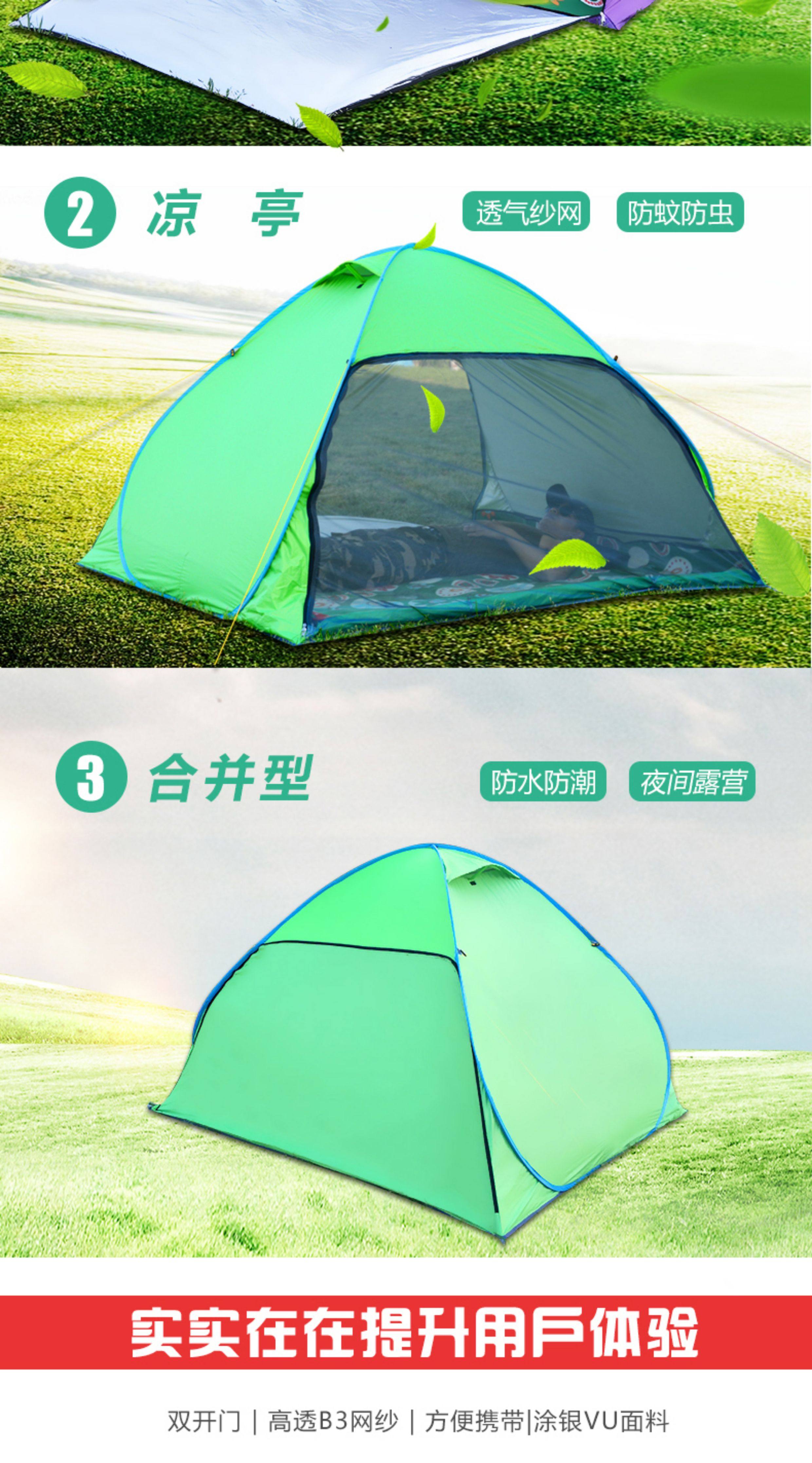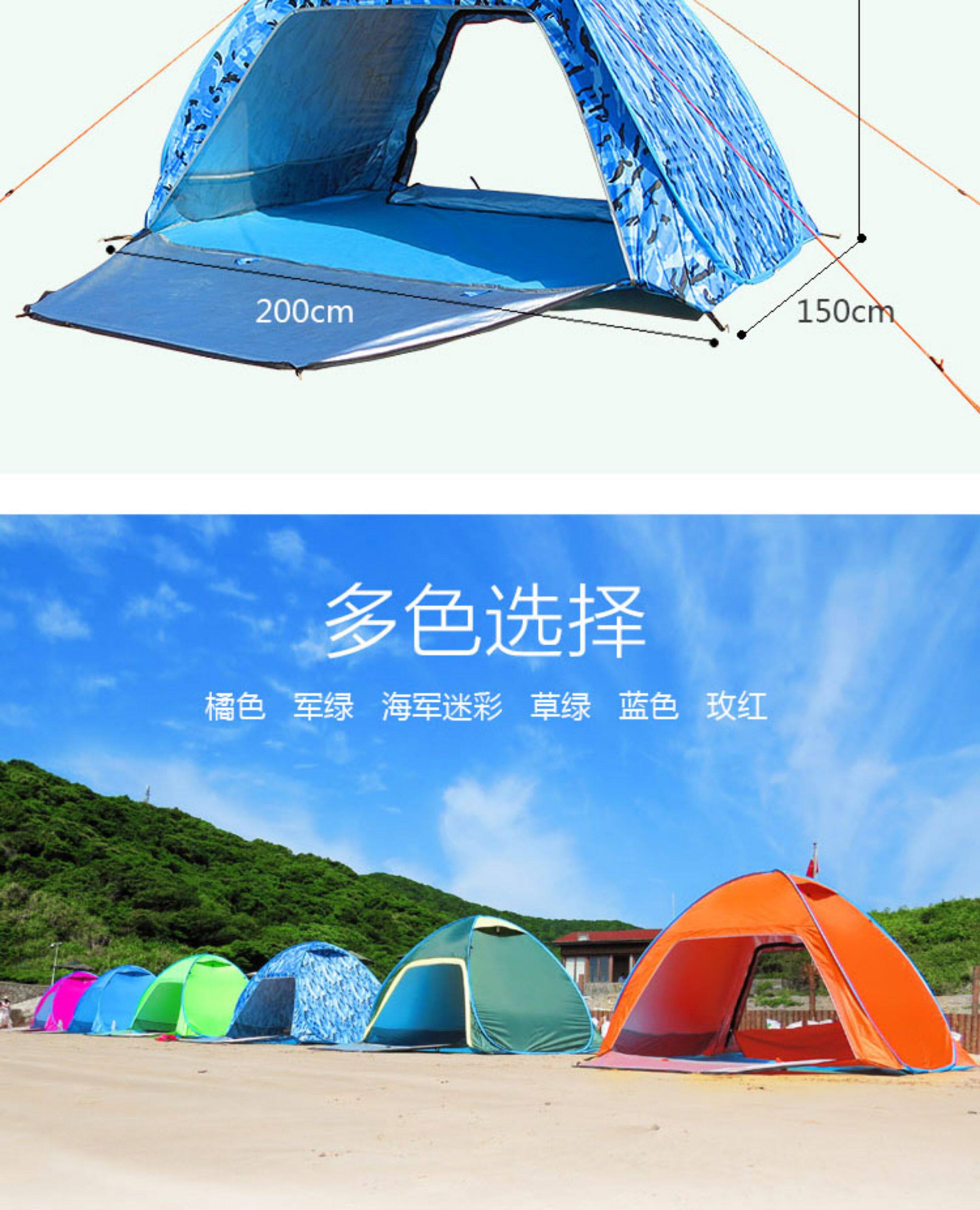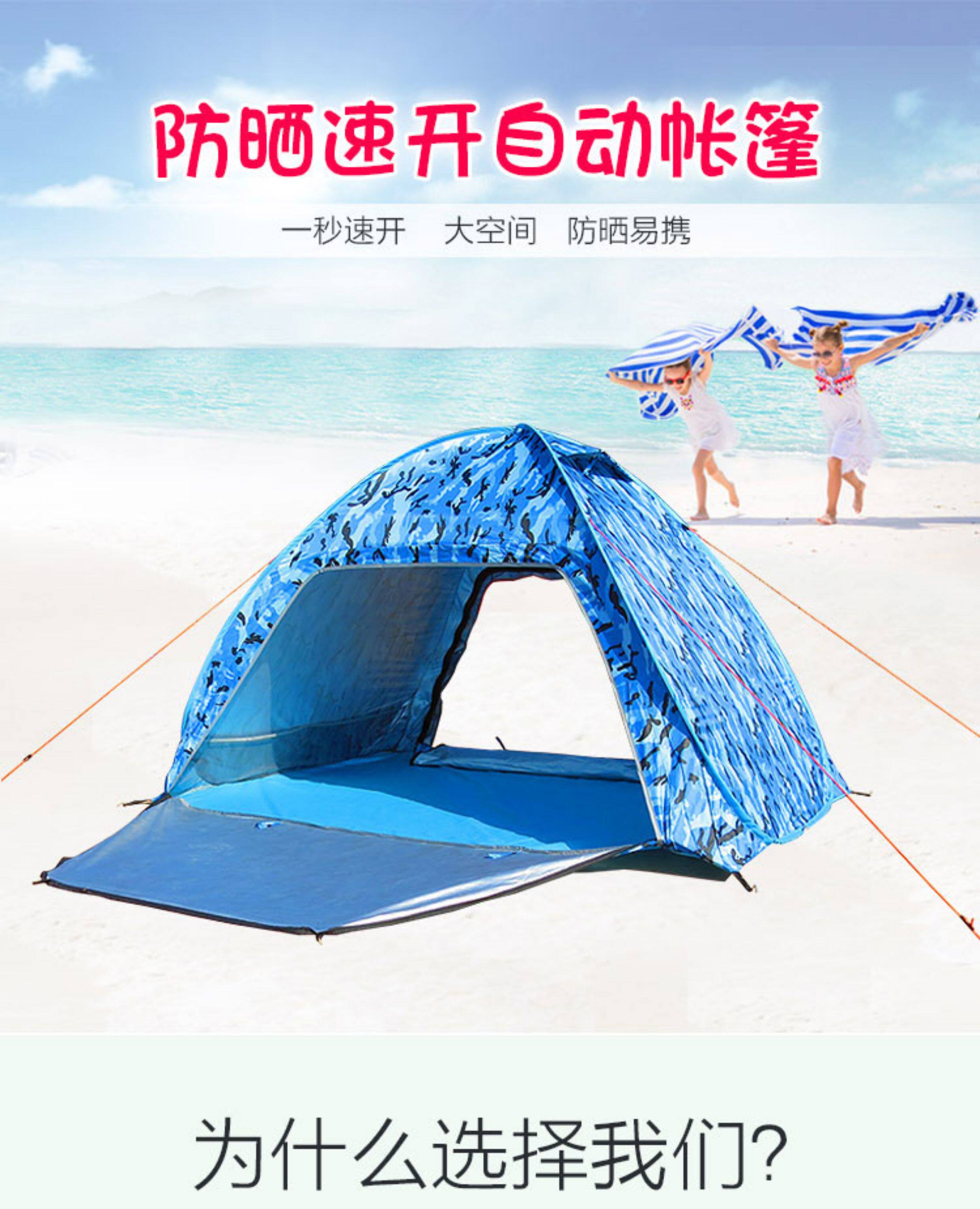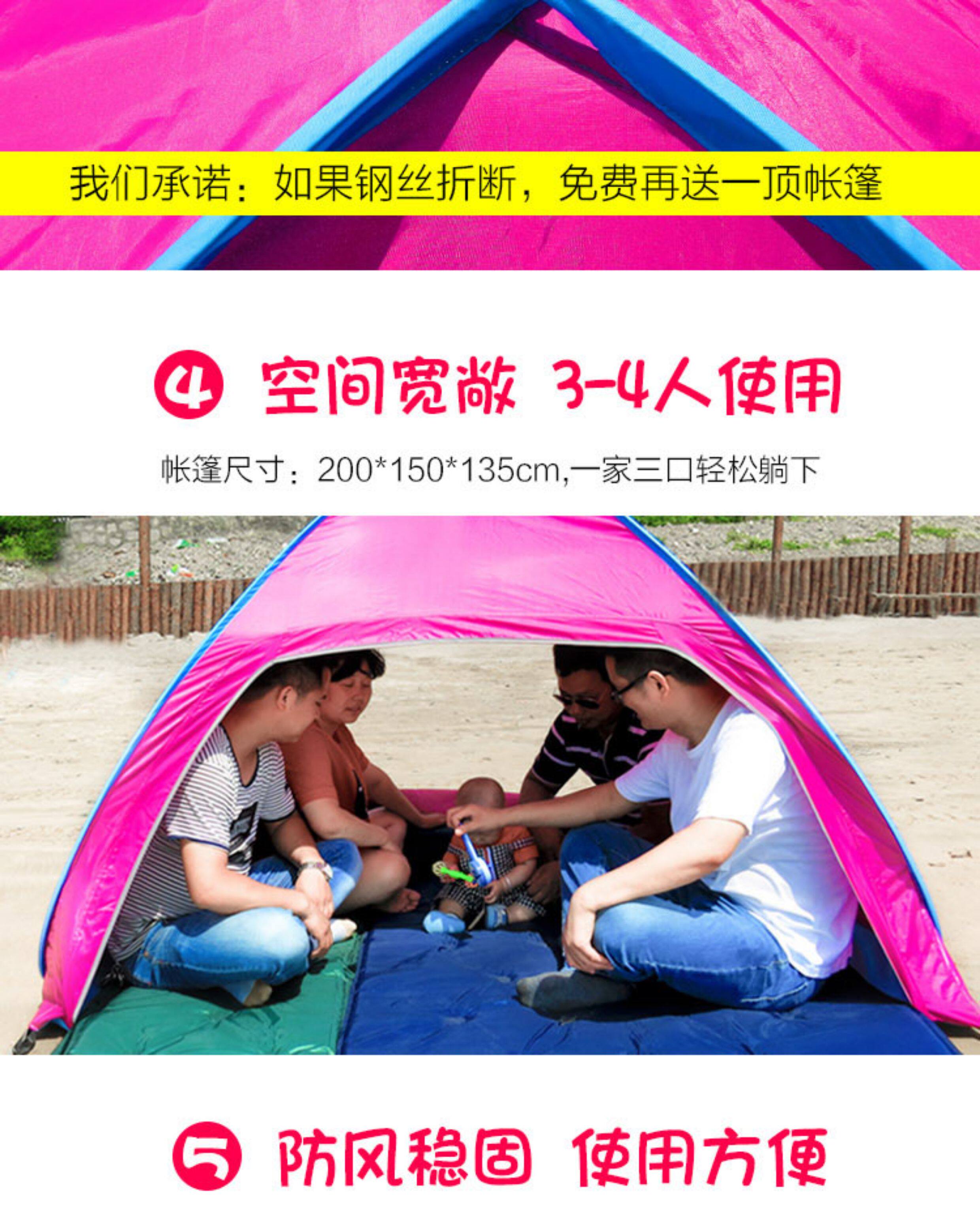 行拓戶外3-4人全自動速開防曬防風雨野外雙人免搭建沙灘露營帳篷