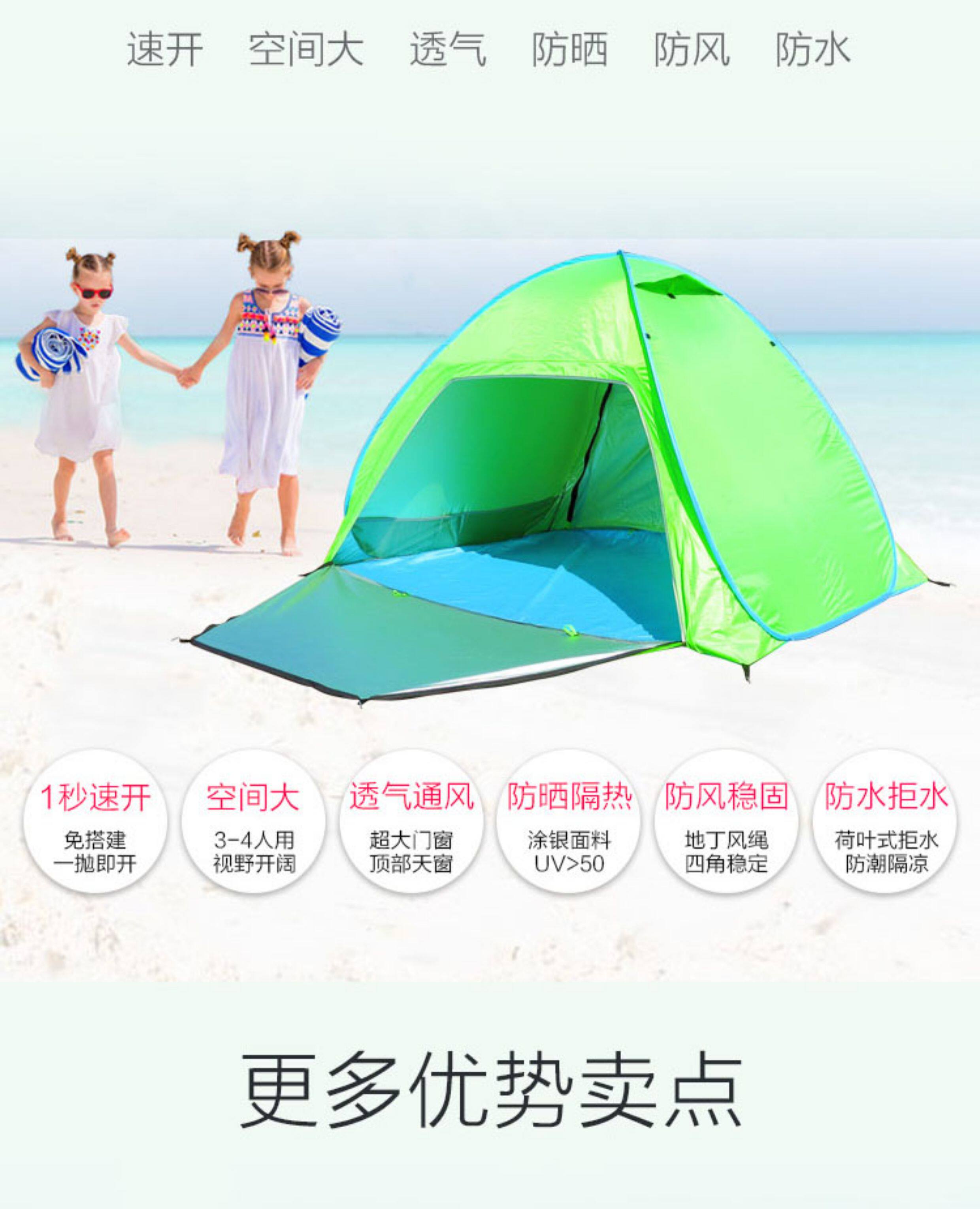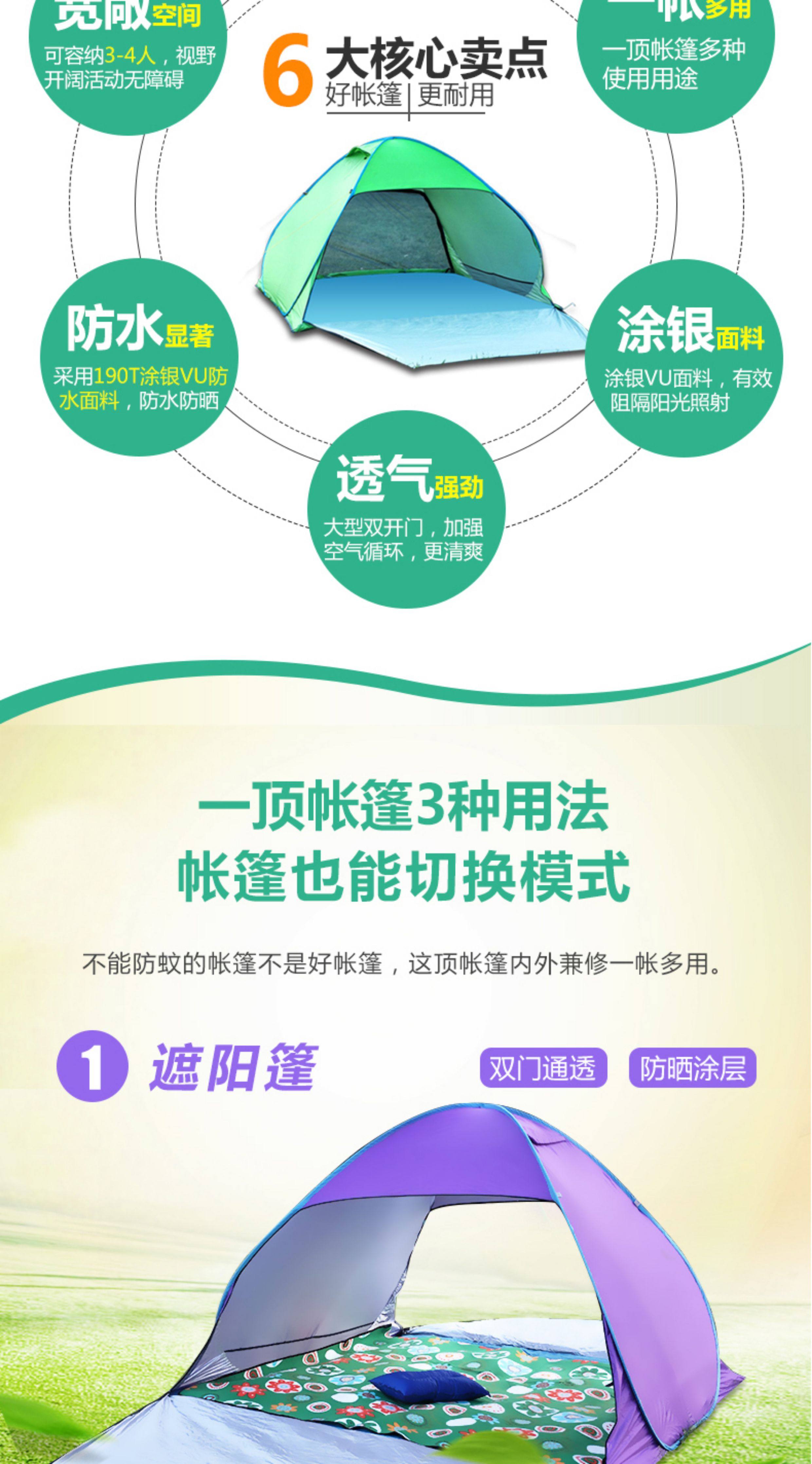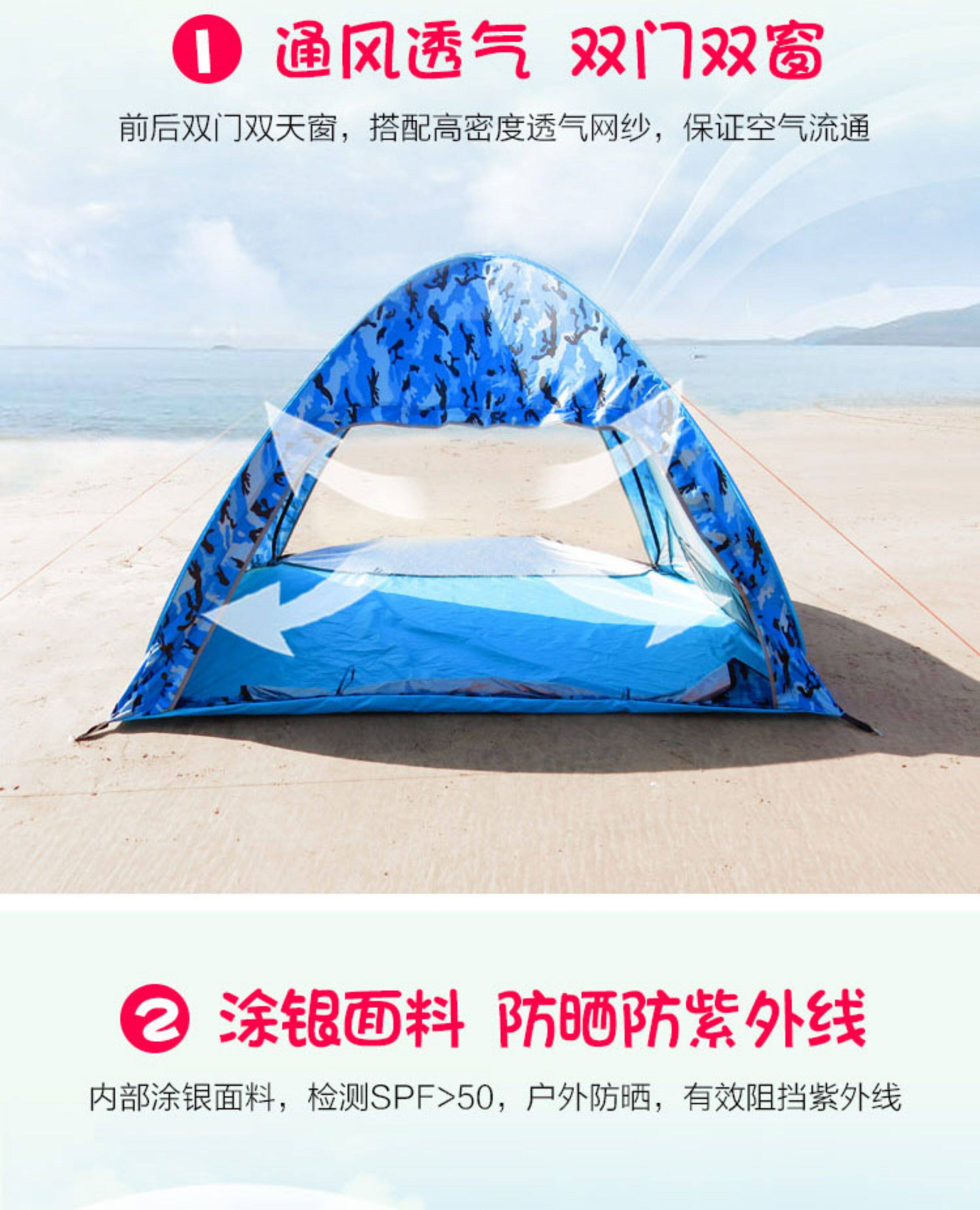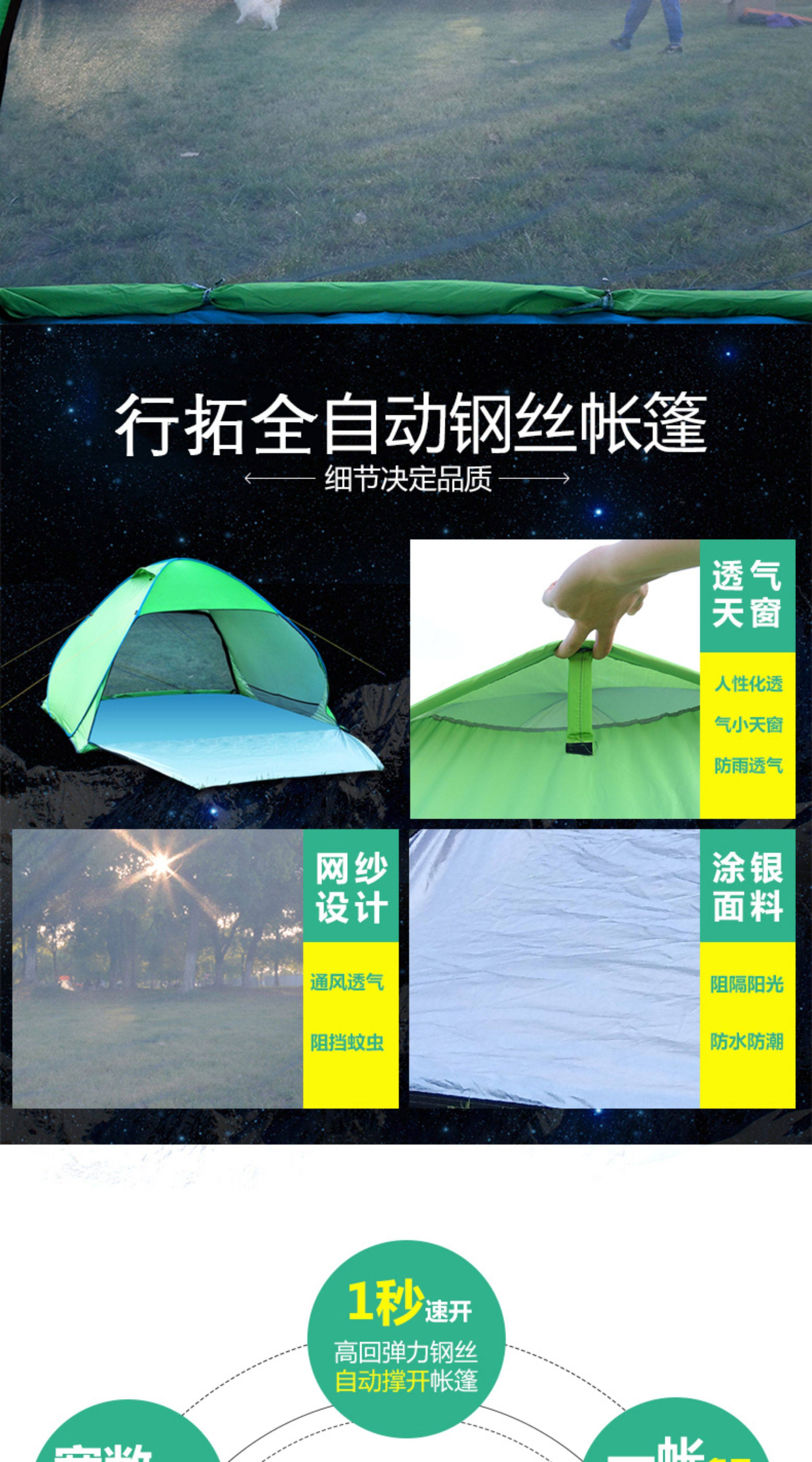 行拓戶外3-4人全自動速開防曬防風雨野外雙人免搭建沙灘露營帳篷