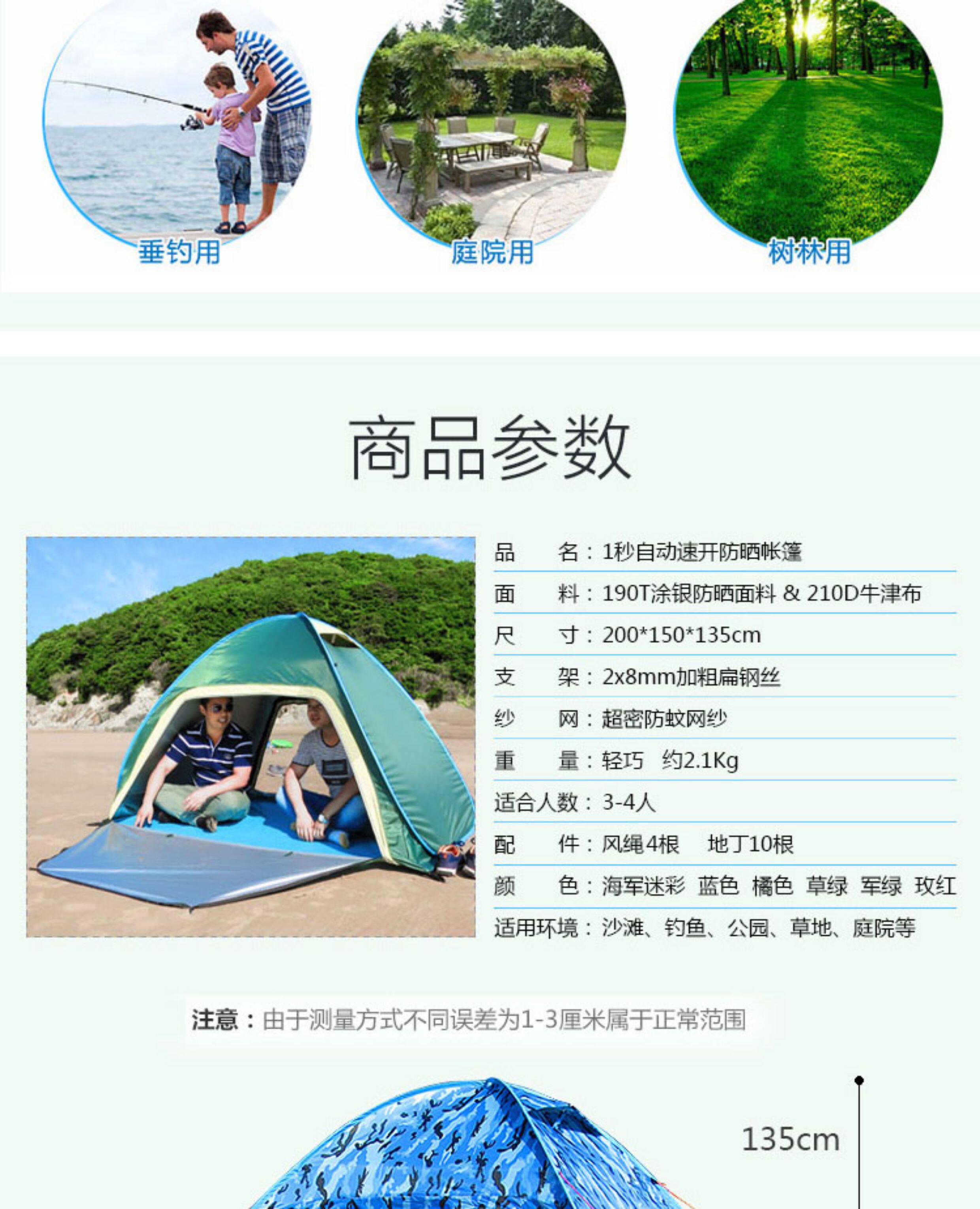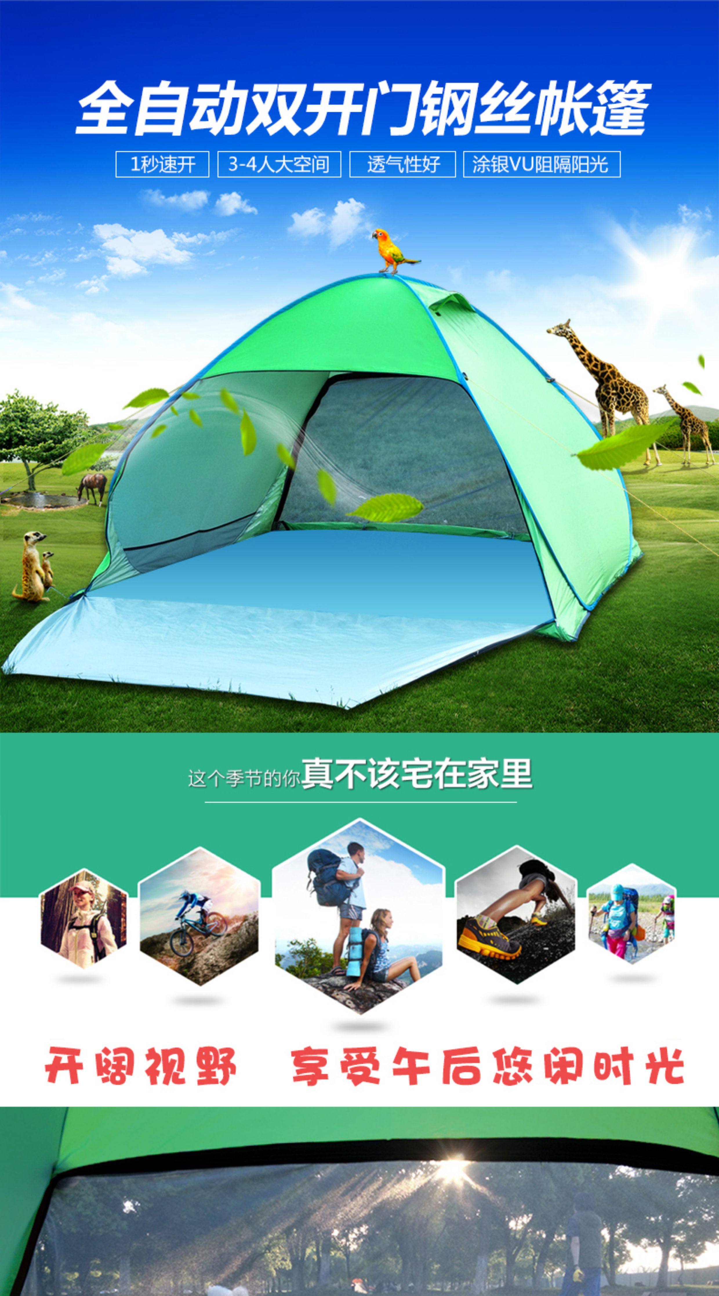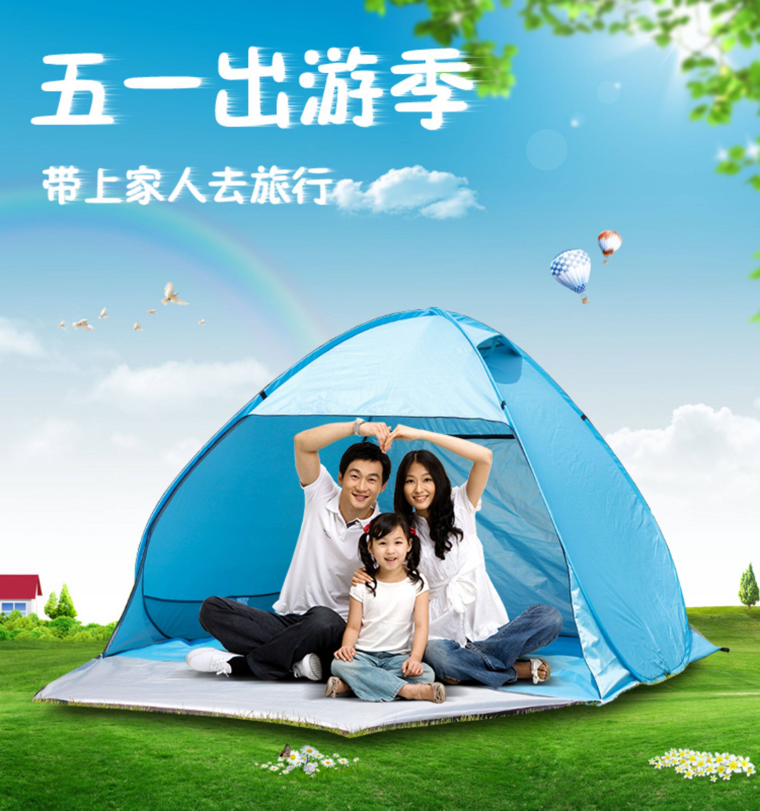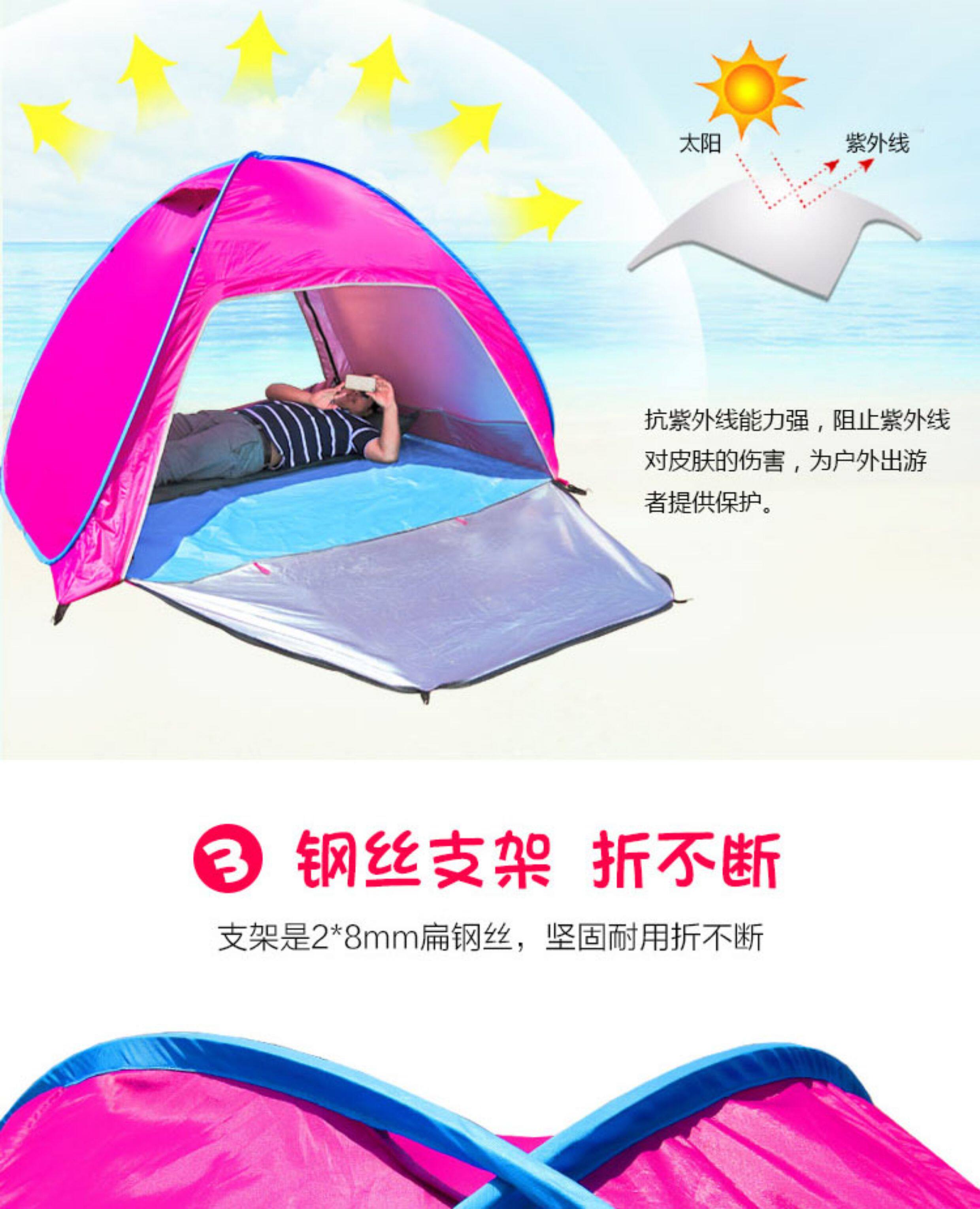 行拓戶外3-4人全自動速開防曬防風雨野外雙人免搭建沙灘露營帳篷