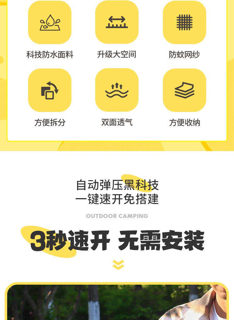 2025新款高級2-3人露營帳篷可攜式折疊野炊郊遊公園速開戶外草坪