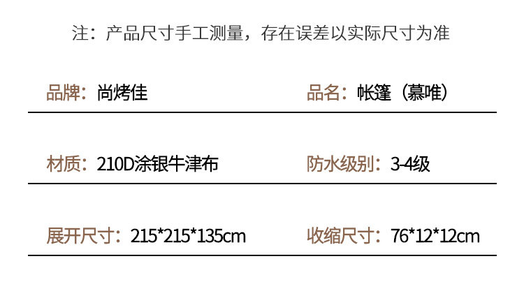 | 帳底材質 | 210D塗銀牛津布 |