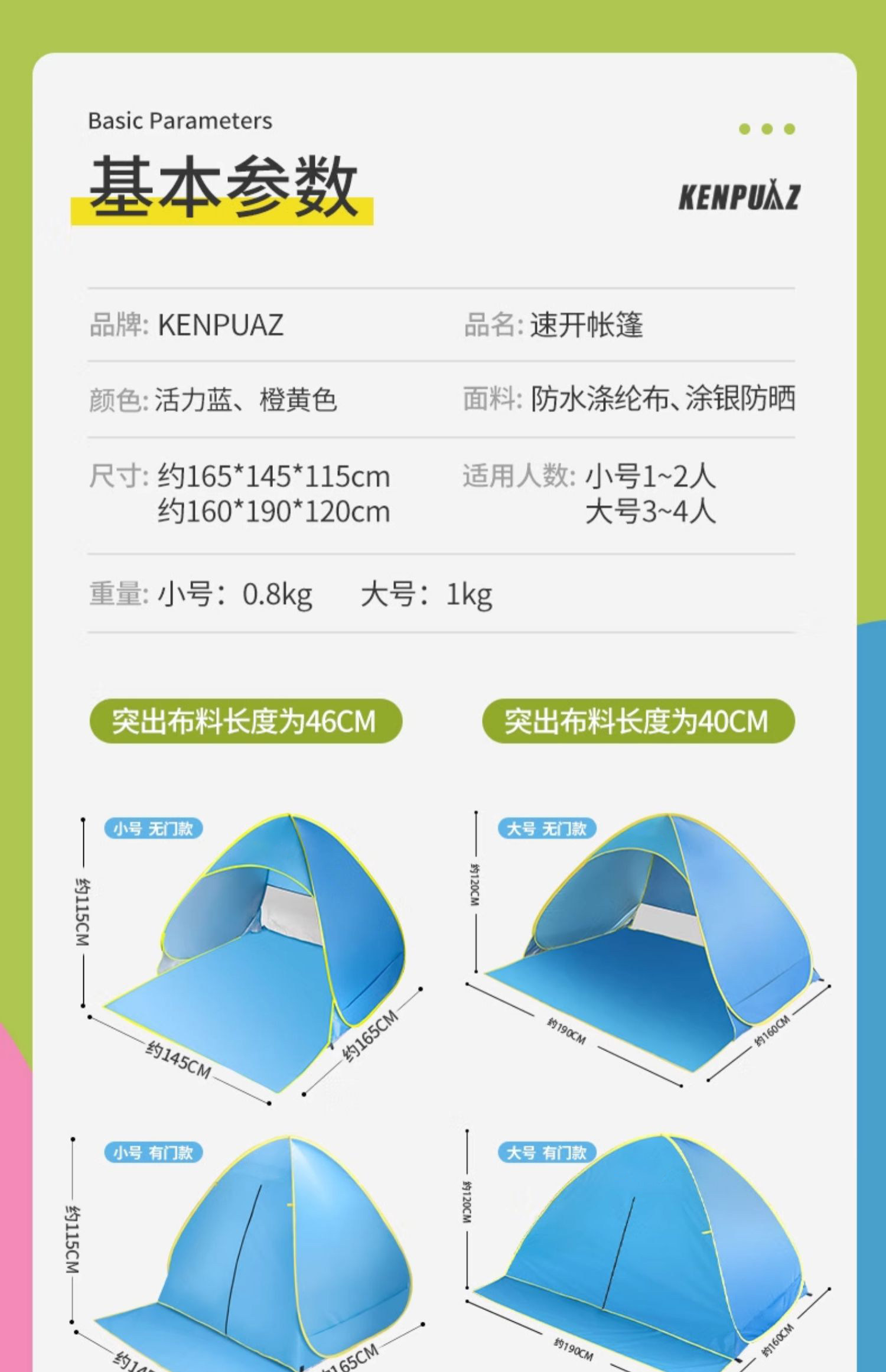 春遊小帳篷一鍵開合可攜式全自動速開戶外折疊公園野餐露營簡易