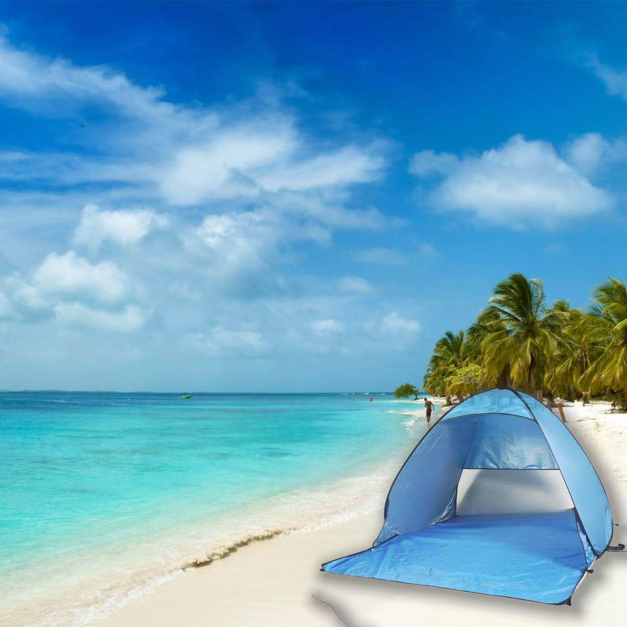 戶外沙灘帳篷藍色雙人八字帳全自動速開露營沙灘遮陽折疊野營帳篷