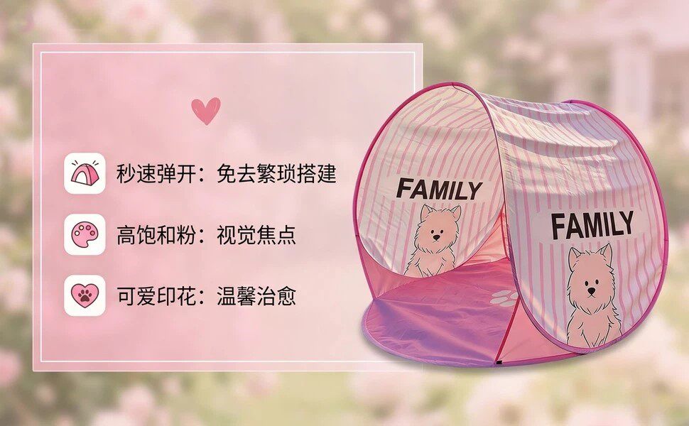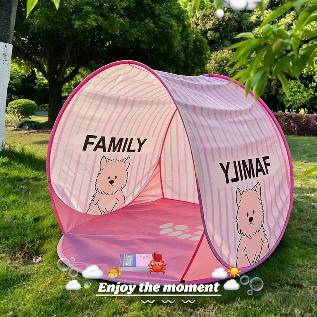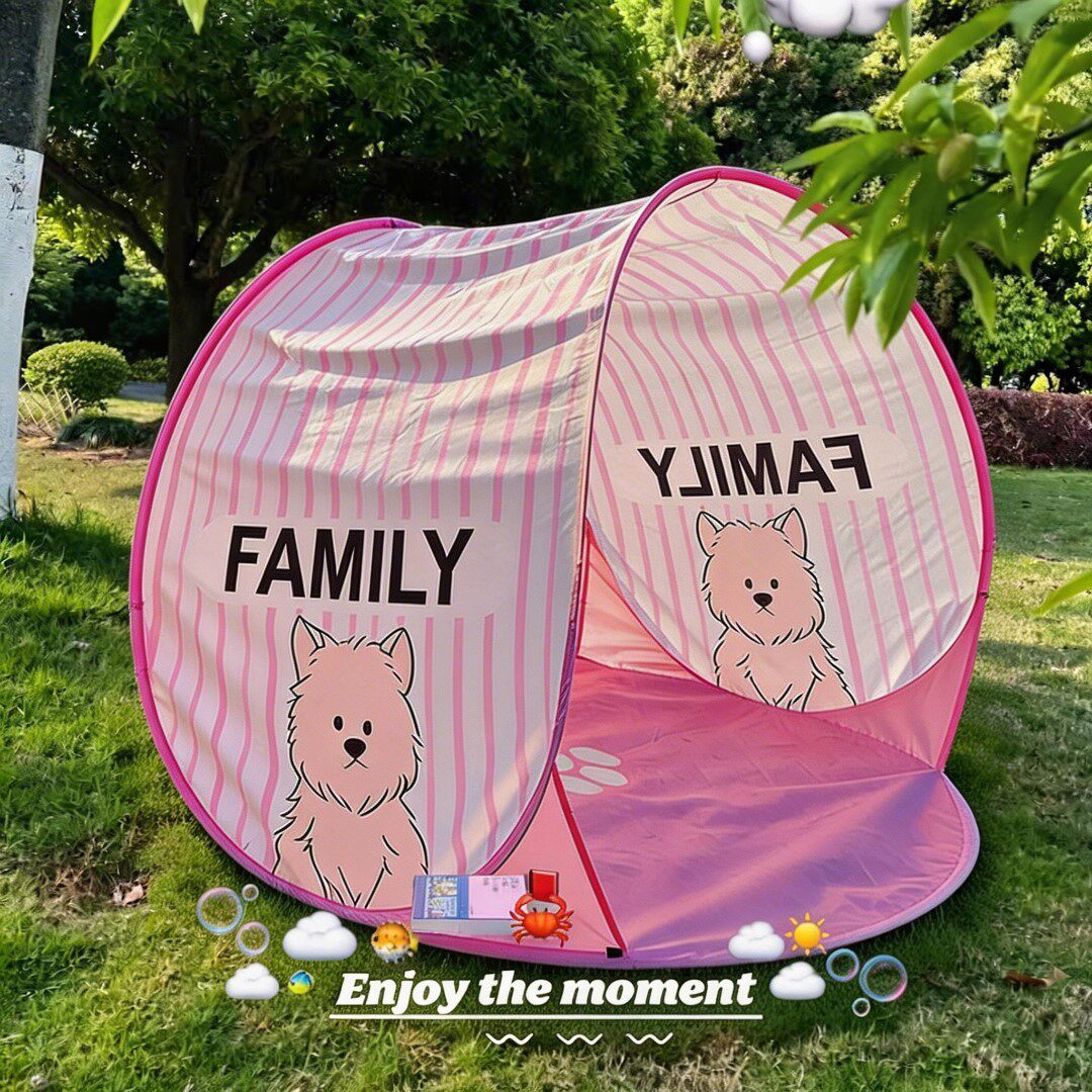 粉色小狗條紋帳篷戶外可攜式折疊露營免搭建防雨加厚春遊遮陽帳篷