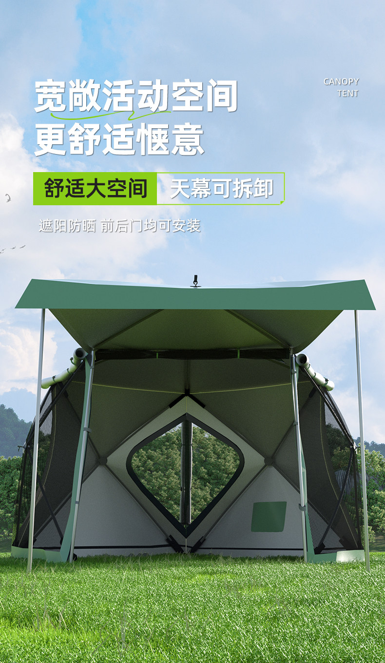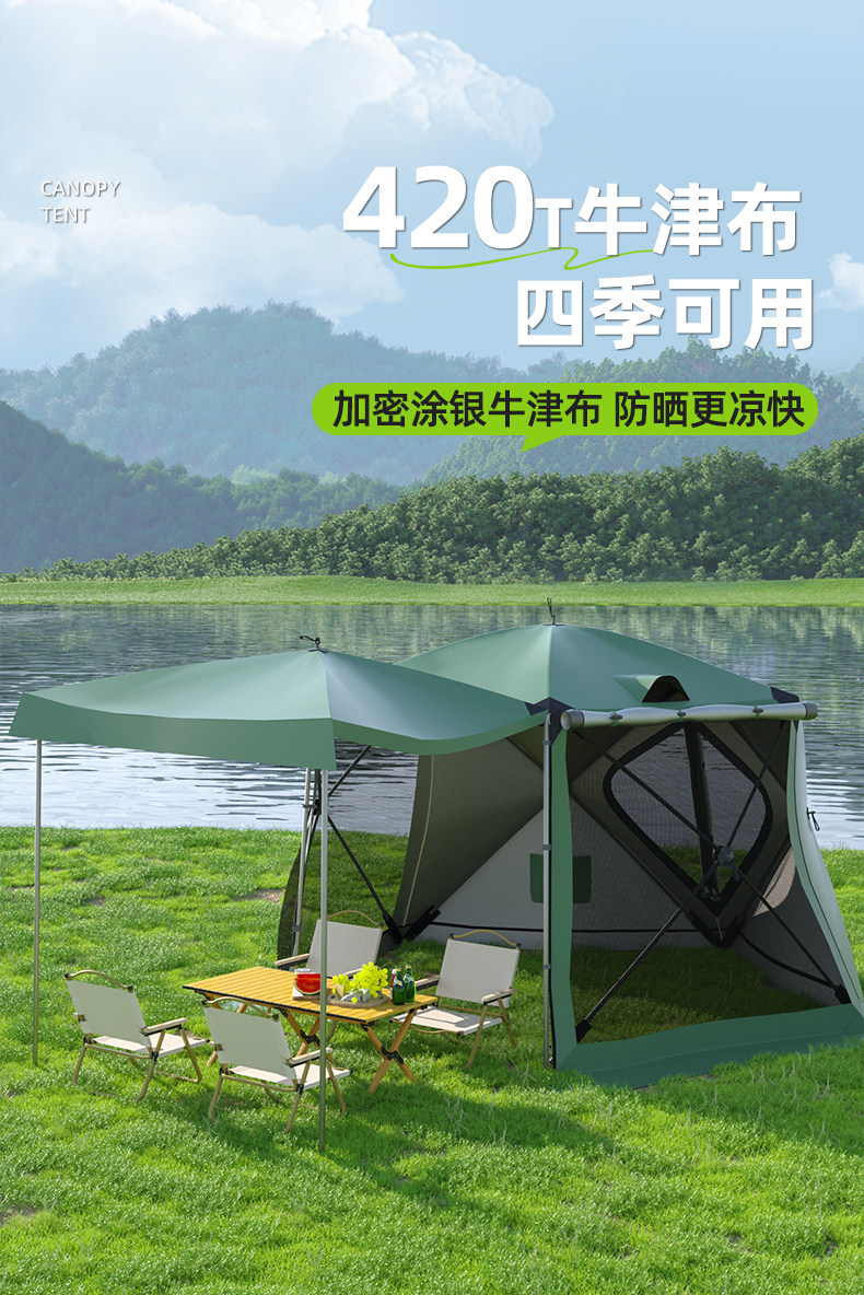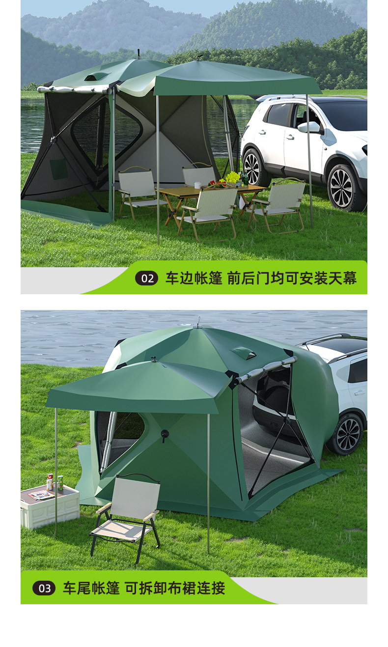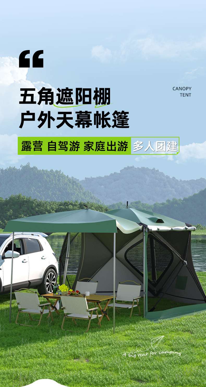 天幕帳篷戶外速開自動露營汽車車邊車尾遮陽野炊五角防曬可攜式