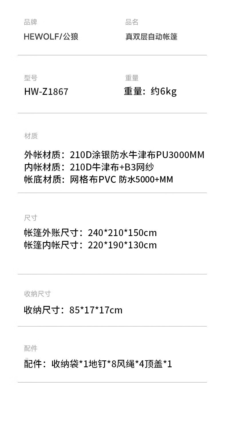 hewolf公狼帳篷戶外露營折疊可攜式免搭速開野營過夜裝備防雨帳篷