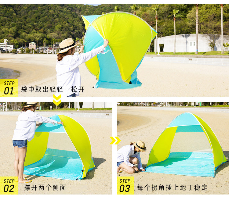 戶外速開防曬帳篷一鍵開合沙灘輕便免搭露營春遊兒童全自動遮陽棚