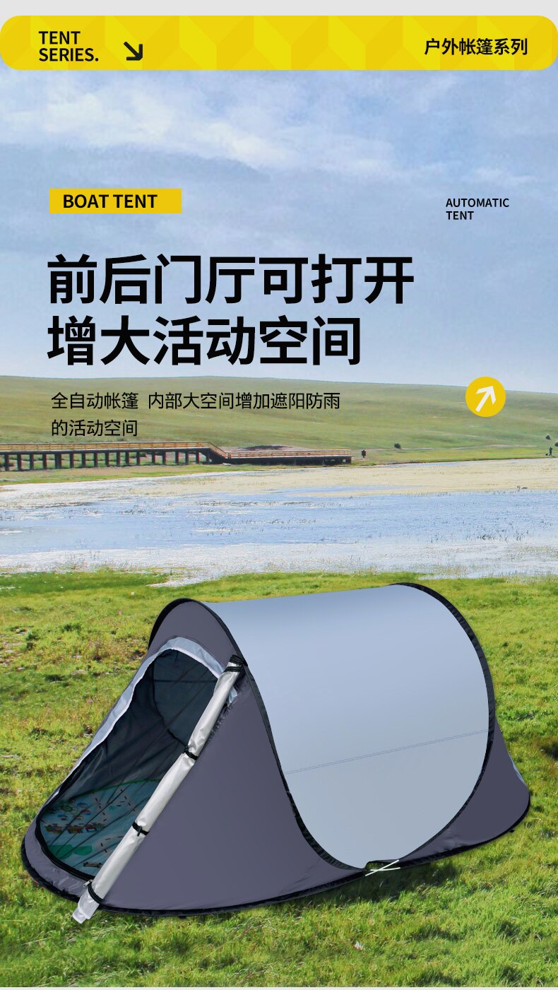 戶外露營全自動野外速開室內船型帳篷防風防曬塗層加厚野營手拋帳